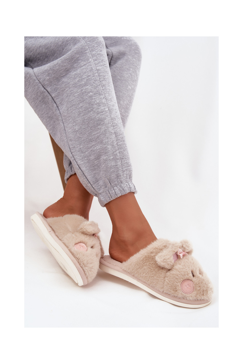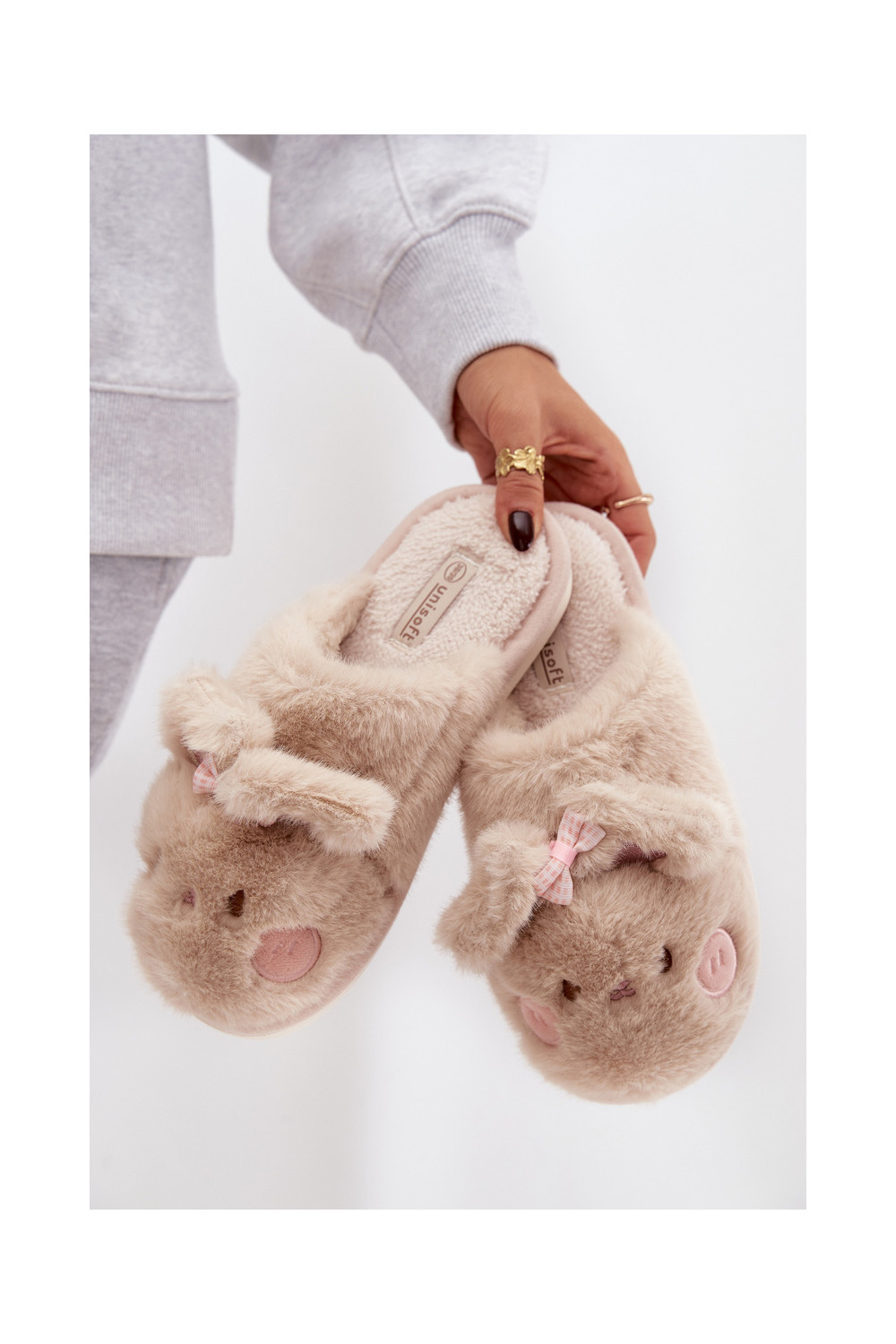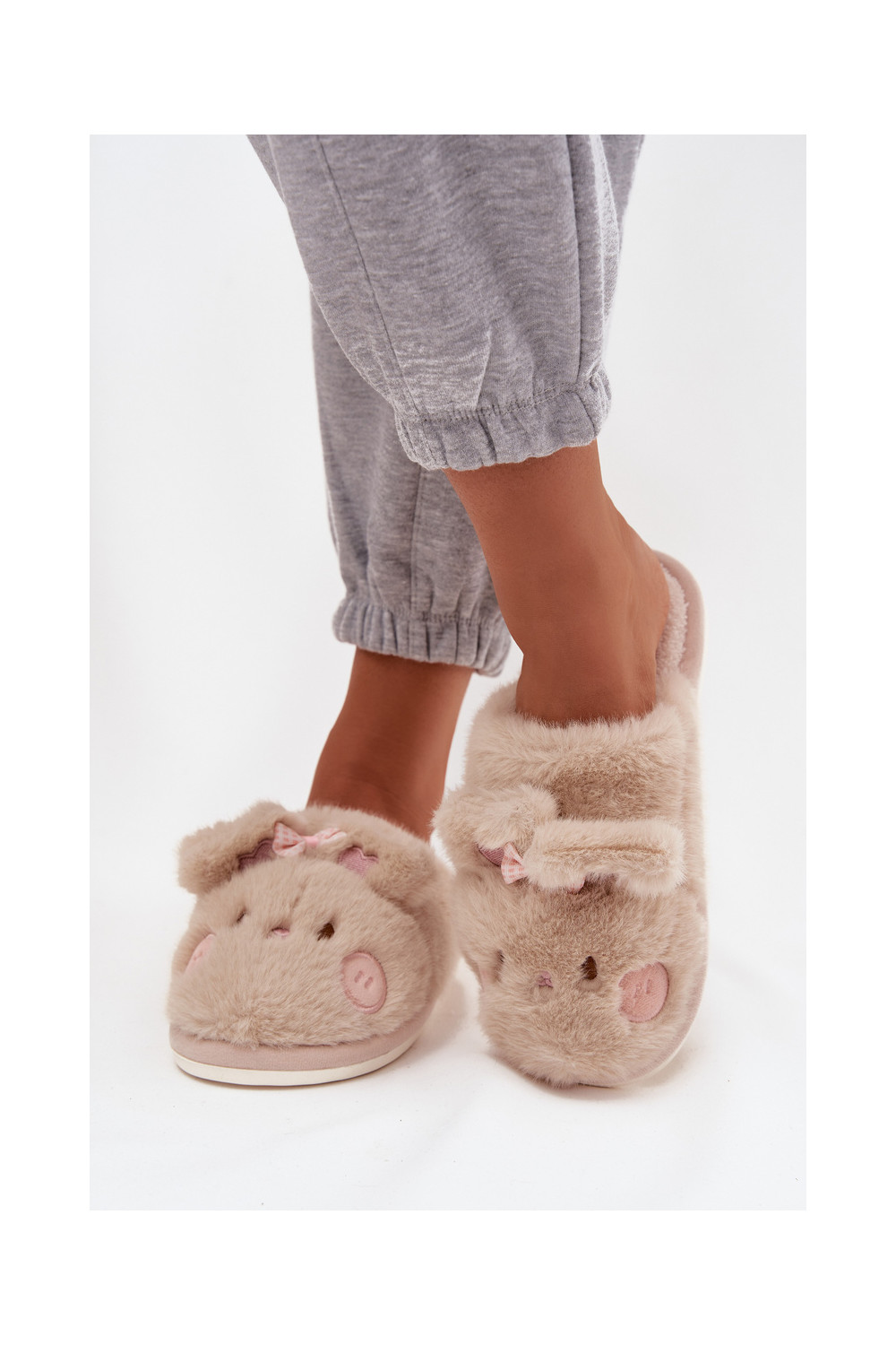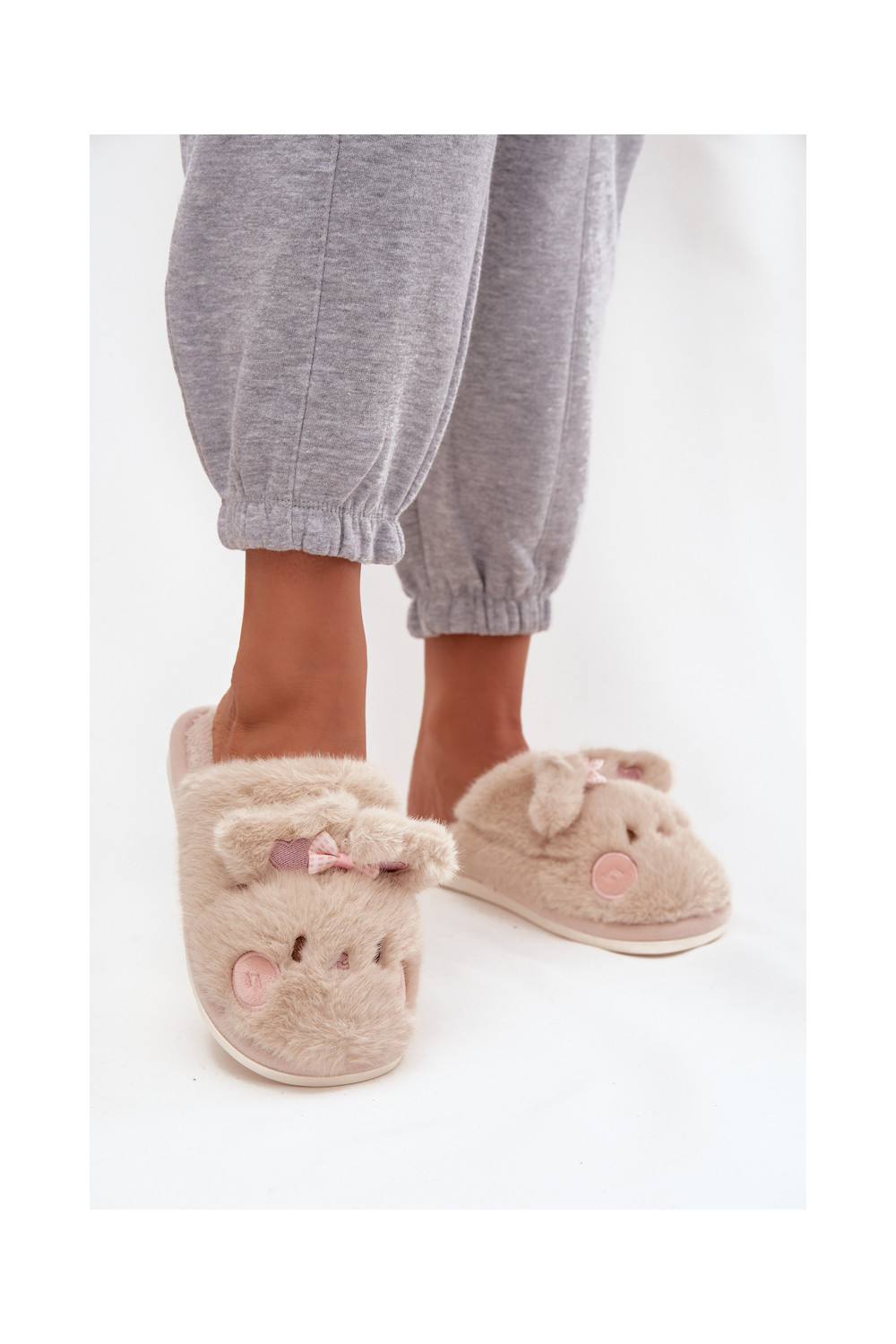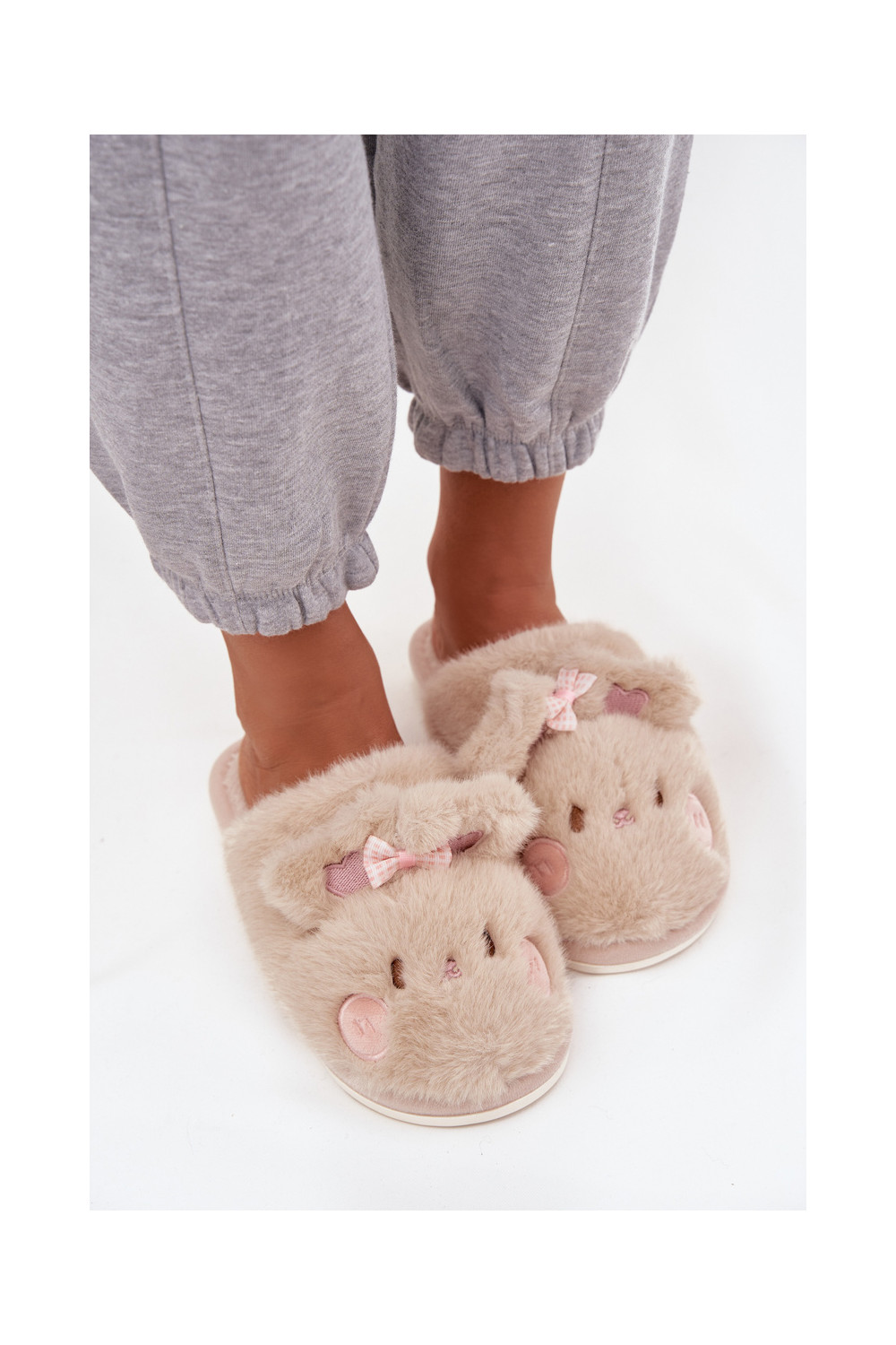 Šlepetės su ausytėm I Kokardką smėlio spalvos Corayne