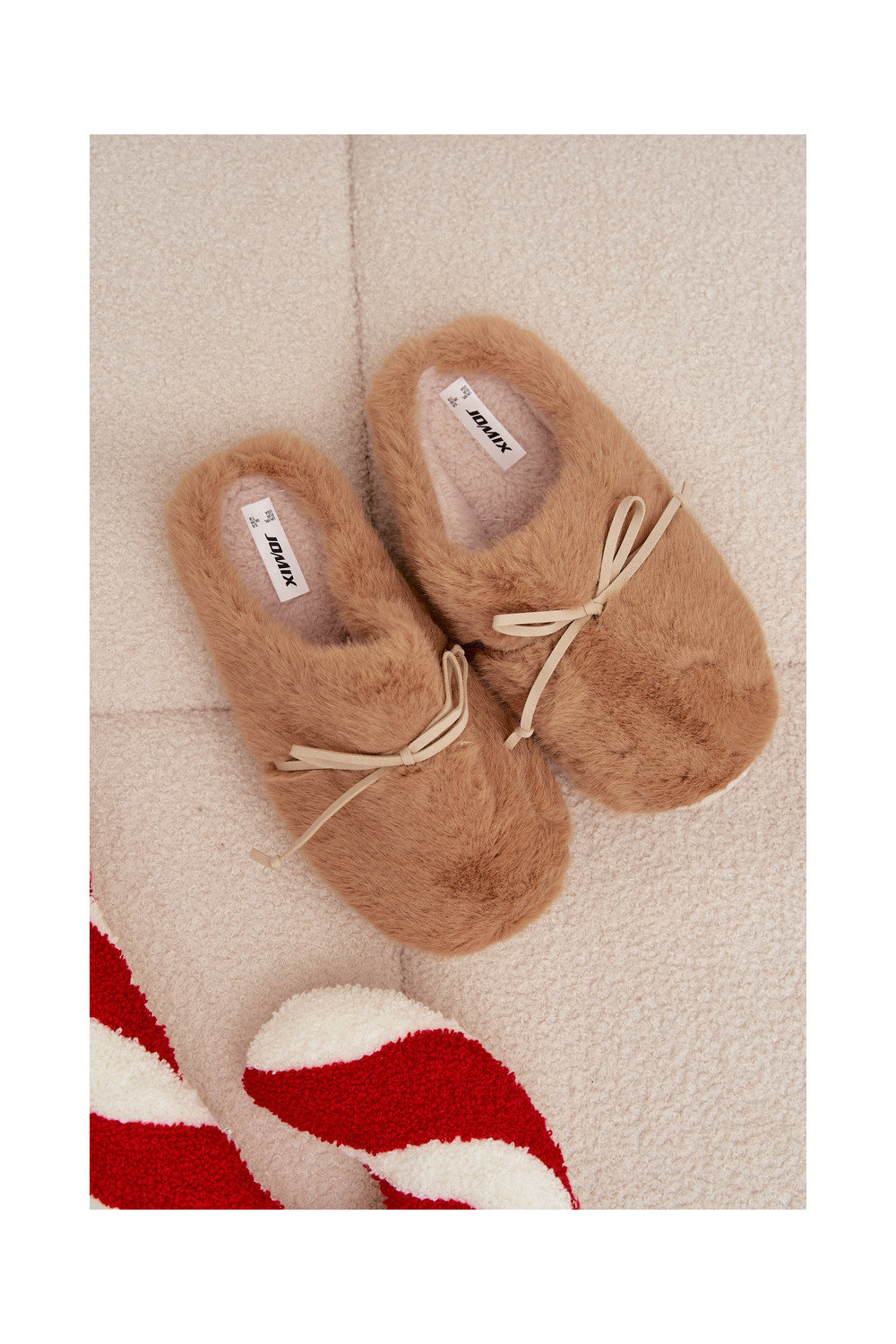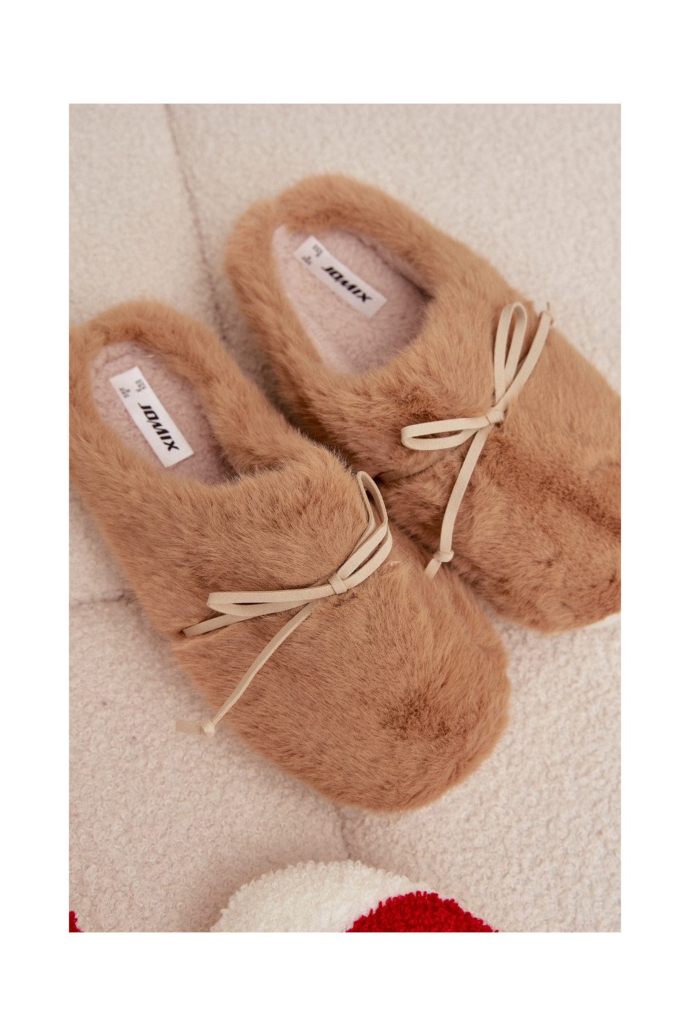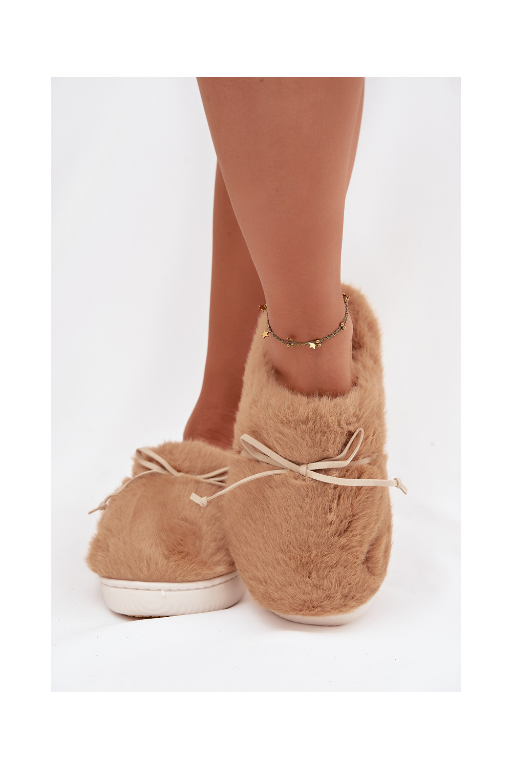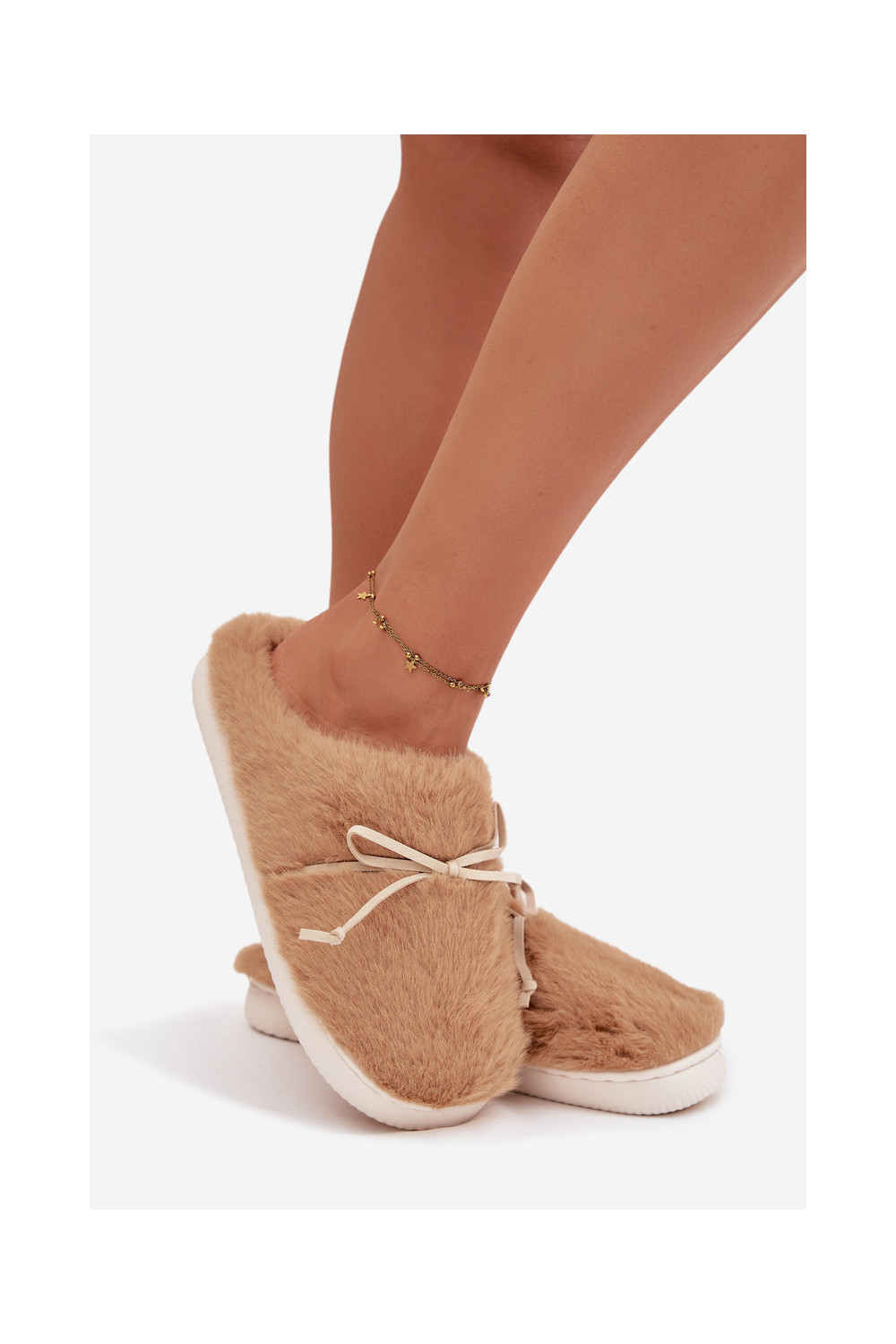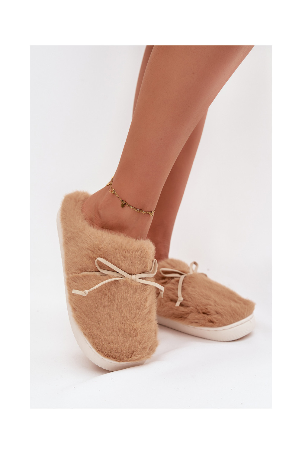 su kailiuku Šlepetės su kaspinais rudos spalvos Minella