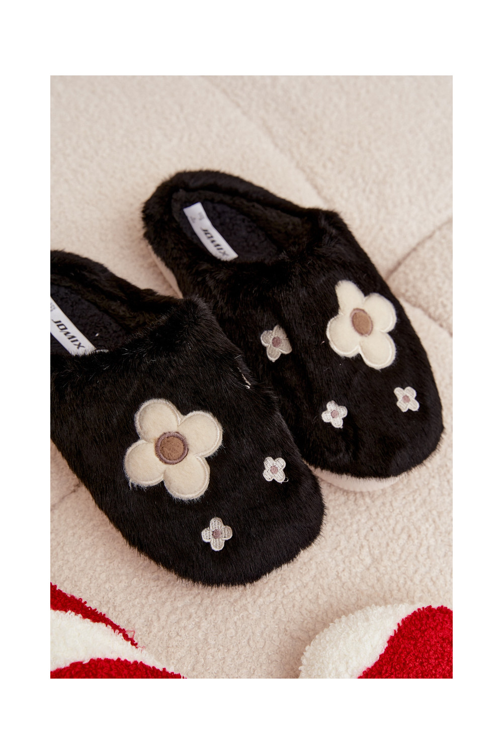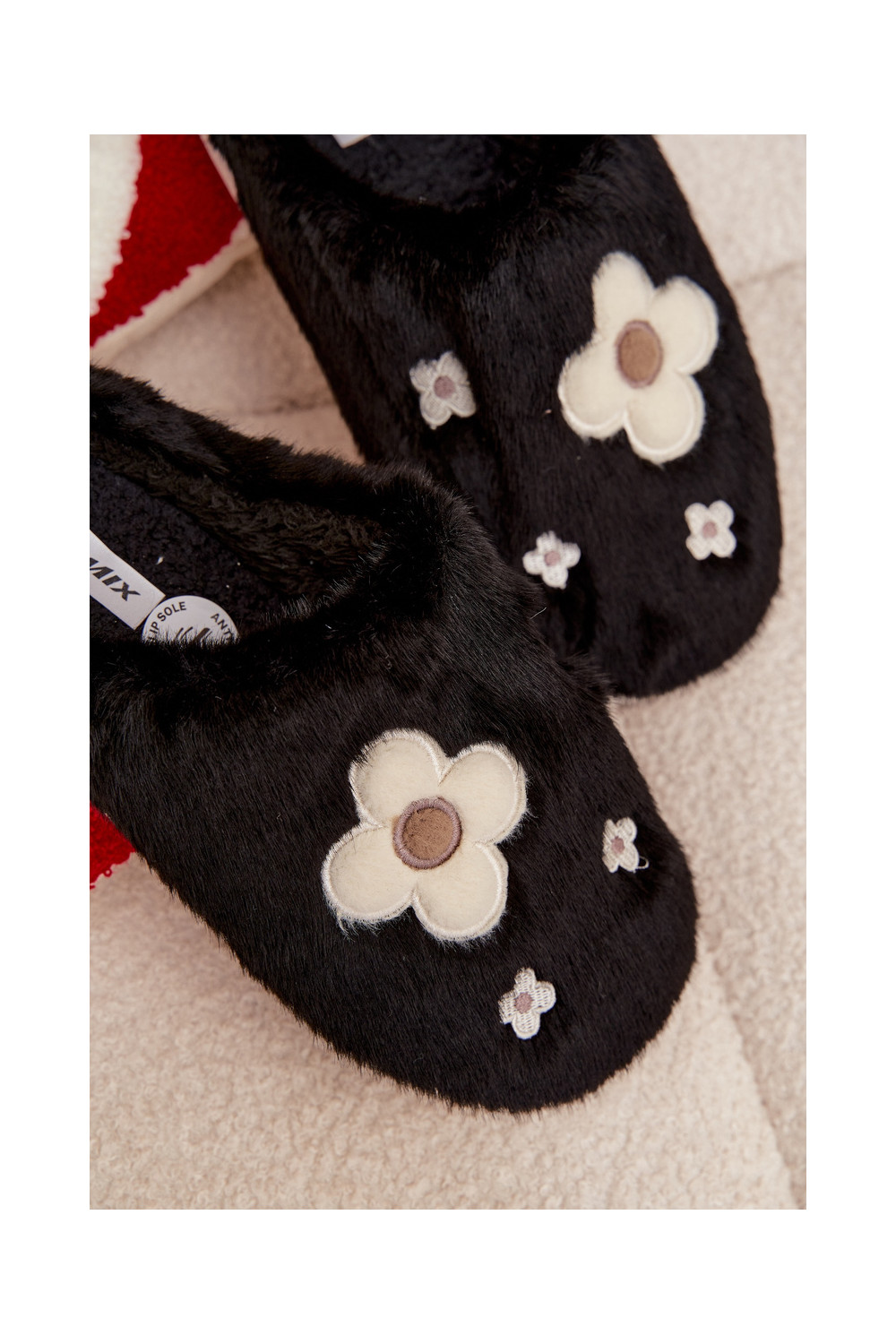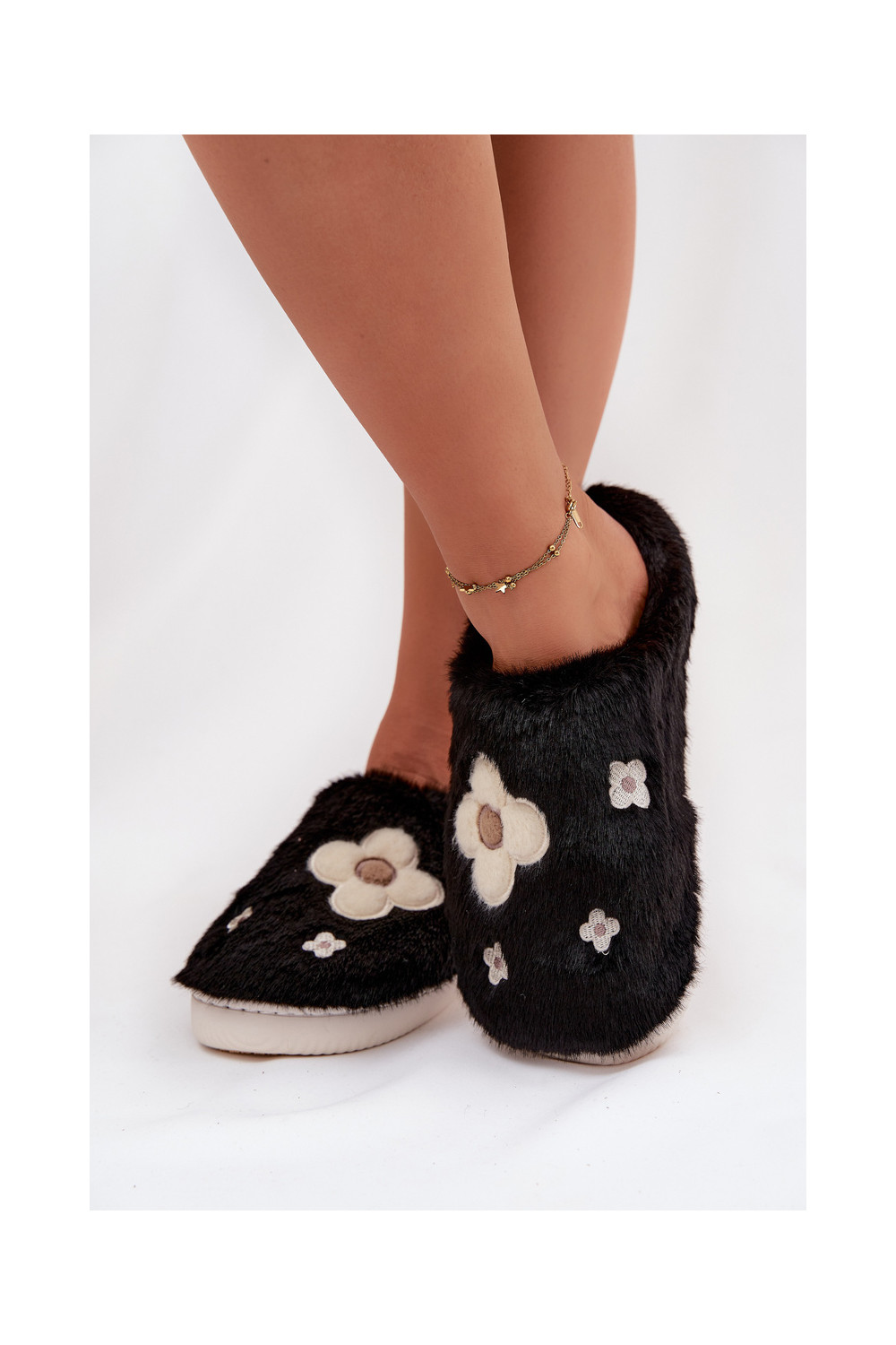 su kailiuku Šlepetėssusu gėlių motyvaisuszkami juodos spalvos Selinne