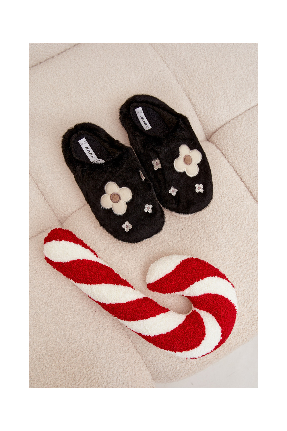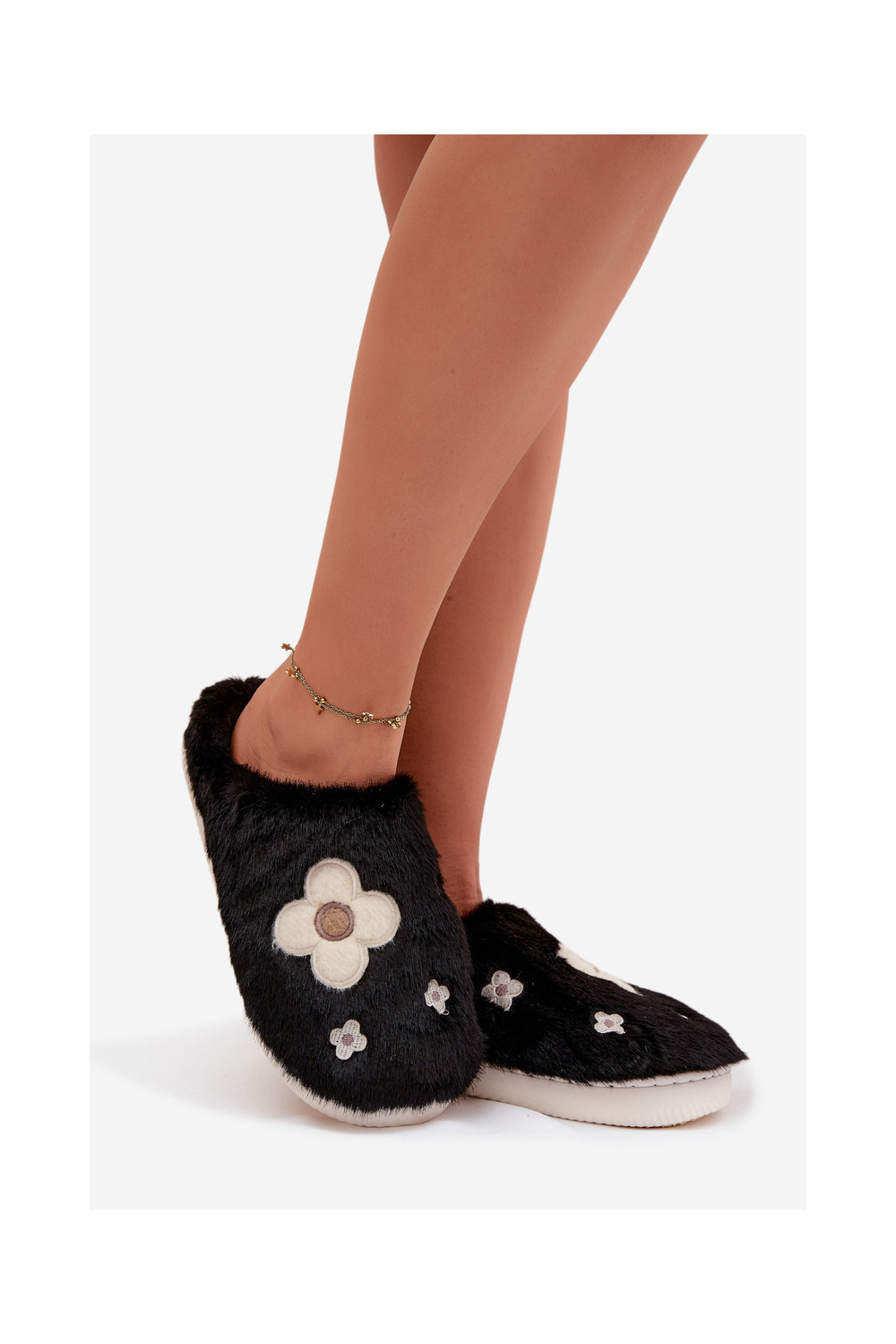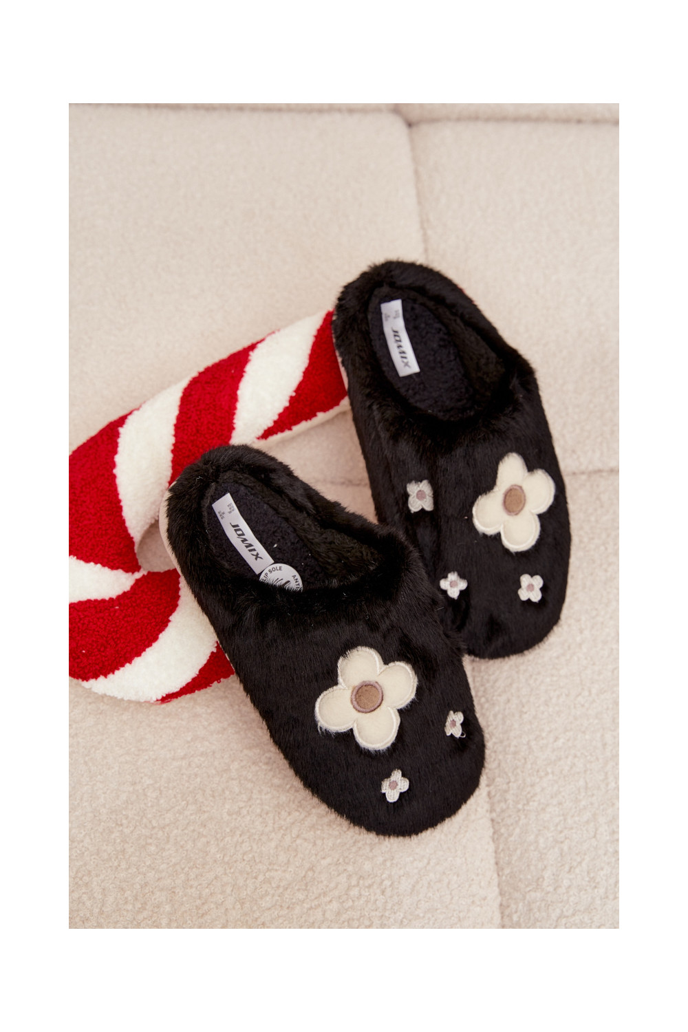 su kailiuku Šlepetėssusu gėlių motyvaisuszkami juodos spalvos Selinne