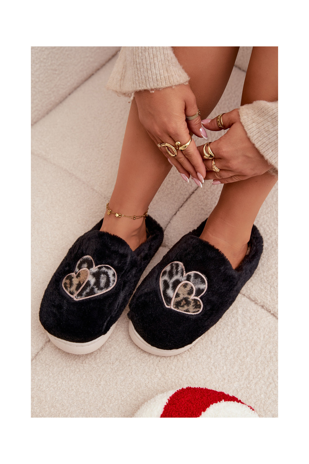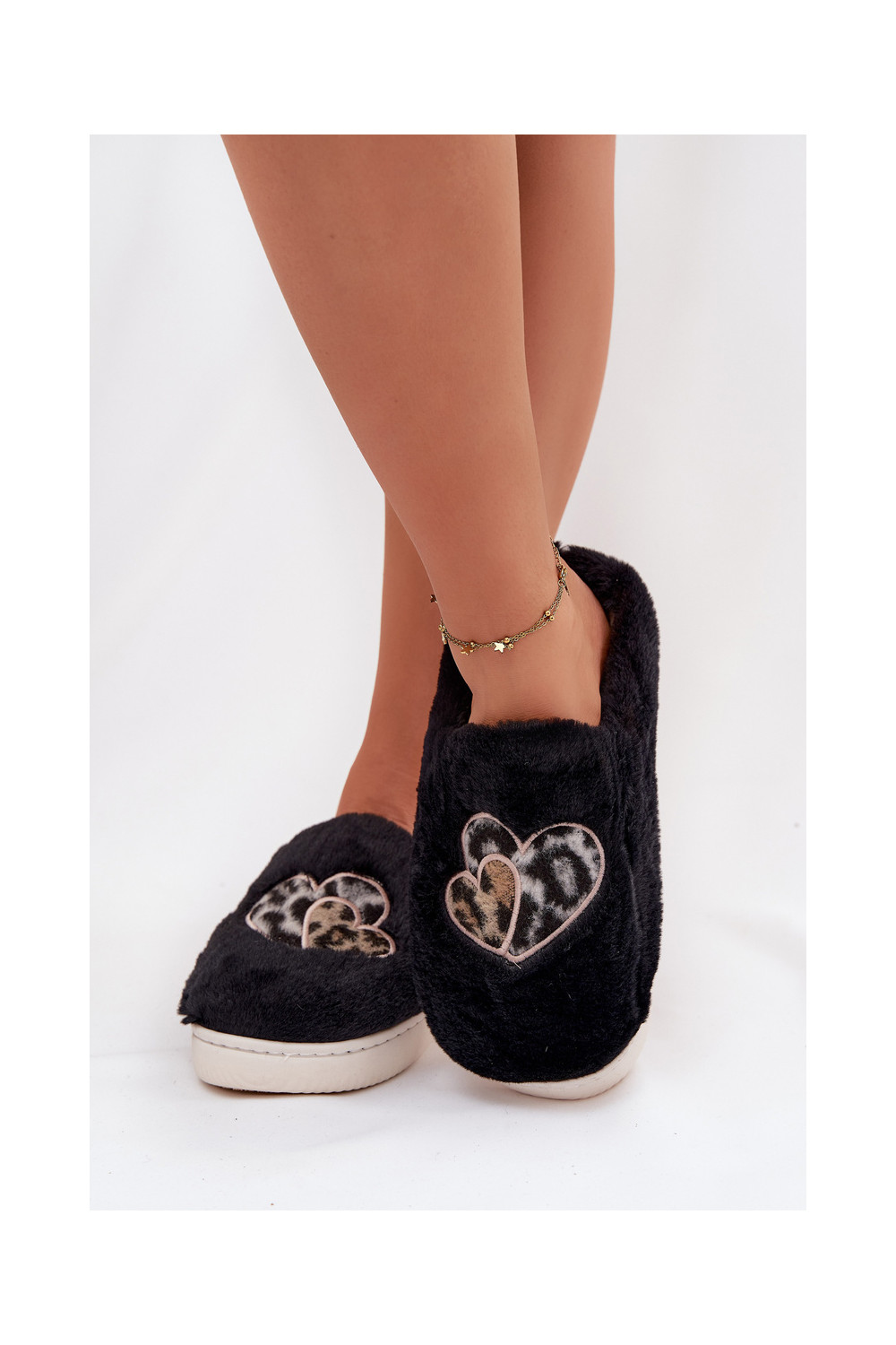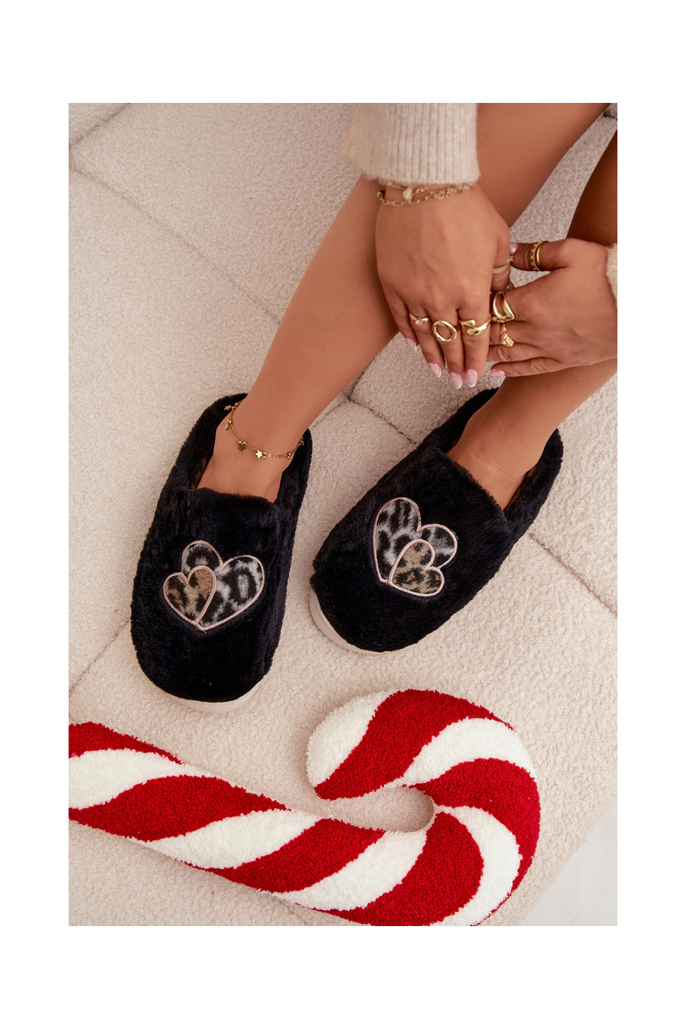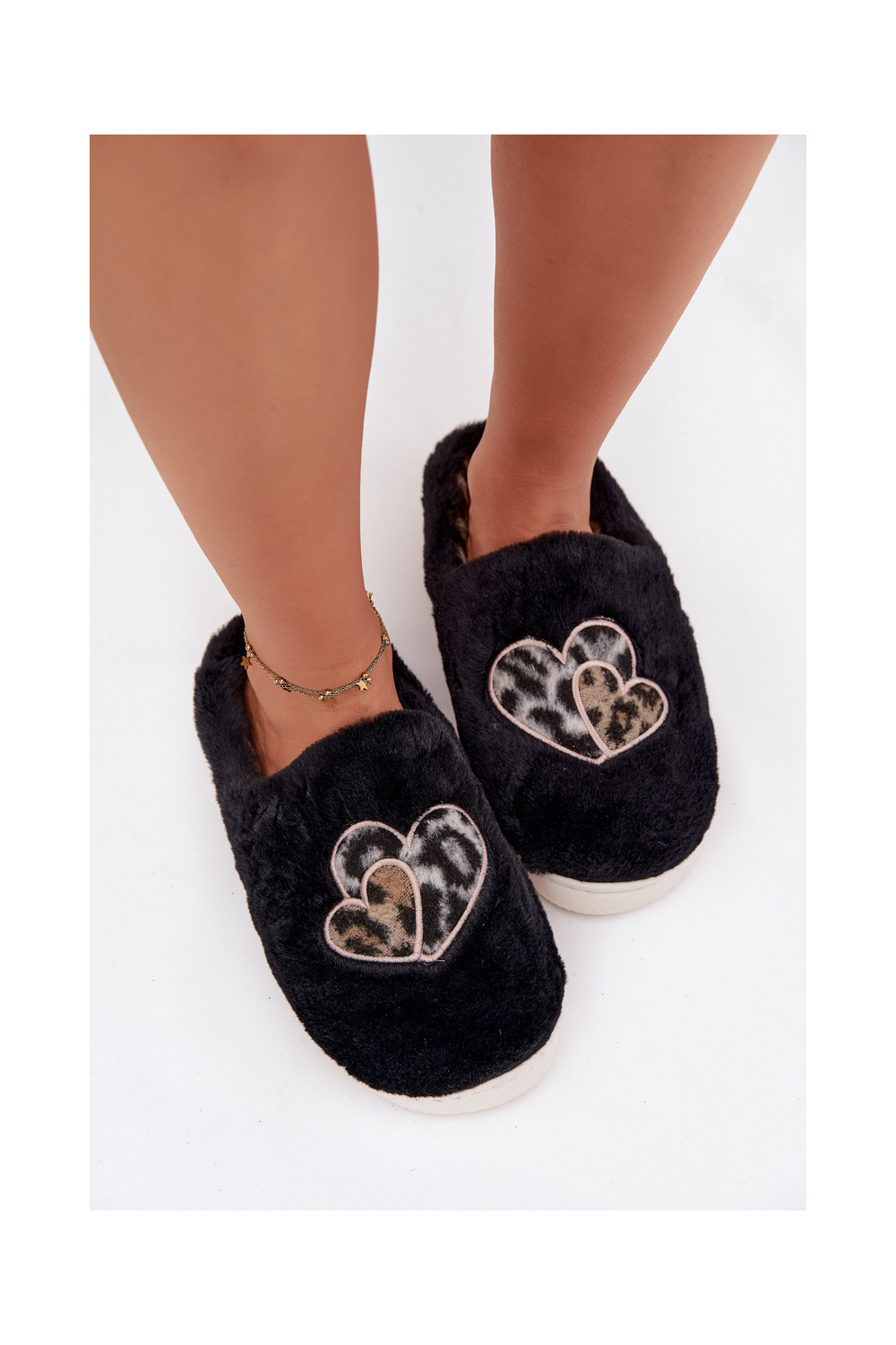 su kailiuku Šlepetės Su Širdelėmis juodos spalvos Amandra