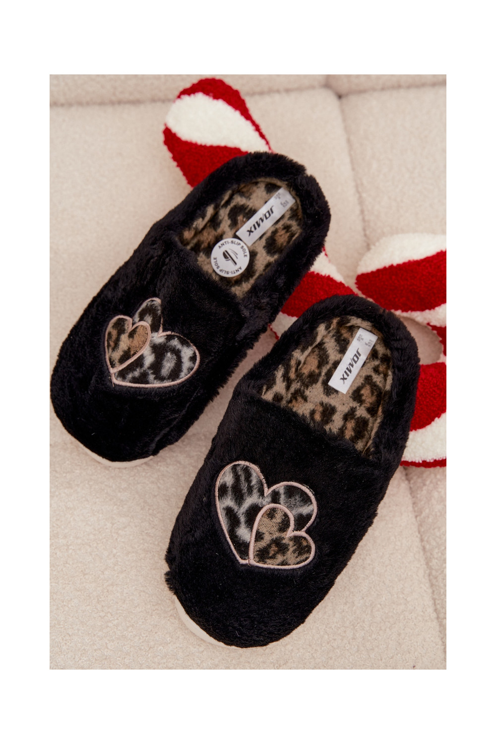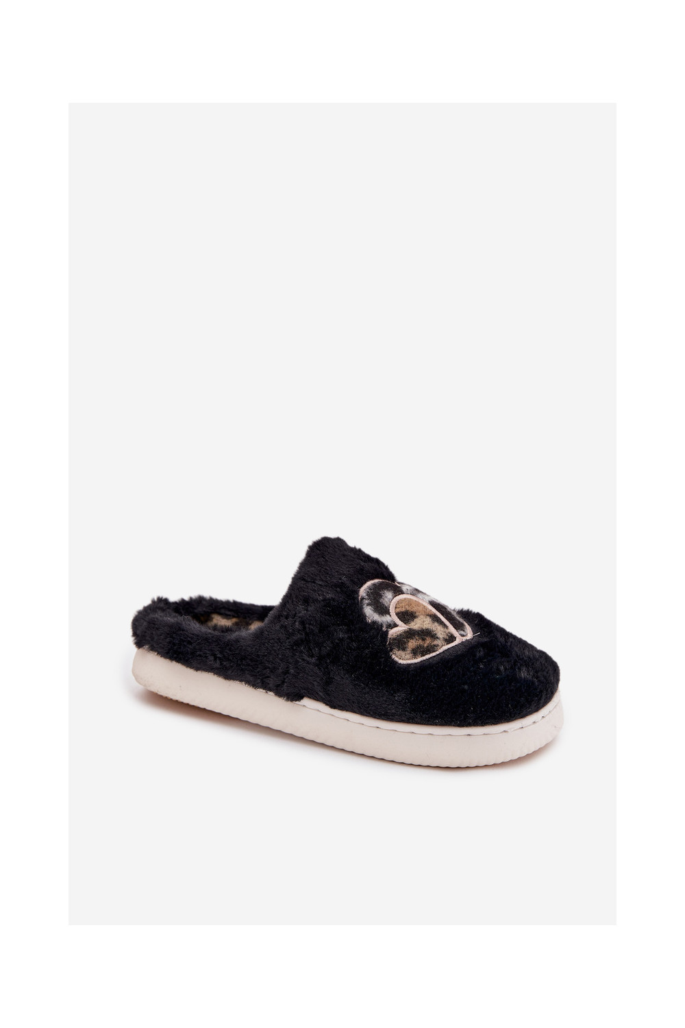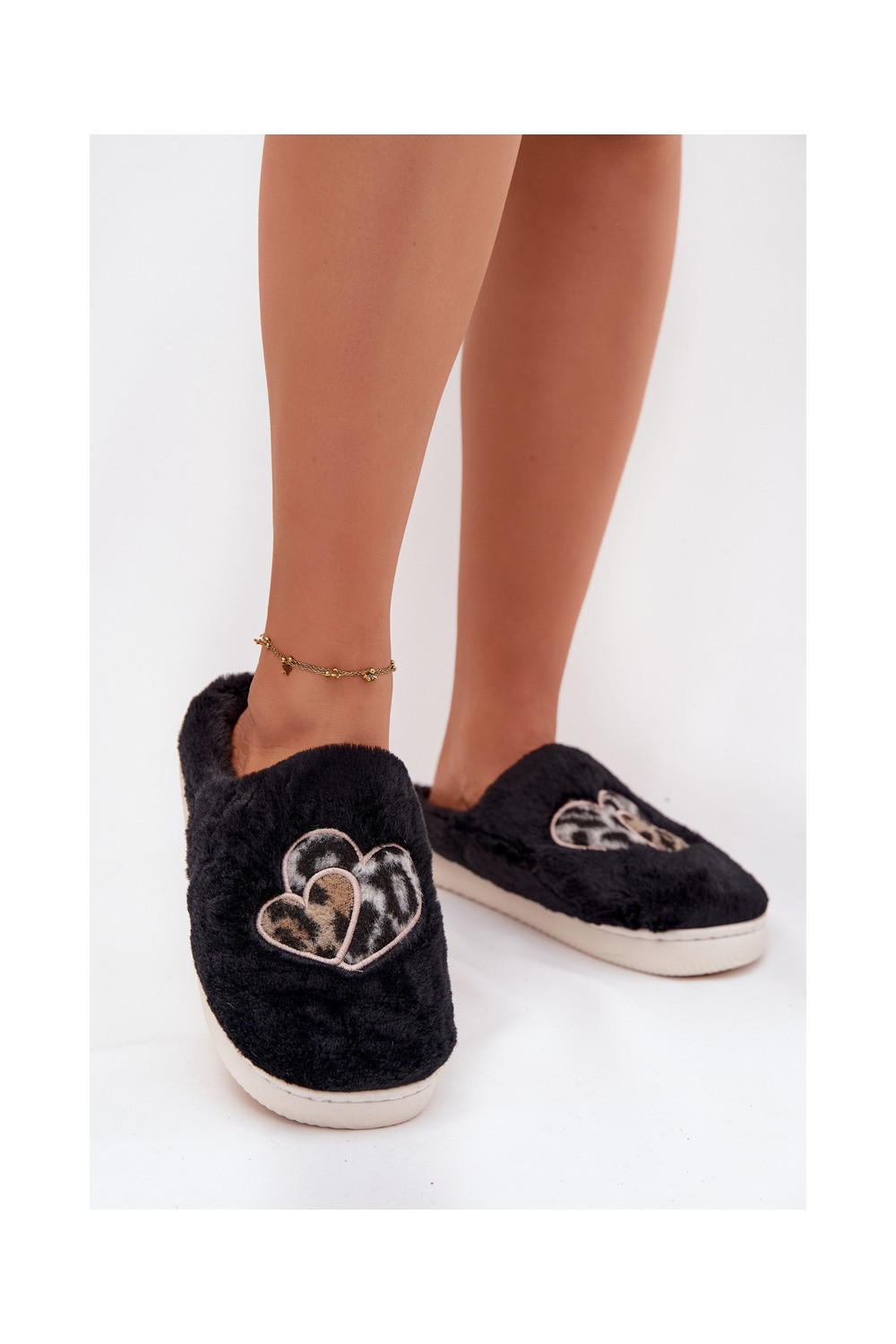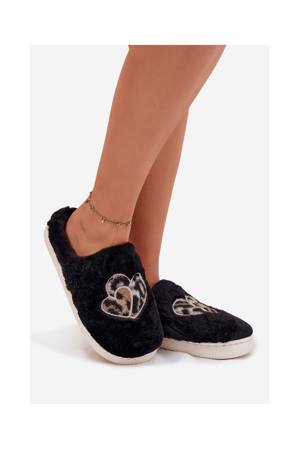 su kailiuku Šlepetės Su Širdelėmis juodos spalvos Amandra