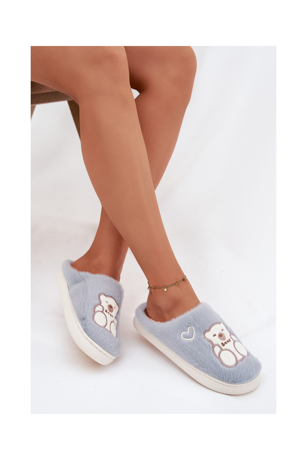 su kailiuku Šlepetės Su Meškiuku mėlynos spalvos Noralie