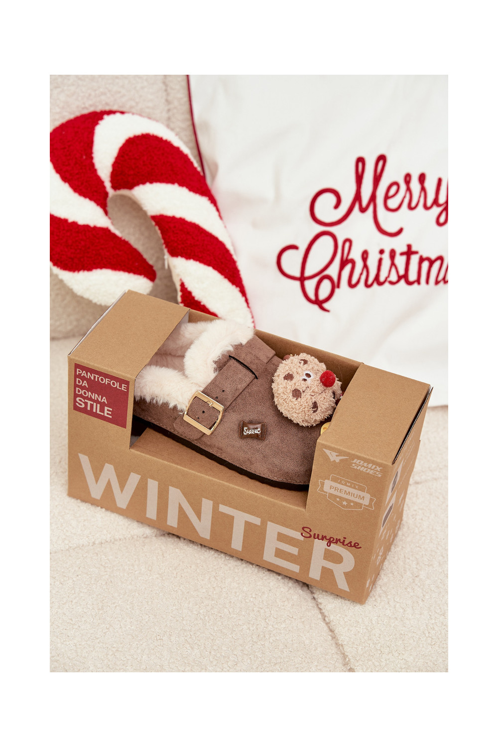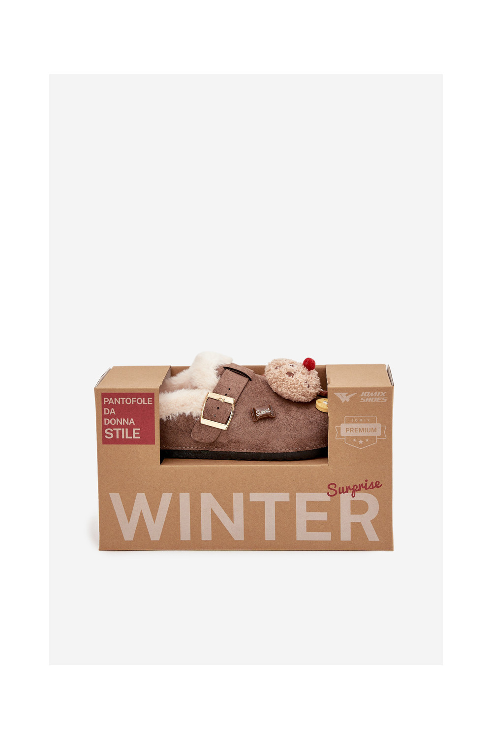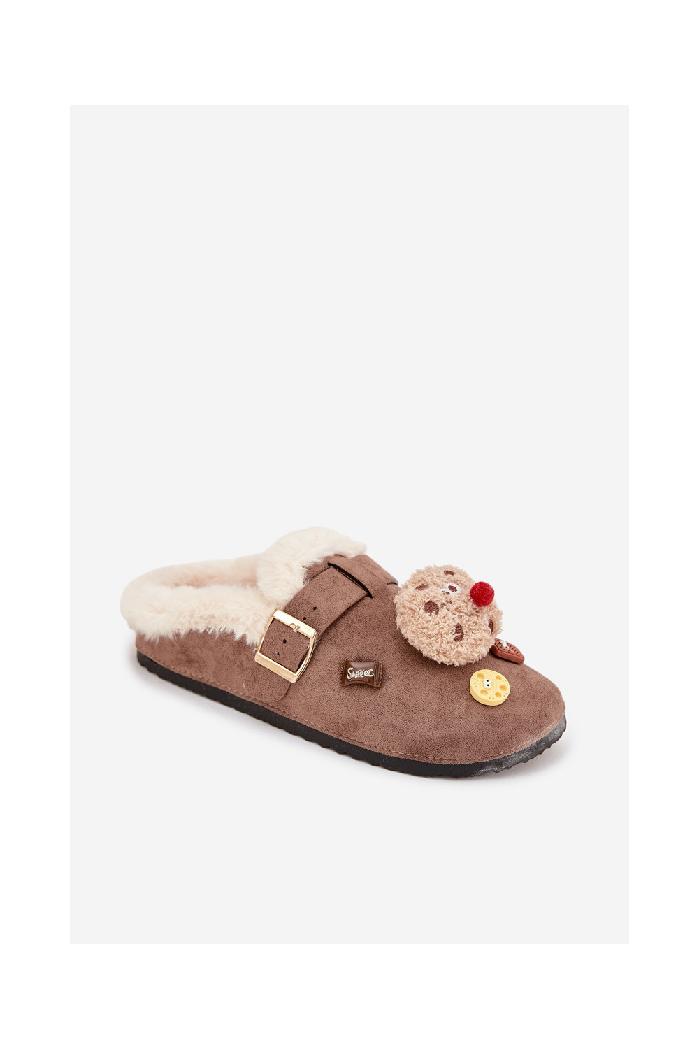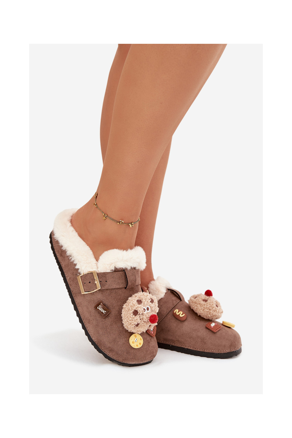 Moteriškos šlepetės su gražiomis detalėmis ir sagtimis, pašiltintos kailiuku viduje, rudos spalvos „Thalora"