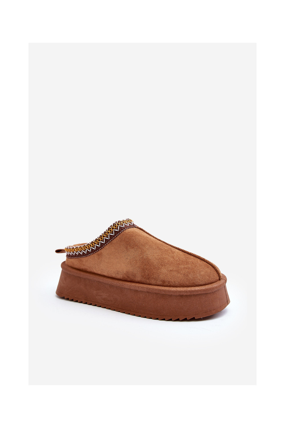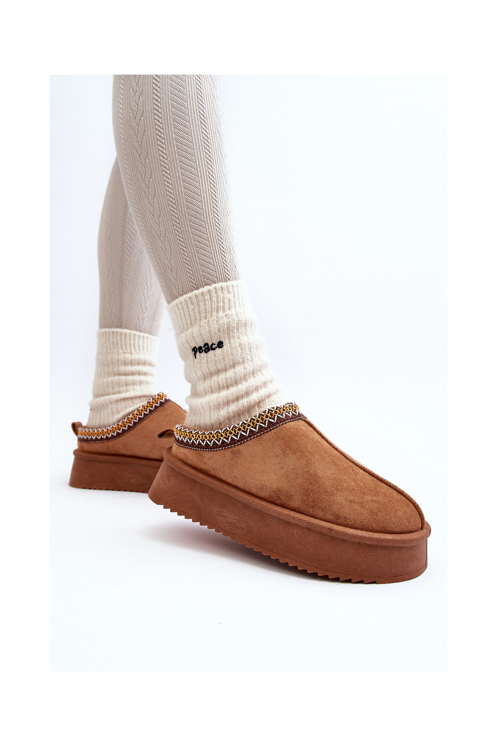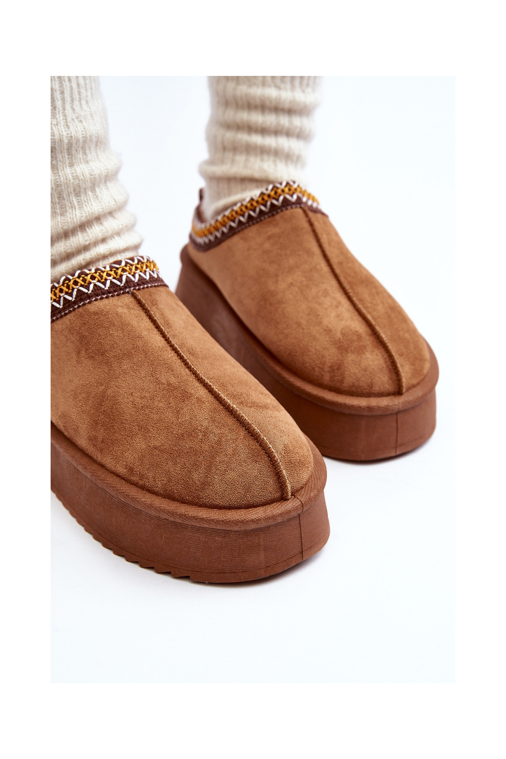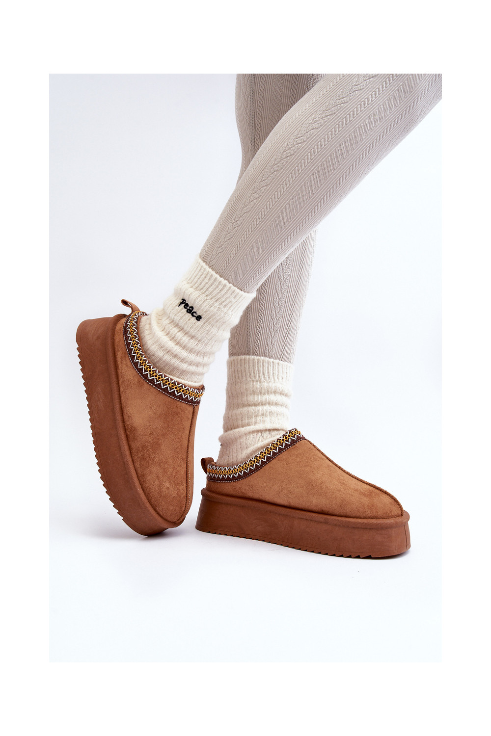 Šlepetės Ant storo padosuiš eko zomšosu rudos spalvos Sylva