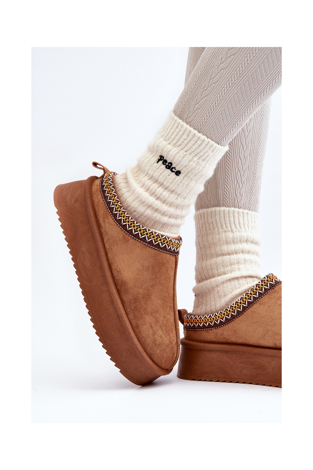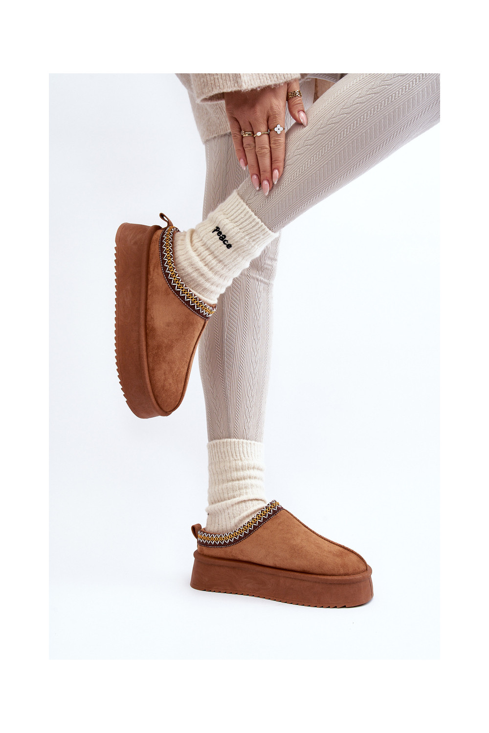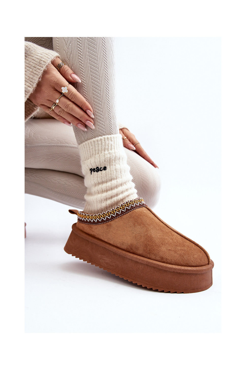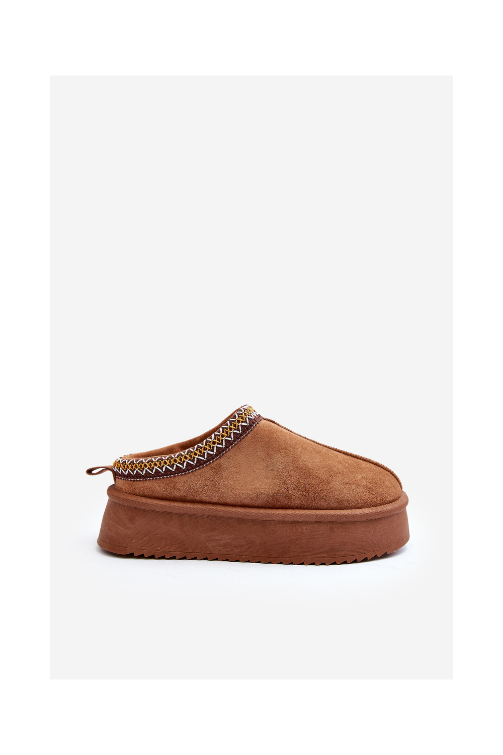 Šlepetės Ant storo padosuiš eko zomšosu rudos spalvos Sylva