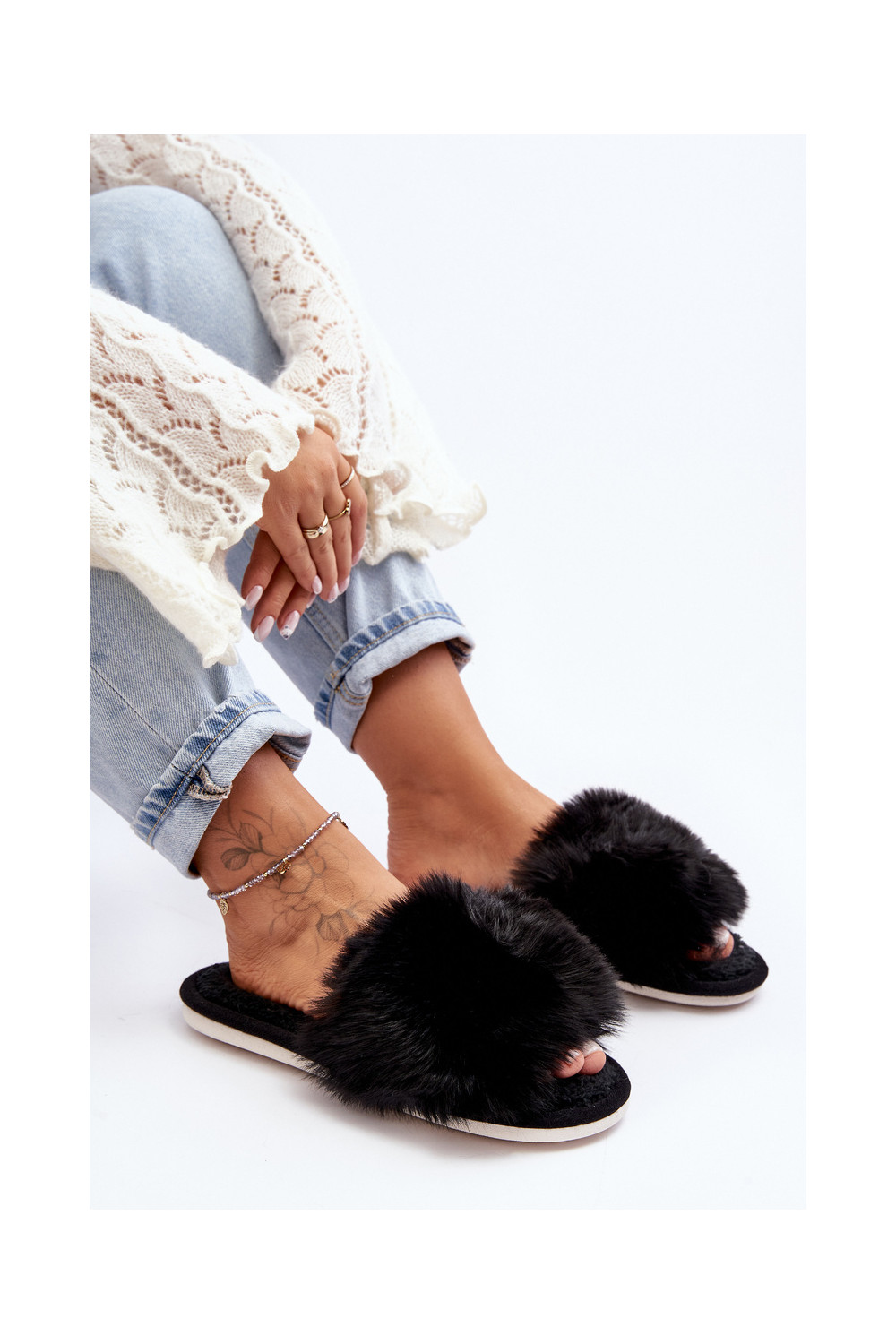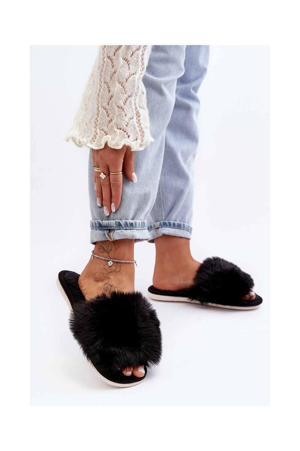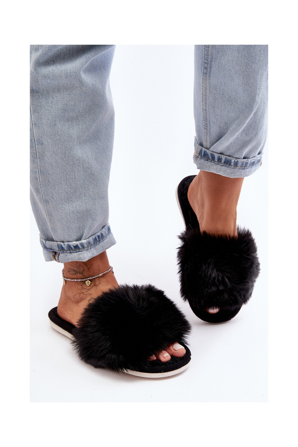 Šlepetės su kailiuku Juodos spalvos Vienitta