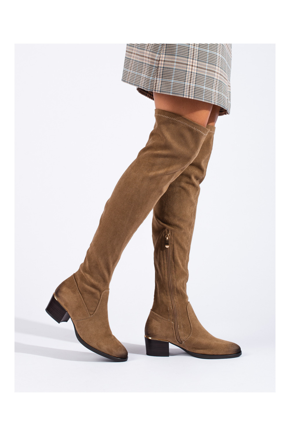 iš zomšos ilgaauliai batai Vinceza smėlio spalvos