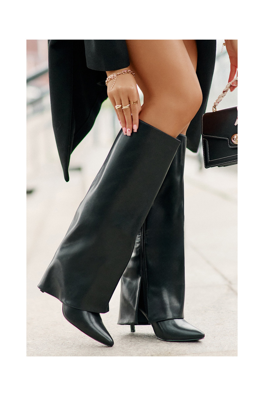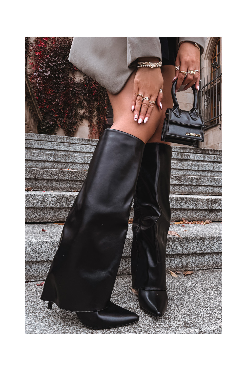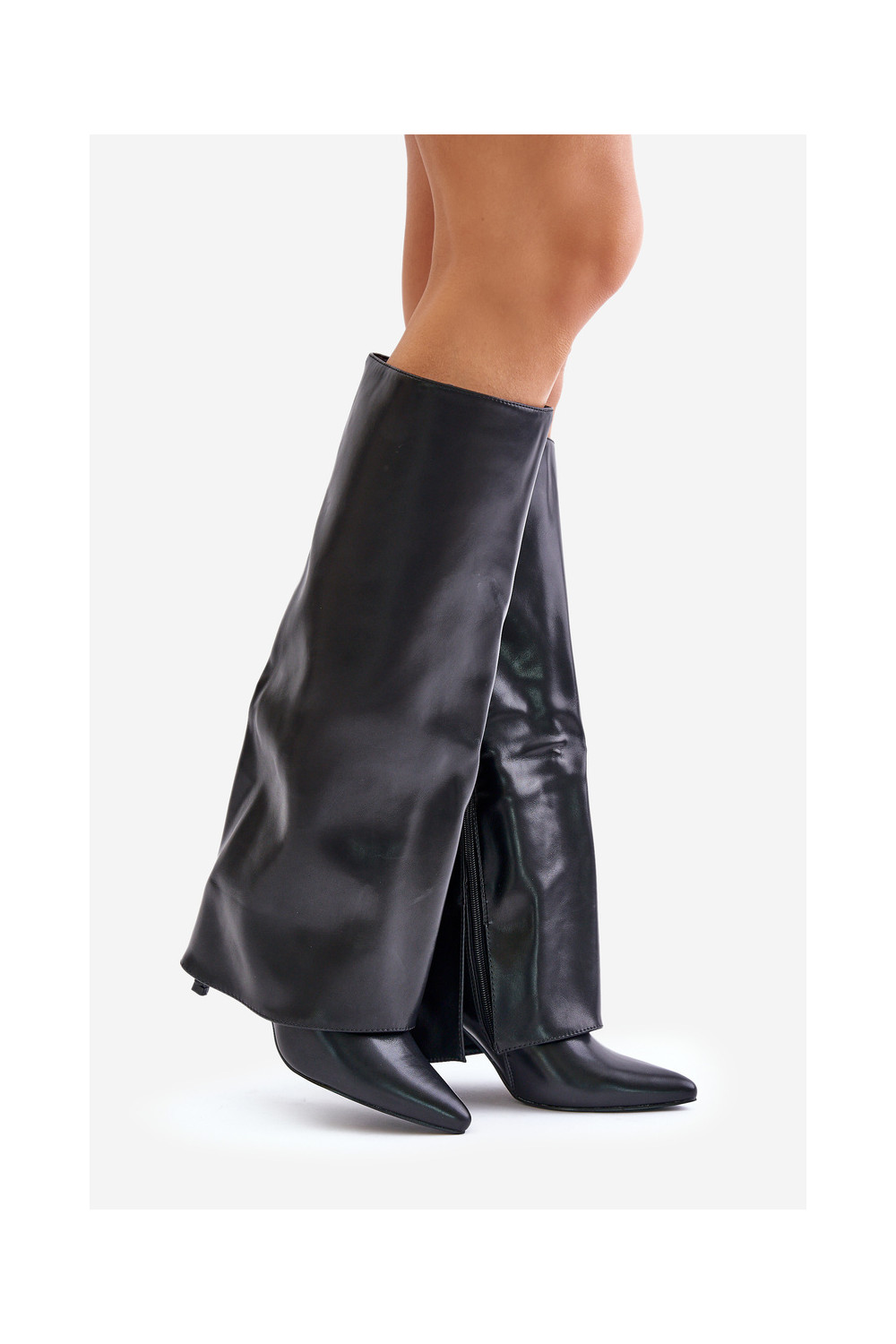 Šiltinti ilgaauliai batai su plonais kulniukais ir įkirpta aulo dalimi juodos spalvos Tamonia