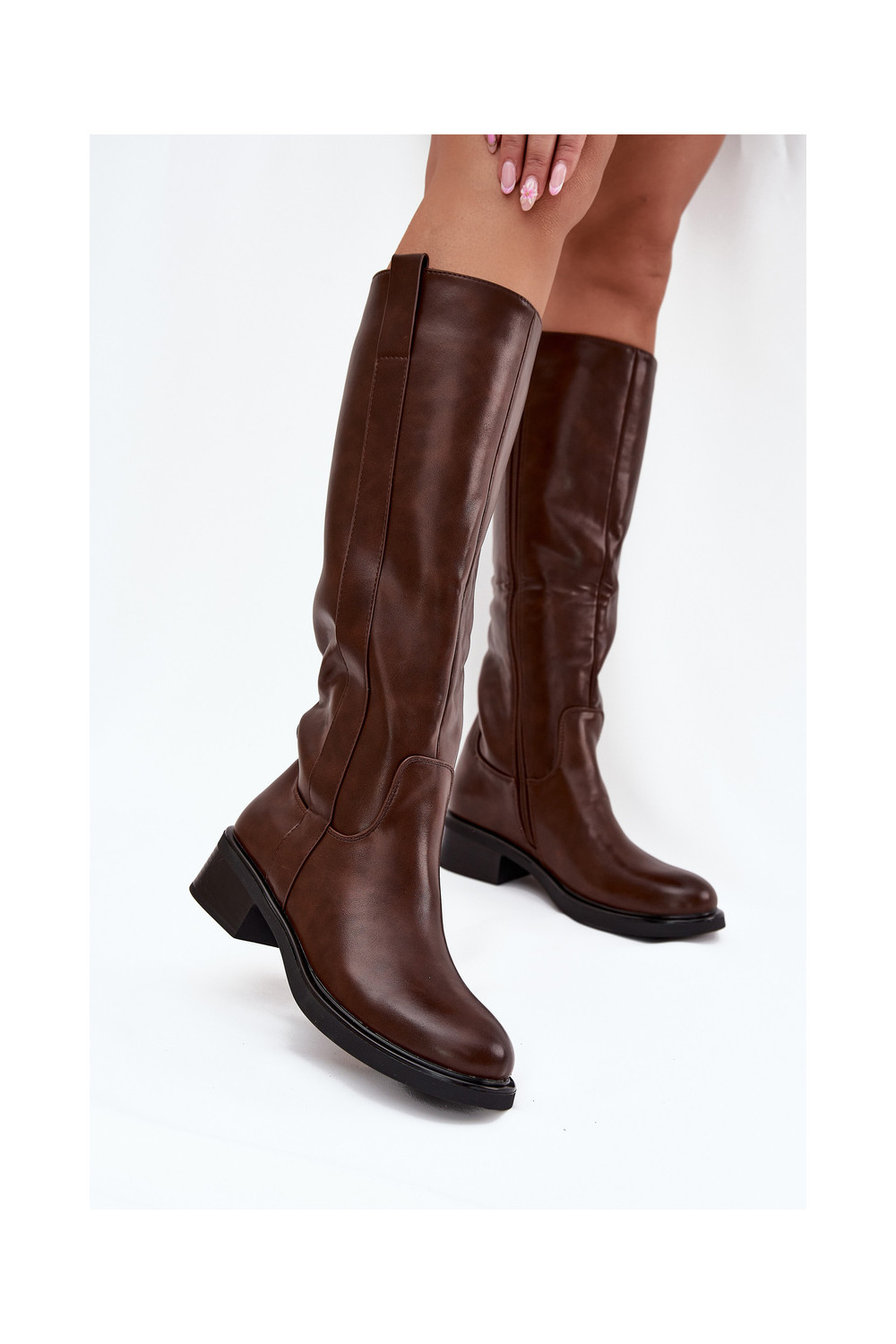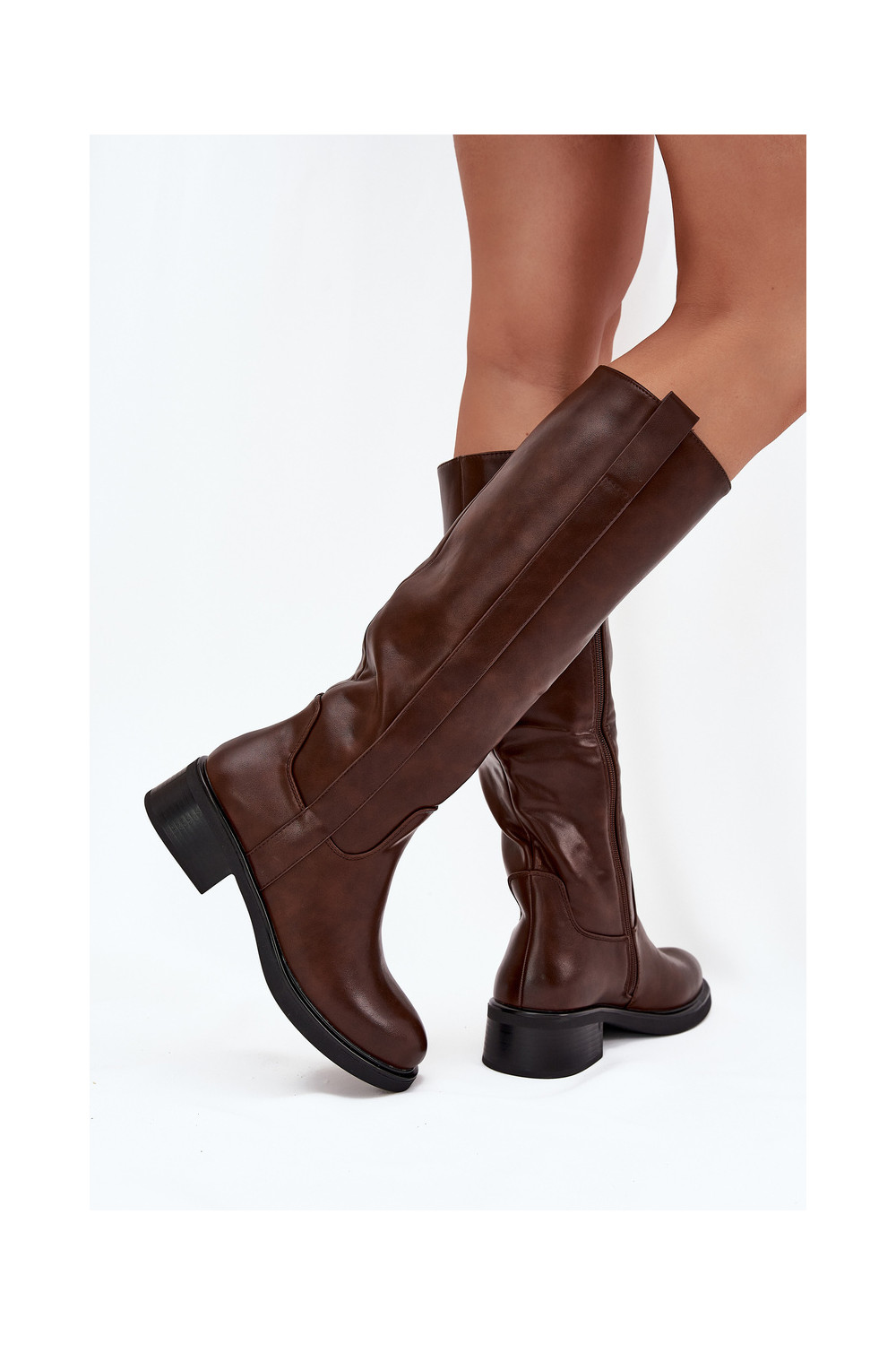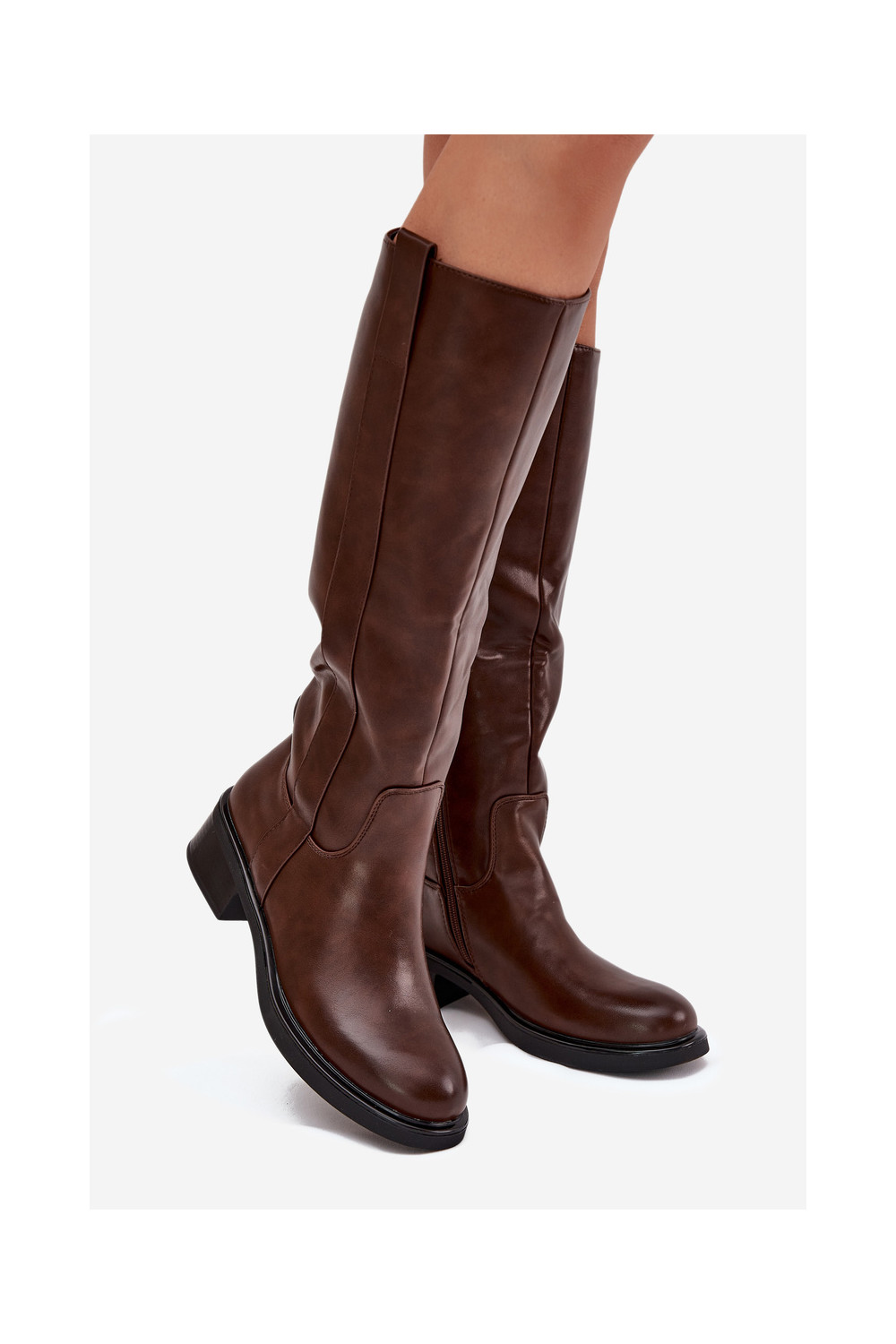 Moteriški ilgaauliai batai ant žemo kulno, pašiltinti, rudos spalvos Averna