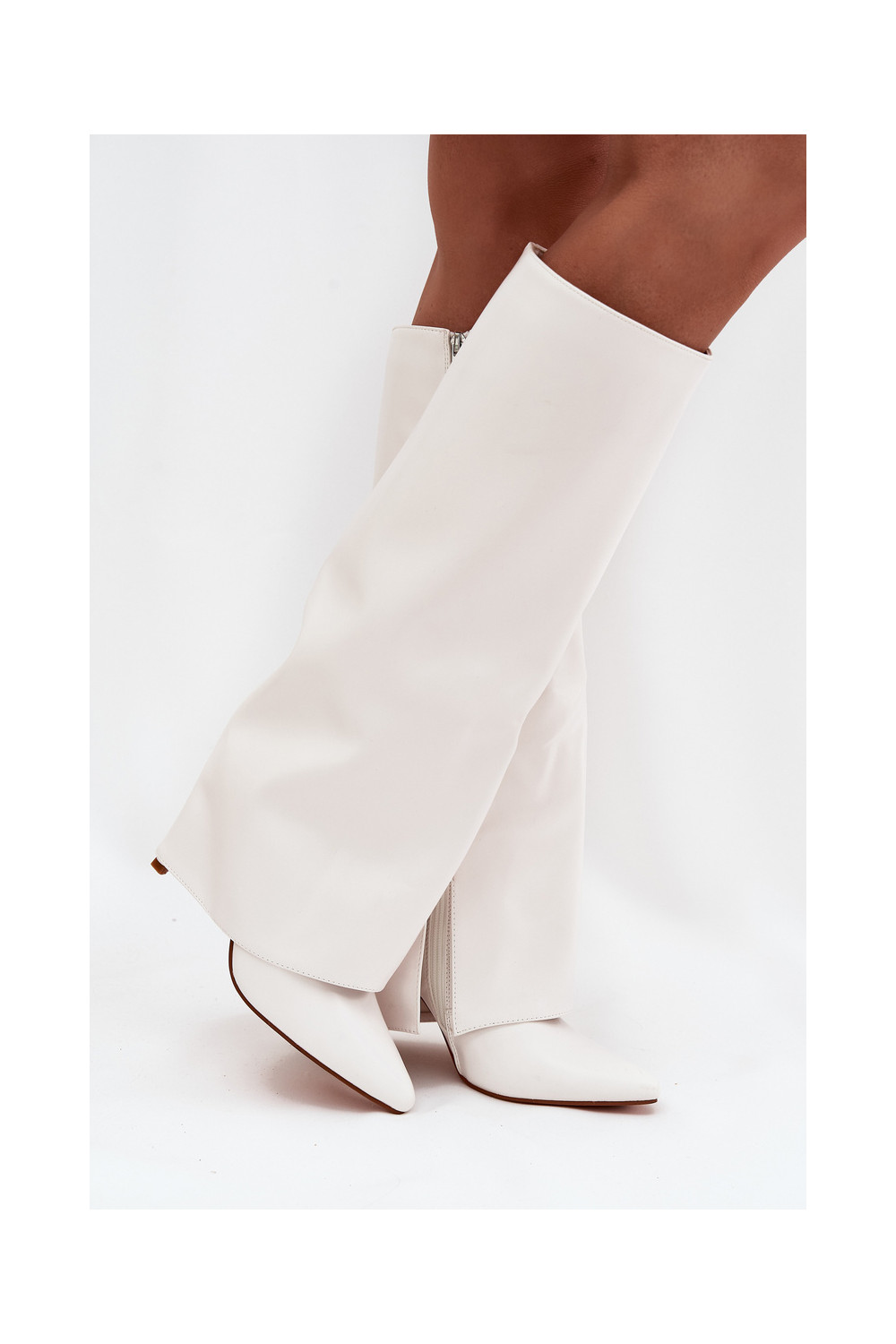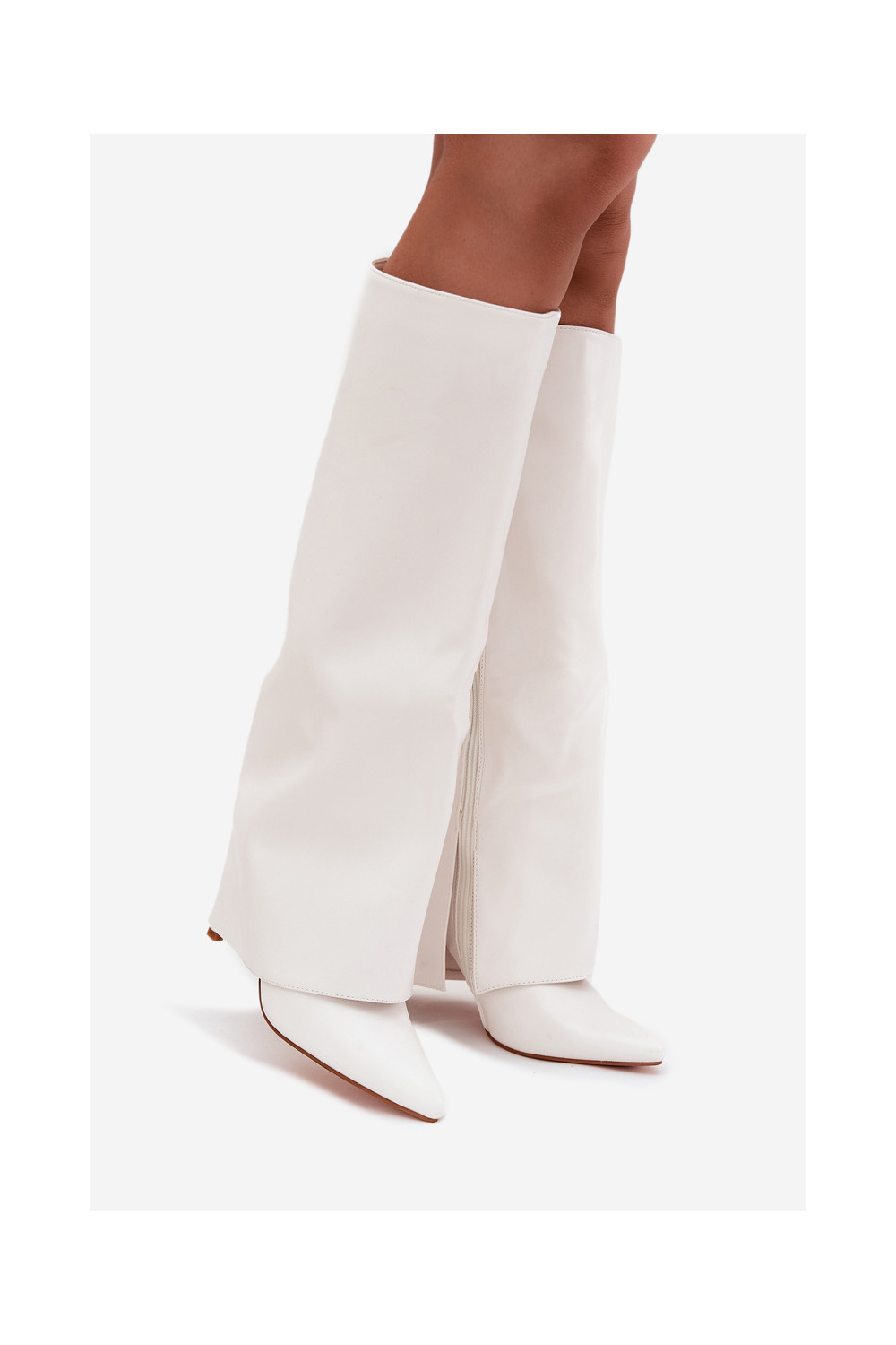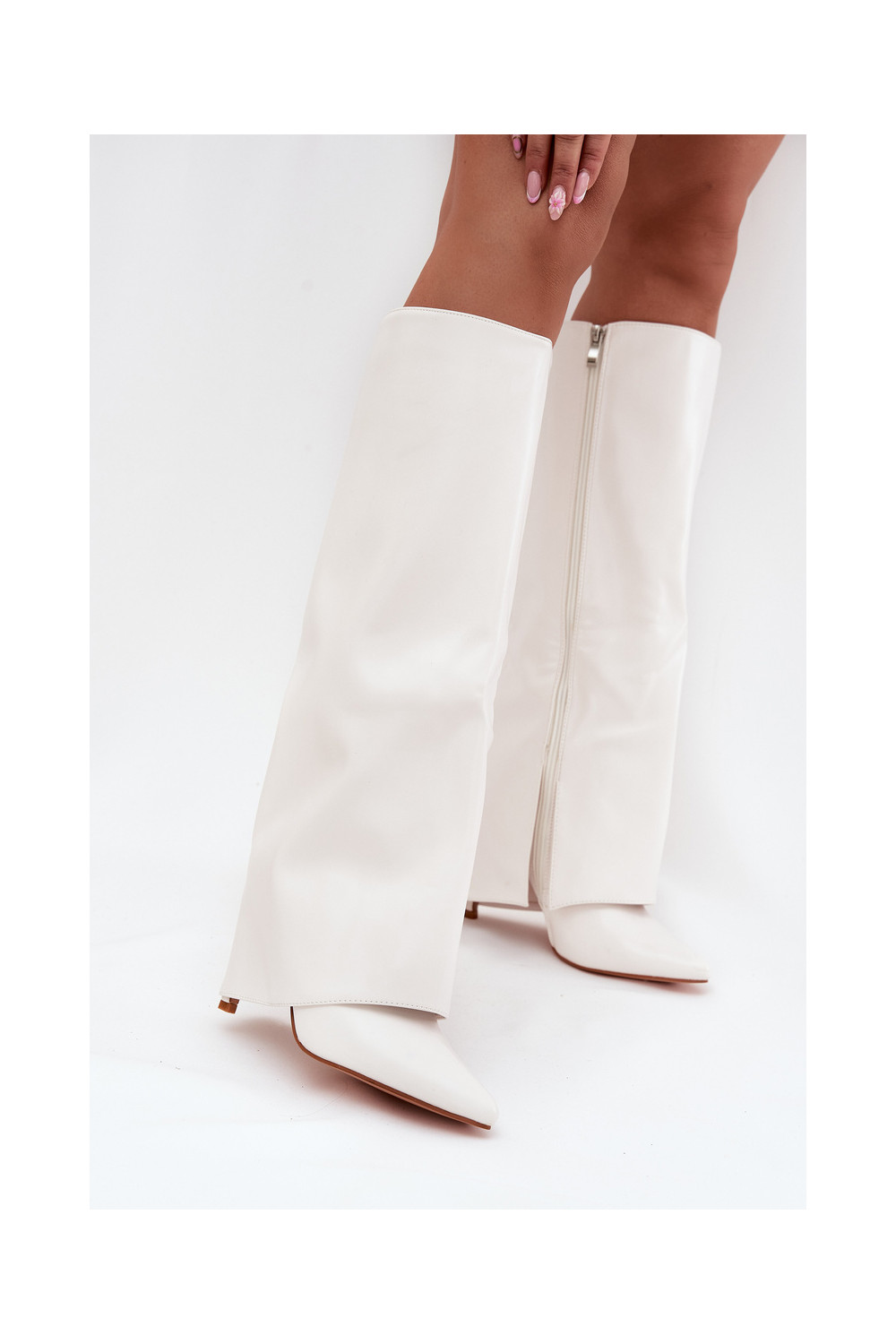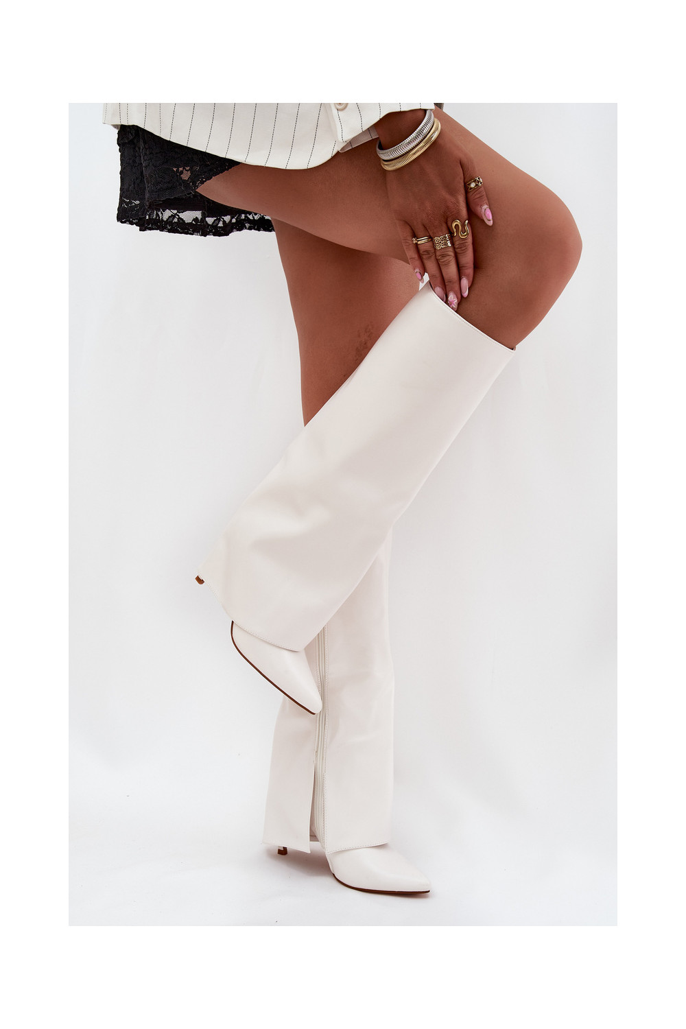 Pašiltinti ilgaauliai batai su plonais kulniukais ir baltos spalvos choleką „Tamonia"