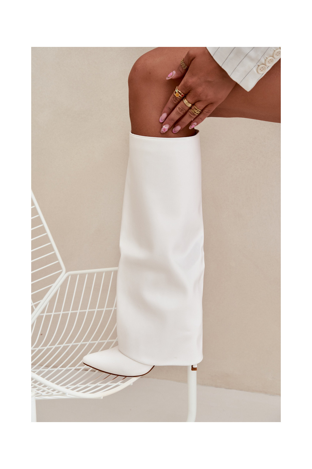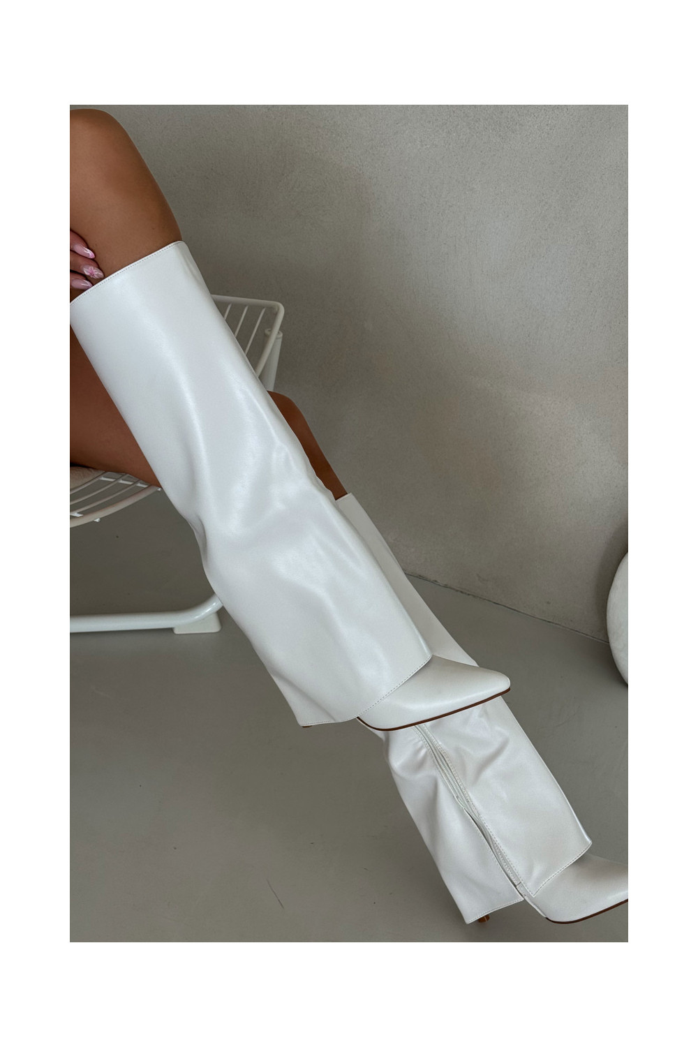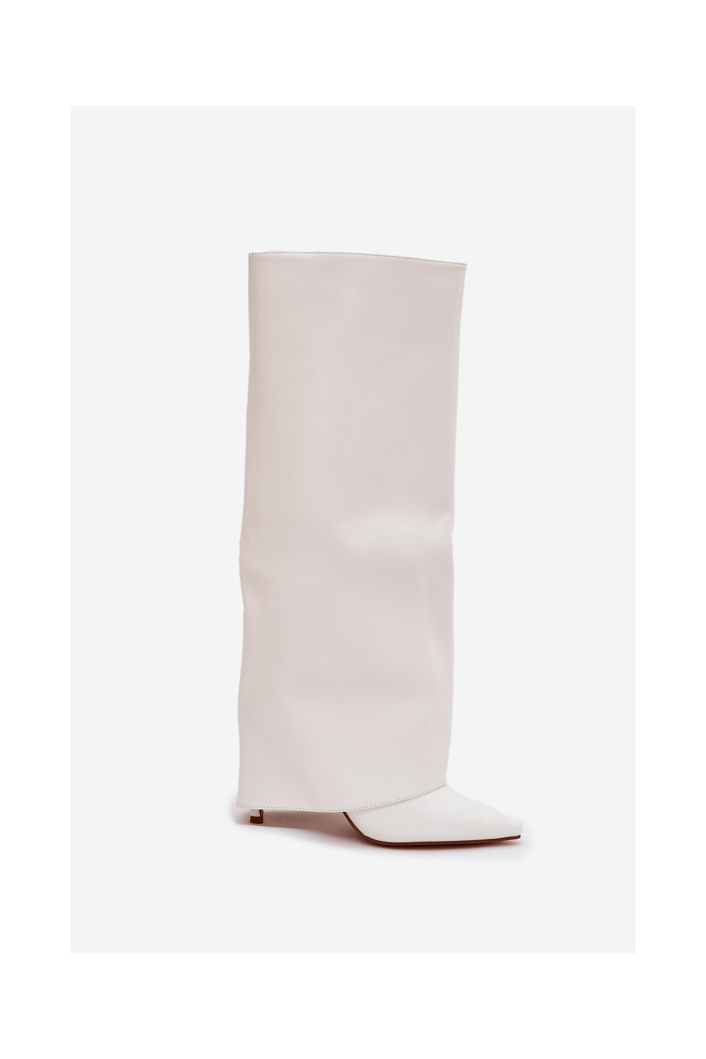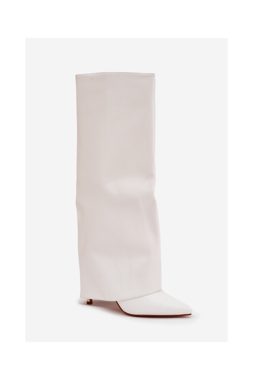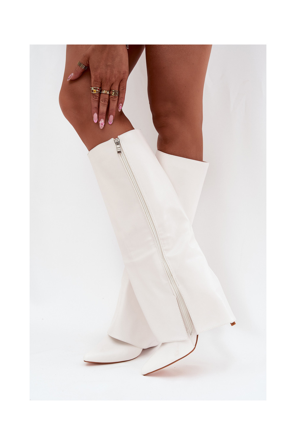 Pašiltinti ilgaauliai batai su plonais kulniukais ir baltos spalvos choleką „Tamonia"