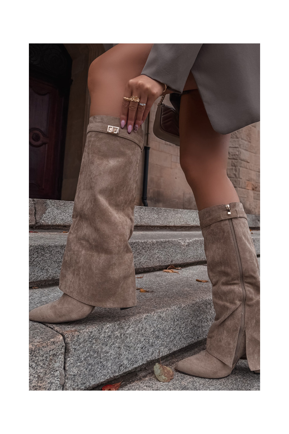 Moteriški ilgaauliai batai kaubojiško stiliaus, su dekoracija ir kulniukais, juodi Jovina