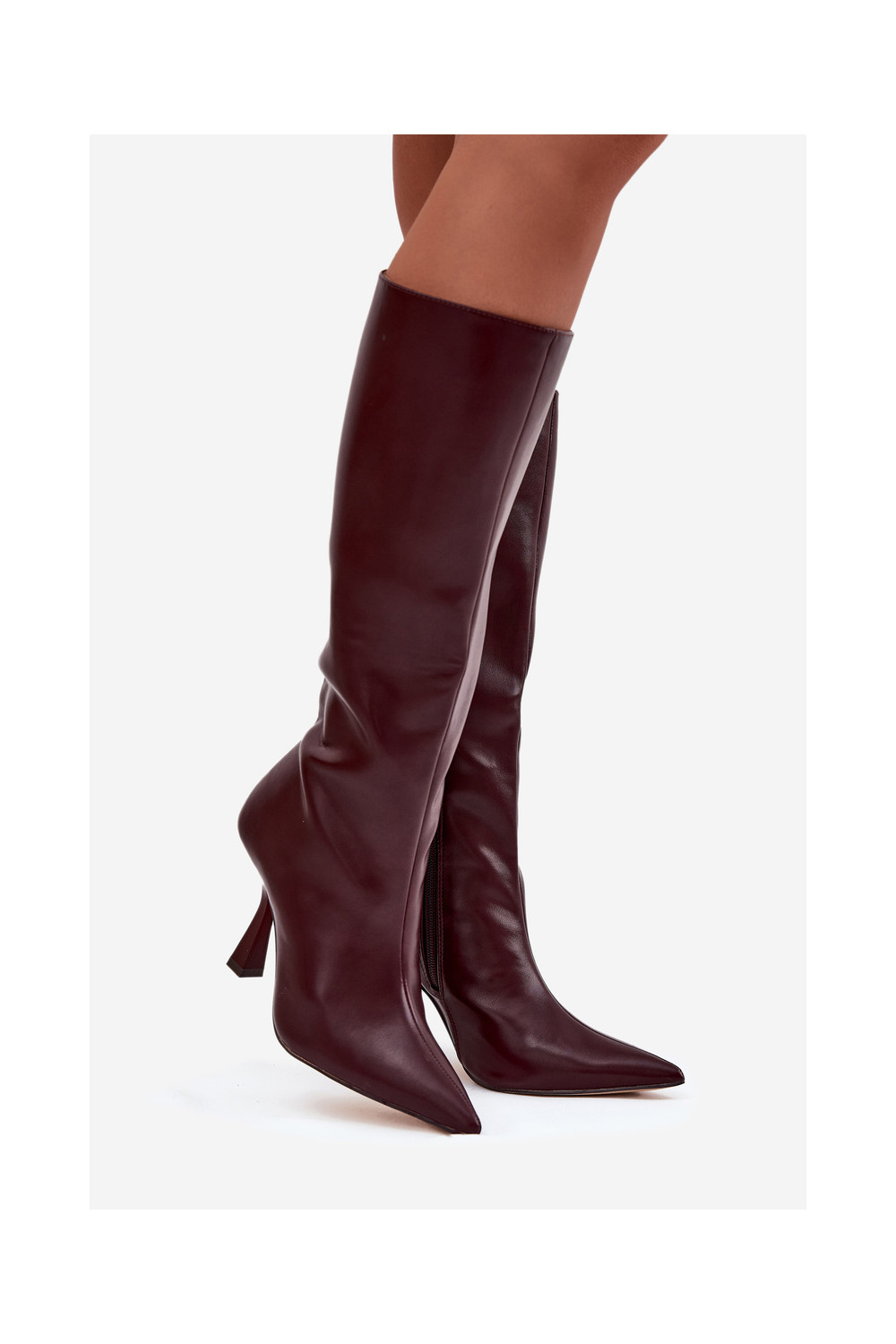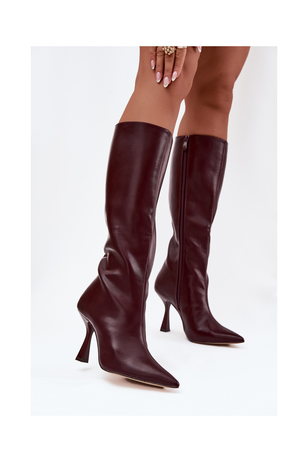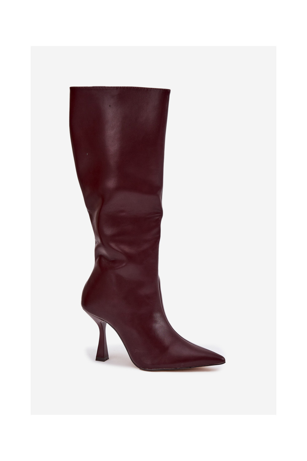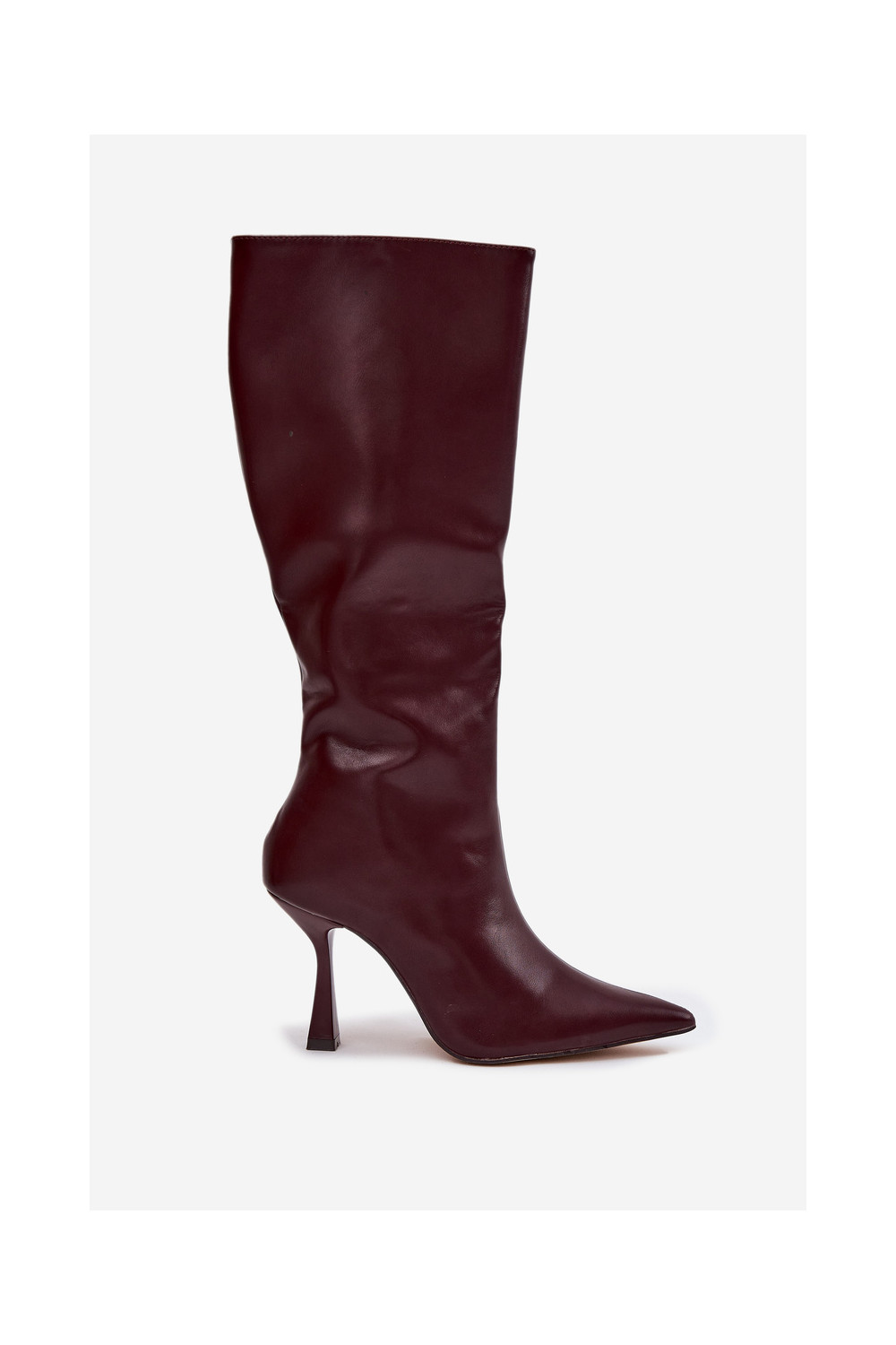 Bordo spalvos moteriški ilgaauliai batai su plonais kulniukais iki kelių Vionette