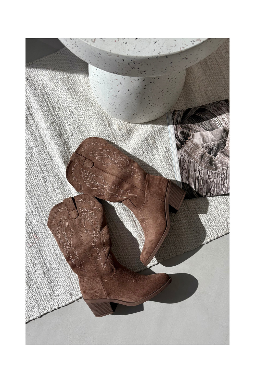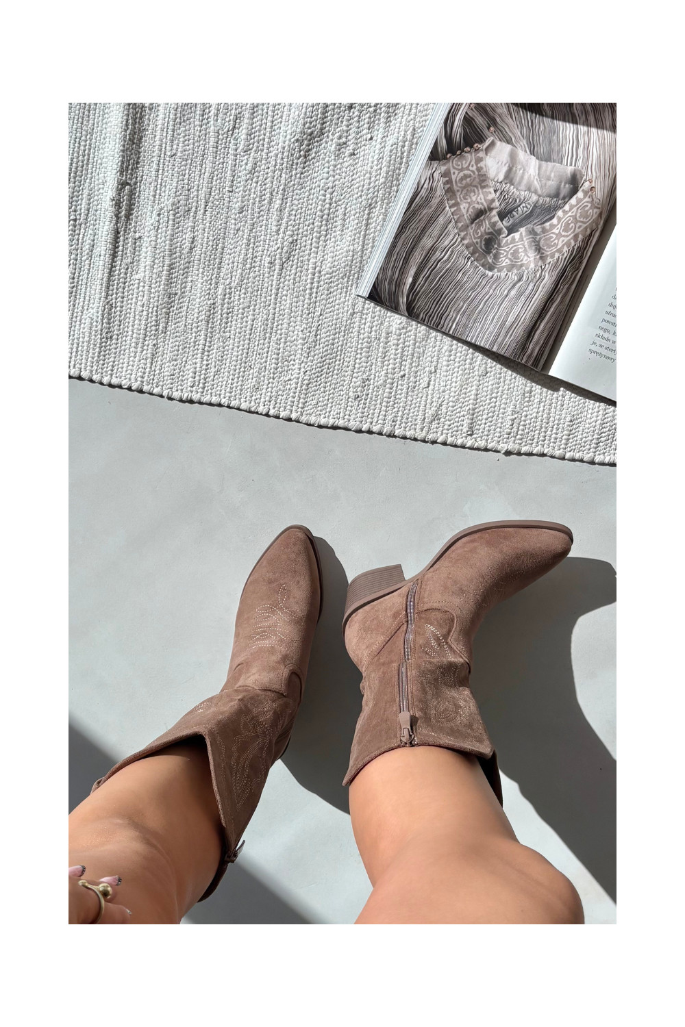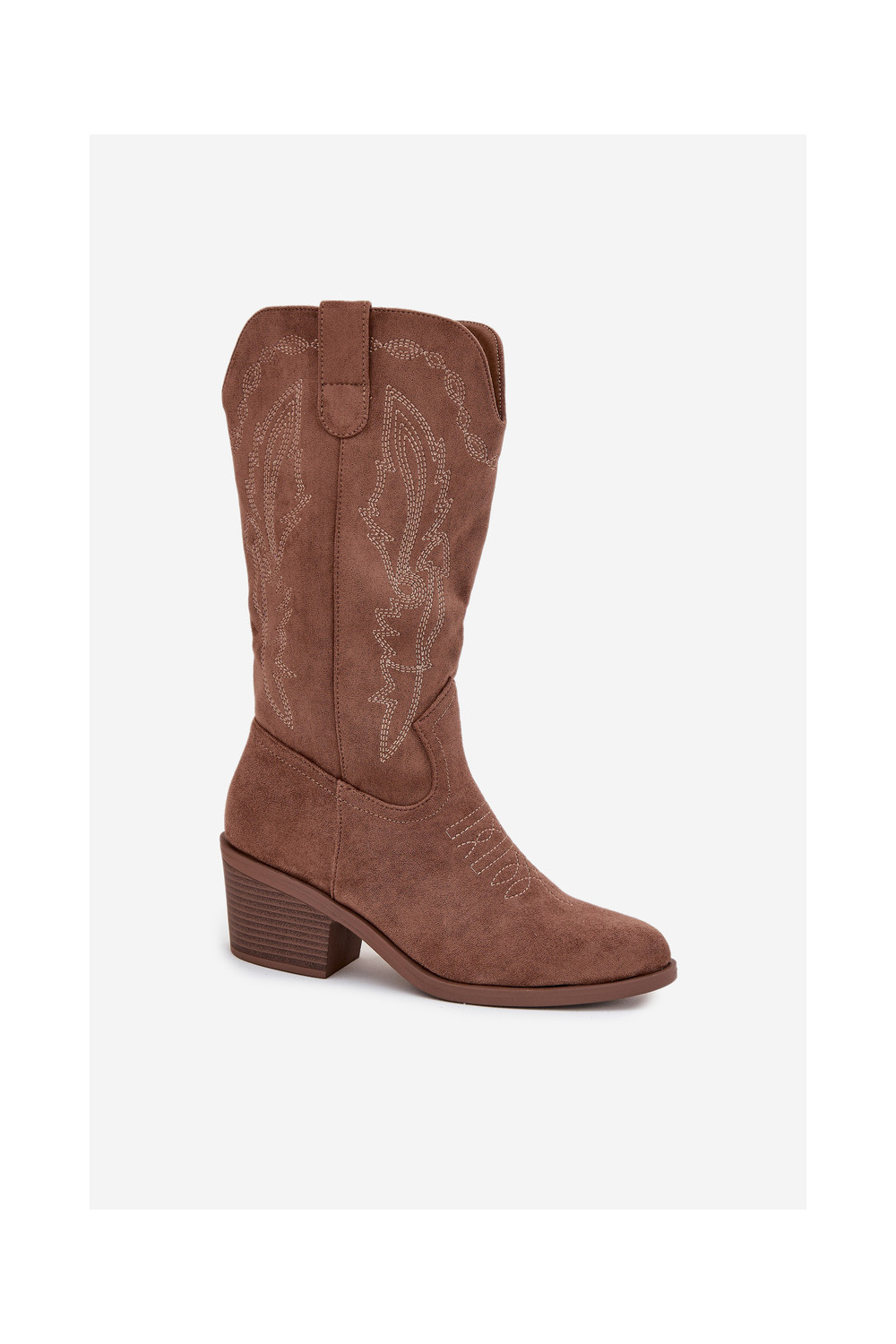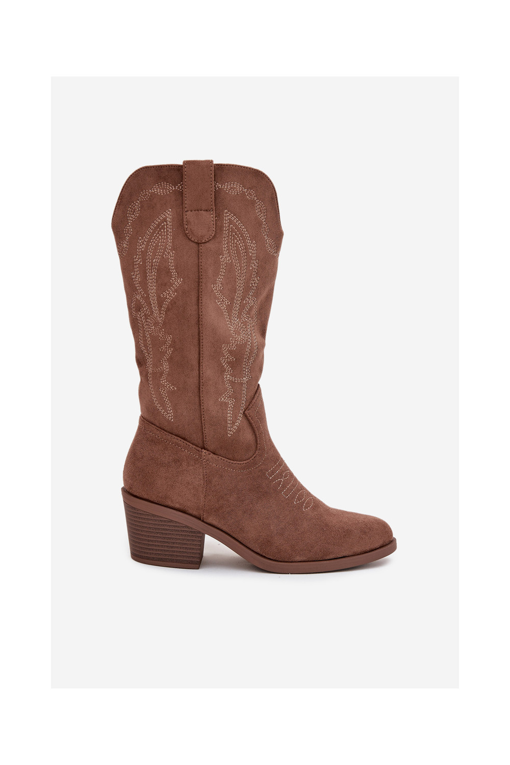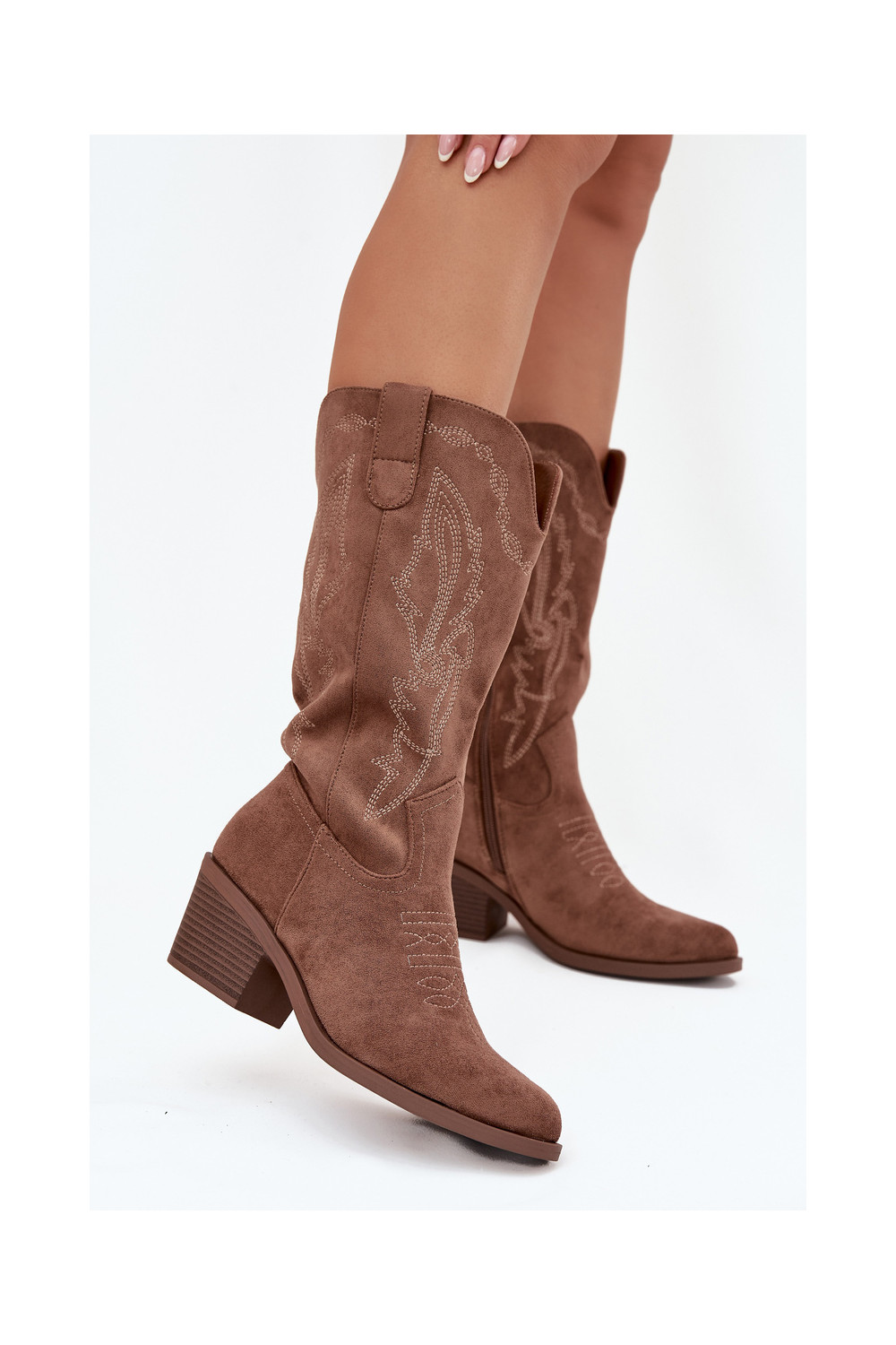 moteriški ilgaauliai kaubojiško stiliaus batai su kulniukais pašiltinti Vinceza 16508 smėlio spalvos