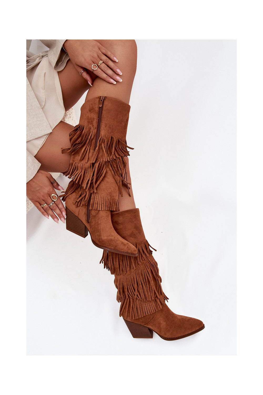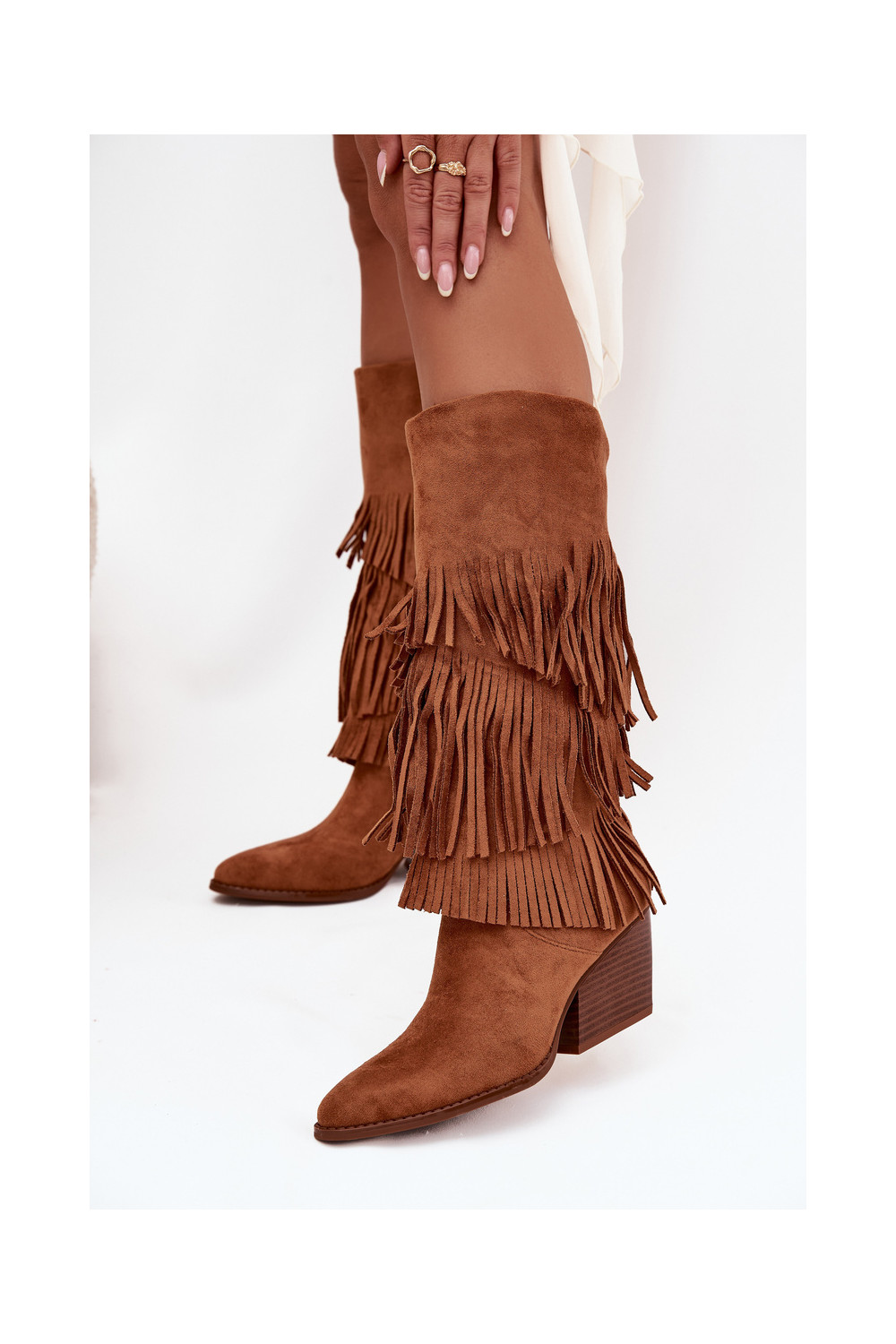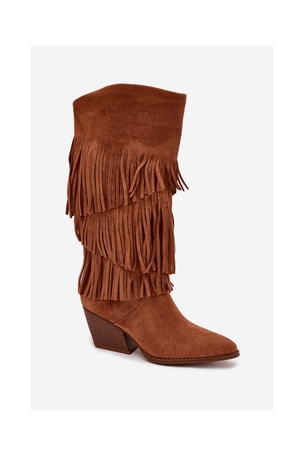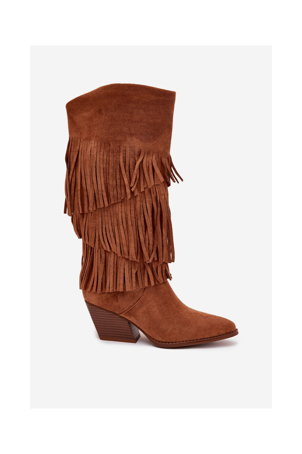 Pašiltinti ilgaauliai kaubojiško stiliaus moteriški batai su kutais rudos spalvos Brivina