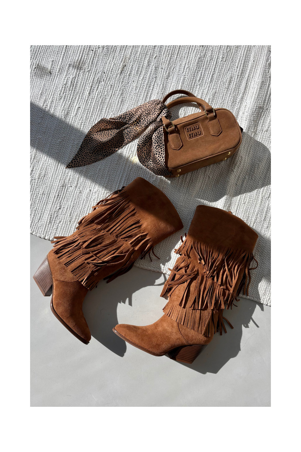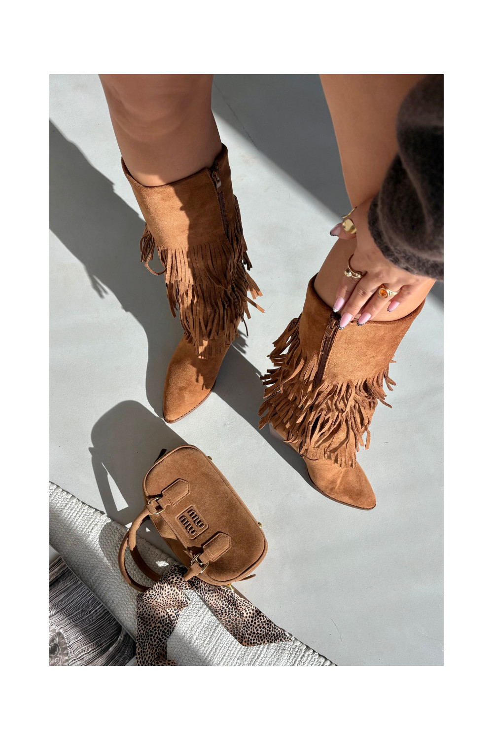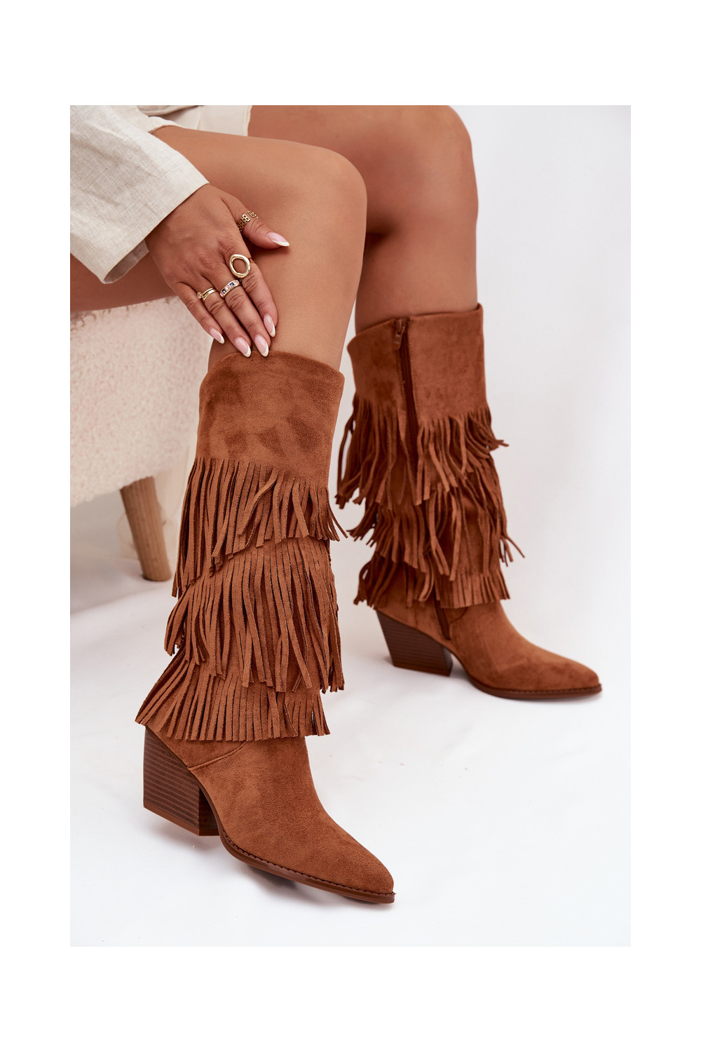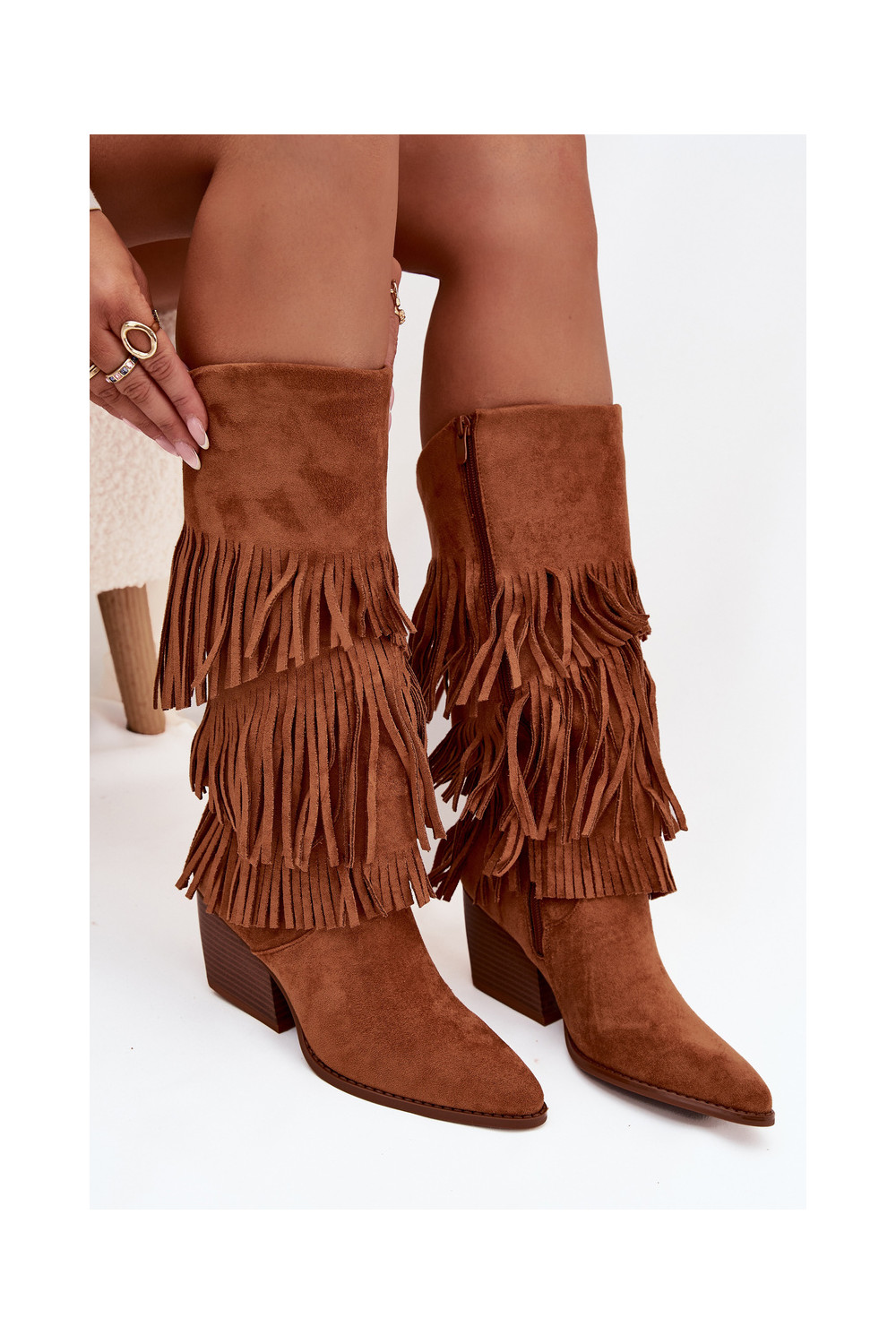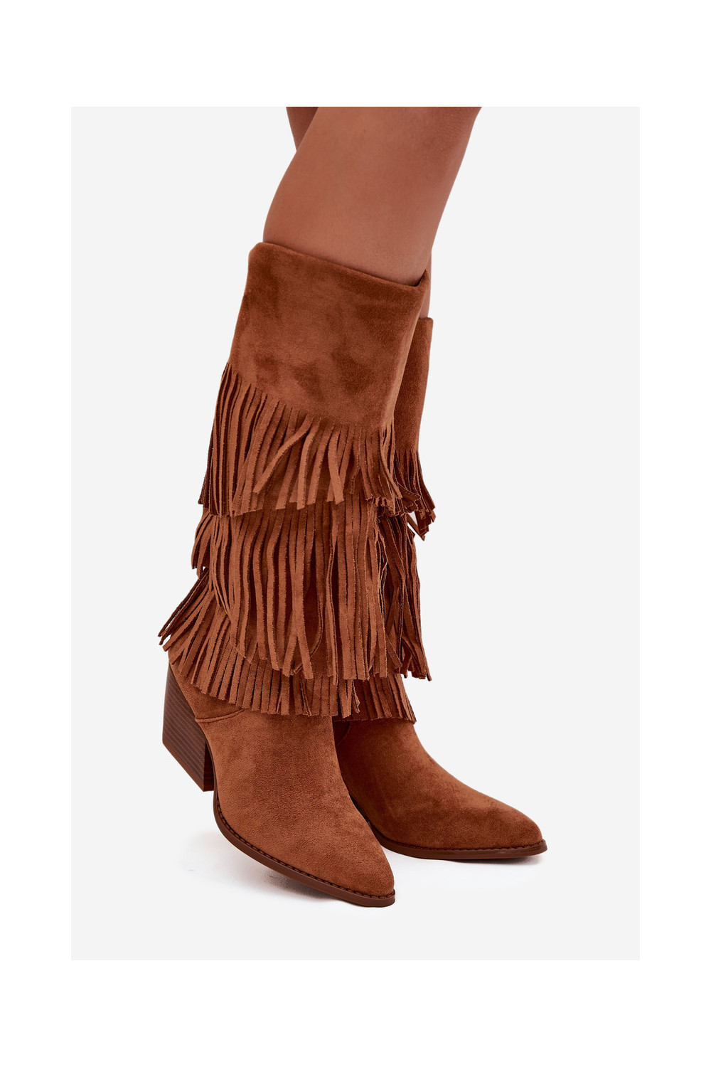 Pašiltinti ilgaauliai kaubojiško stiliaus moteriški batai su kutais rudos spalvos Brivina