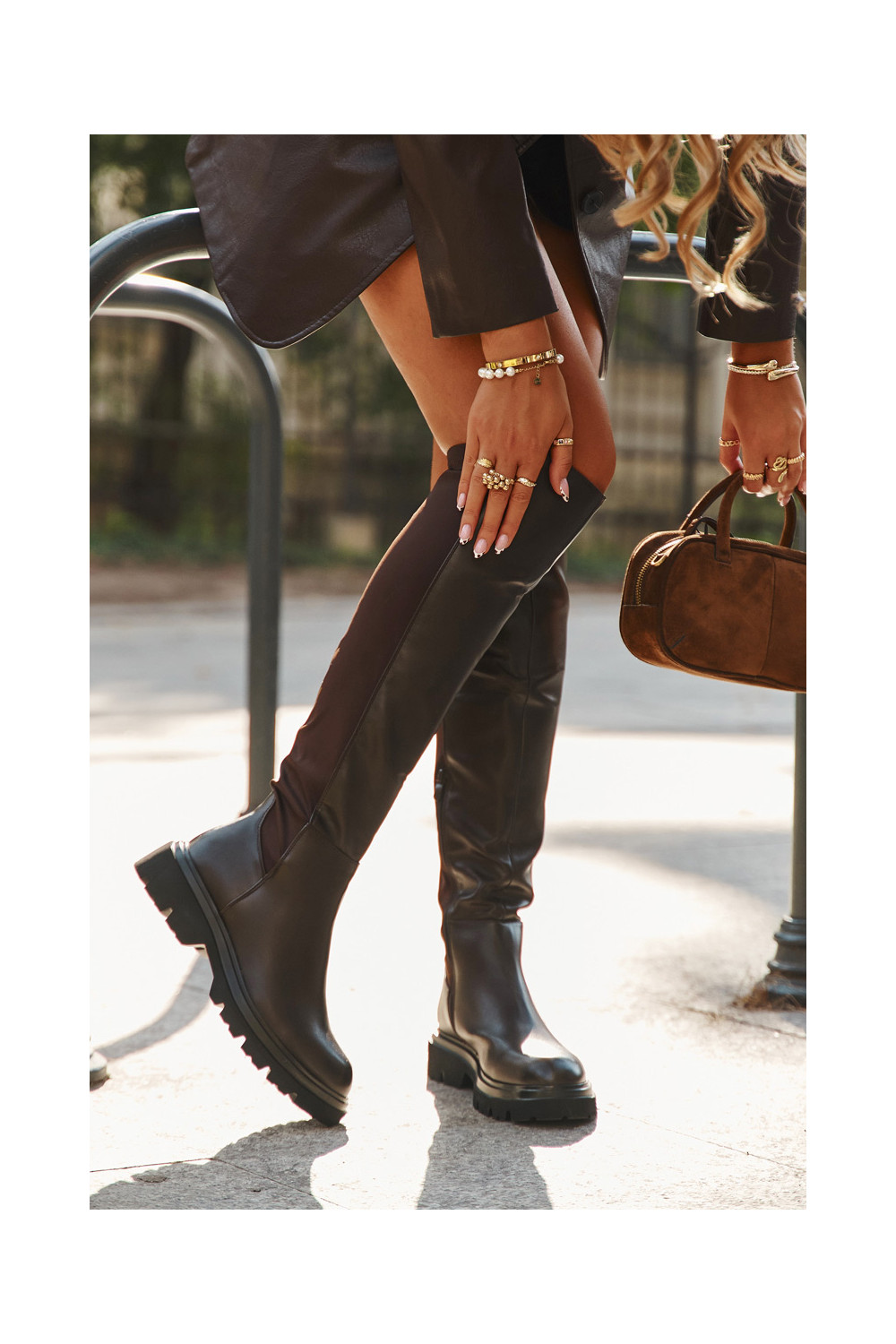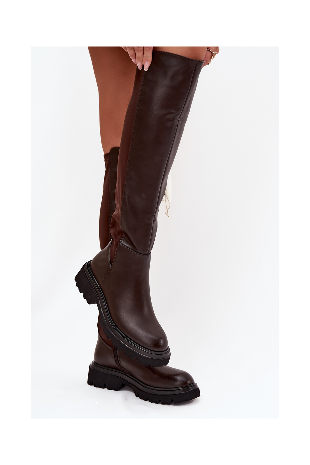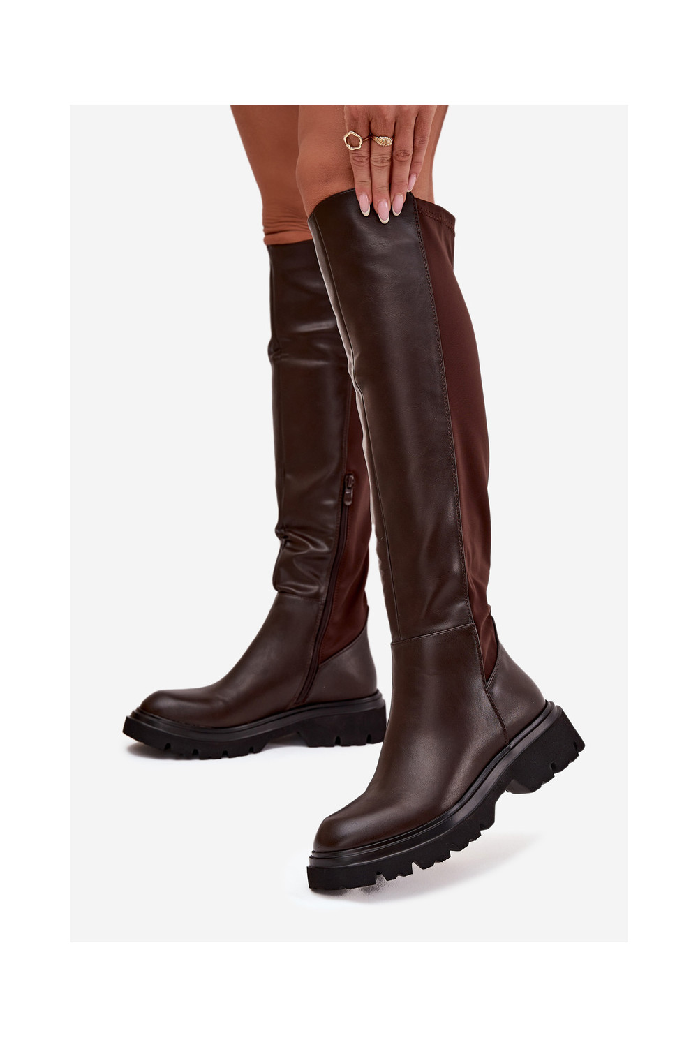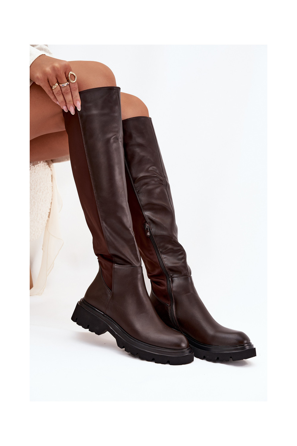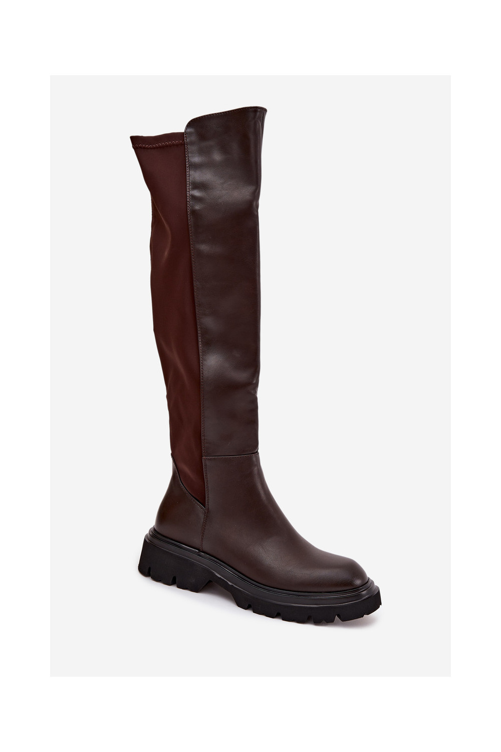 Įsispiriamo modelio moteriški ilgaauliai batai iš dirbtinės odos, šokoladinės spalvos, Sylvina