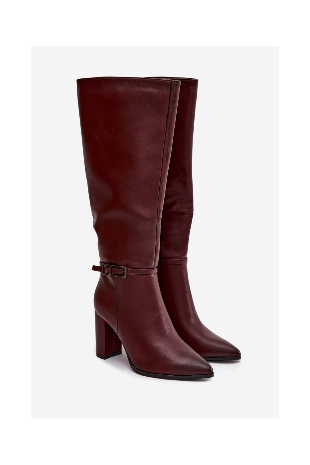 Šilti ilgaauliai batai su kulniukais ir sagtimis, bordo spalvos, Fionelle