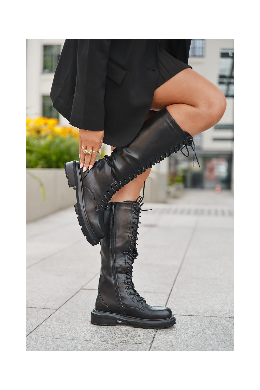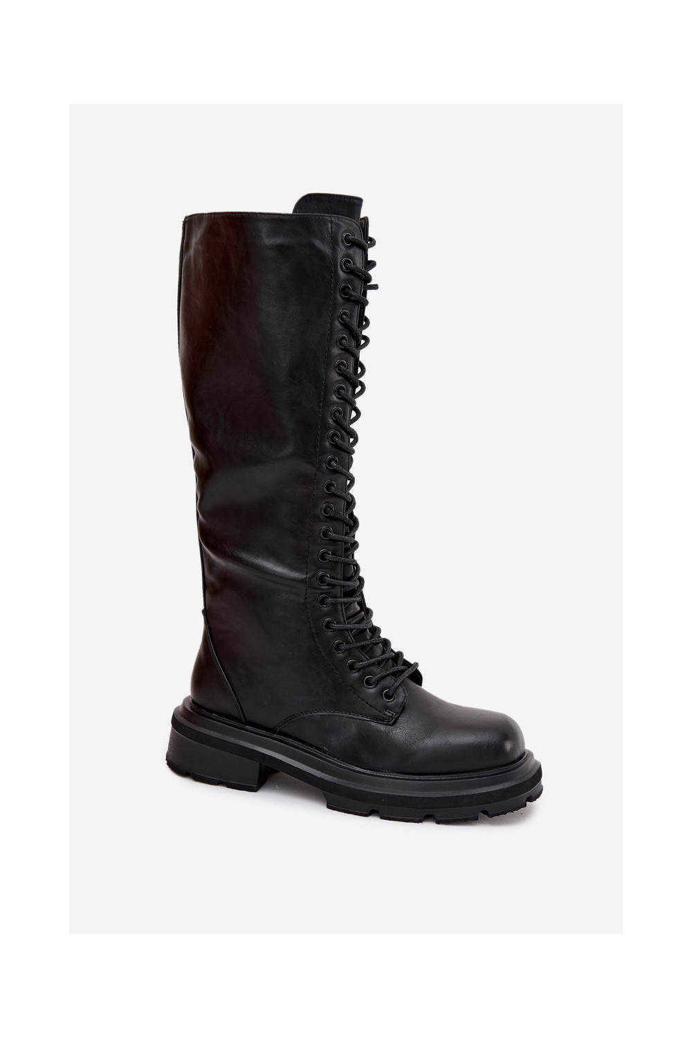 Ilgaauliai kerziniai batai moterims, pašildyti, iš eko odos, juodi, Selvina