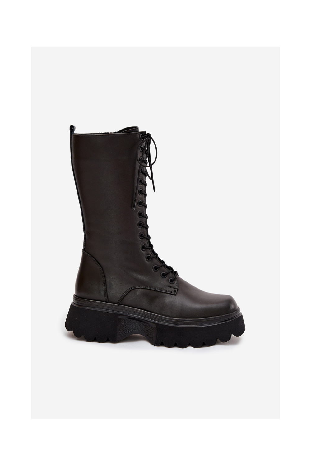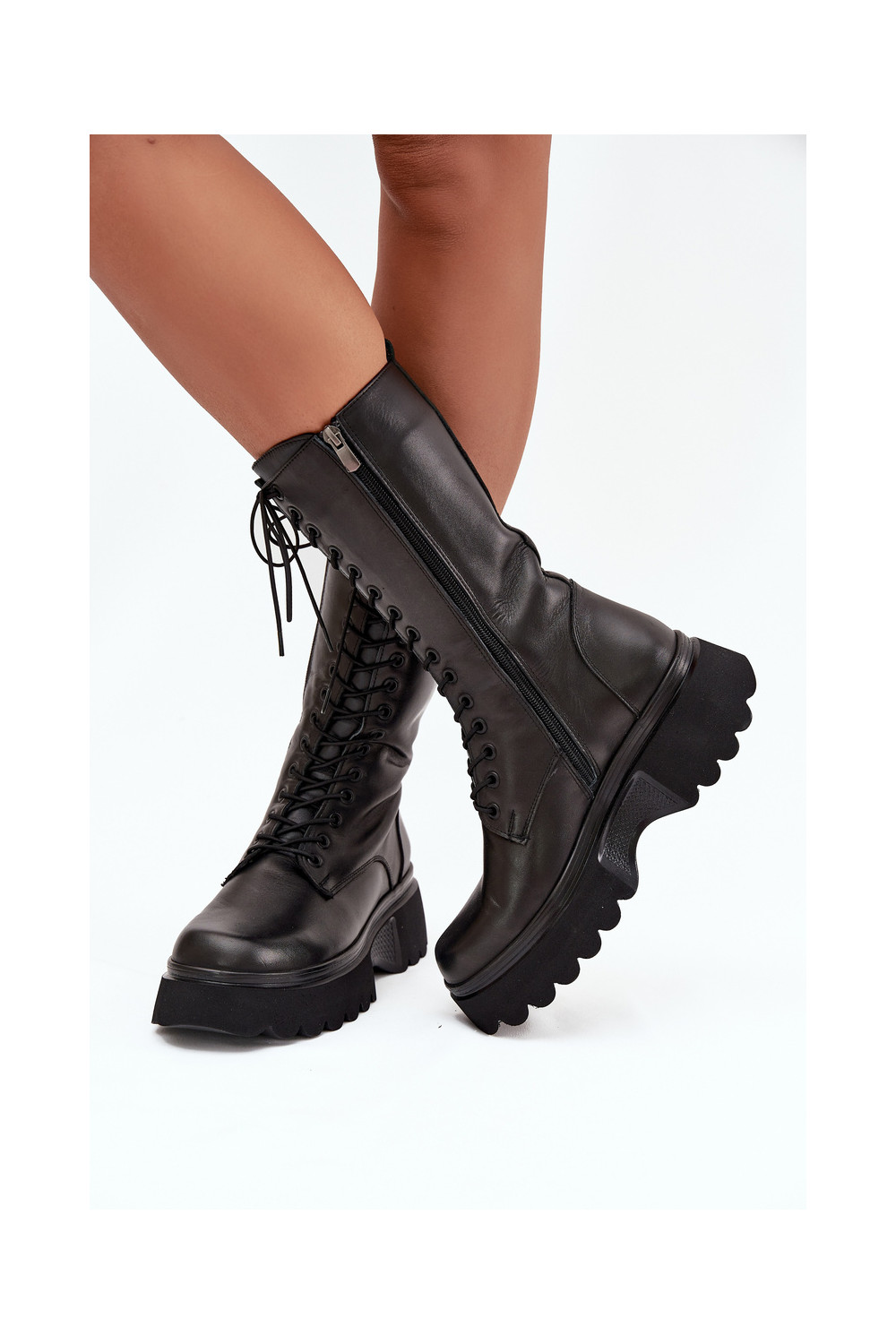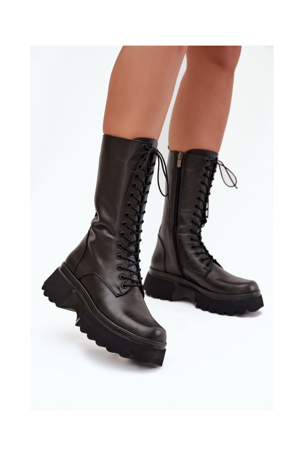 Juodos spalvos odiniai šilti ilgaauliai batai su platforma Artiker 57C2282