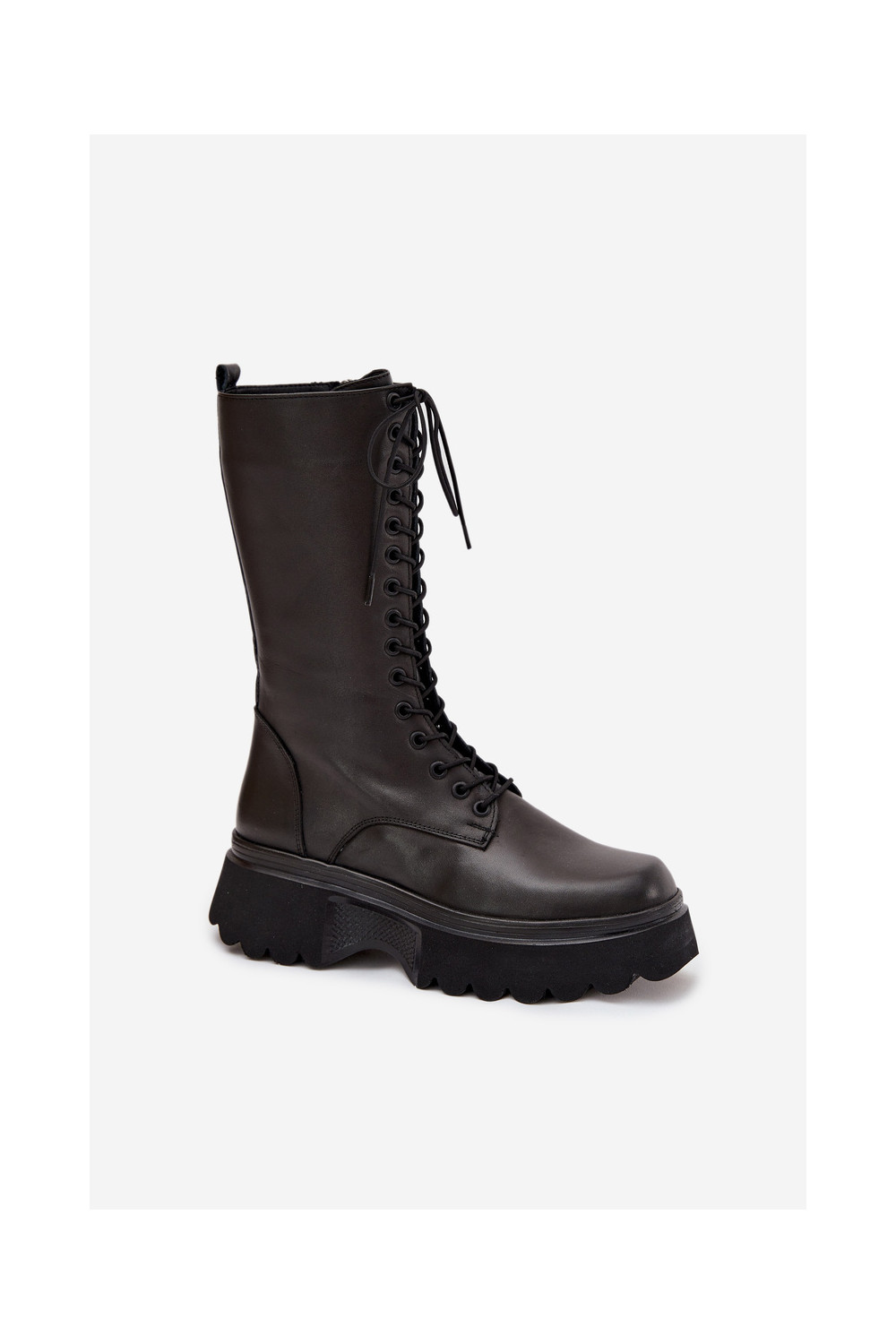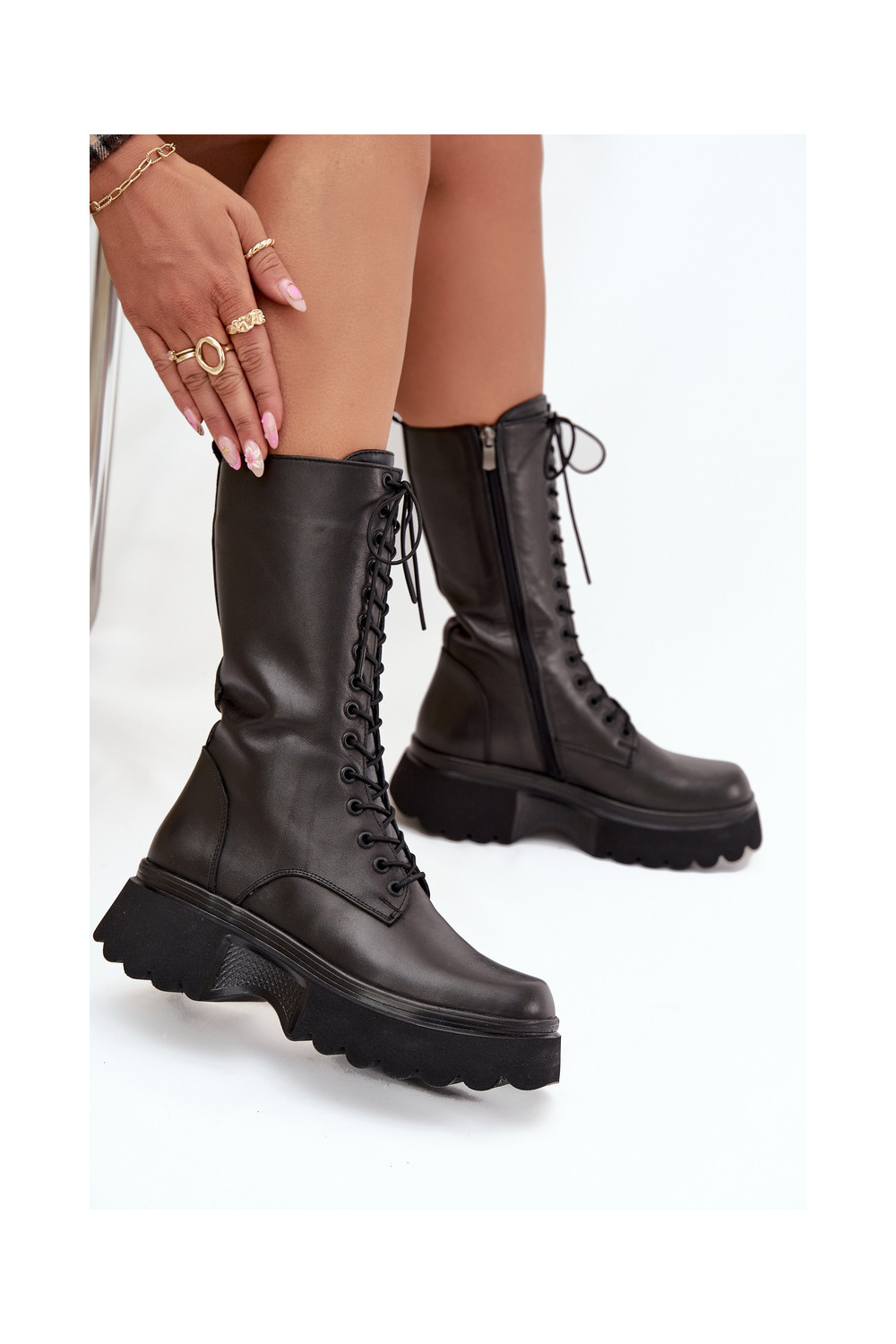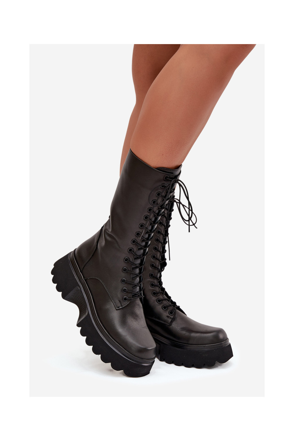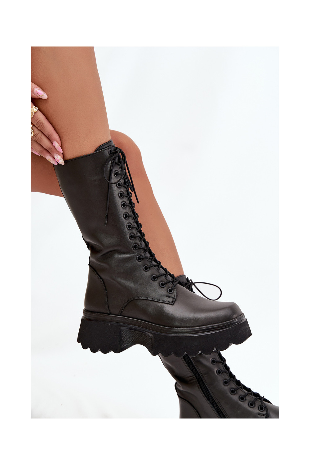 Juodos spalvos odiniai šilti ilgaauliai batai su platforma Artiker 57C2282