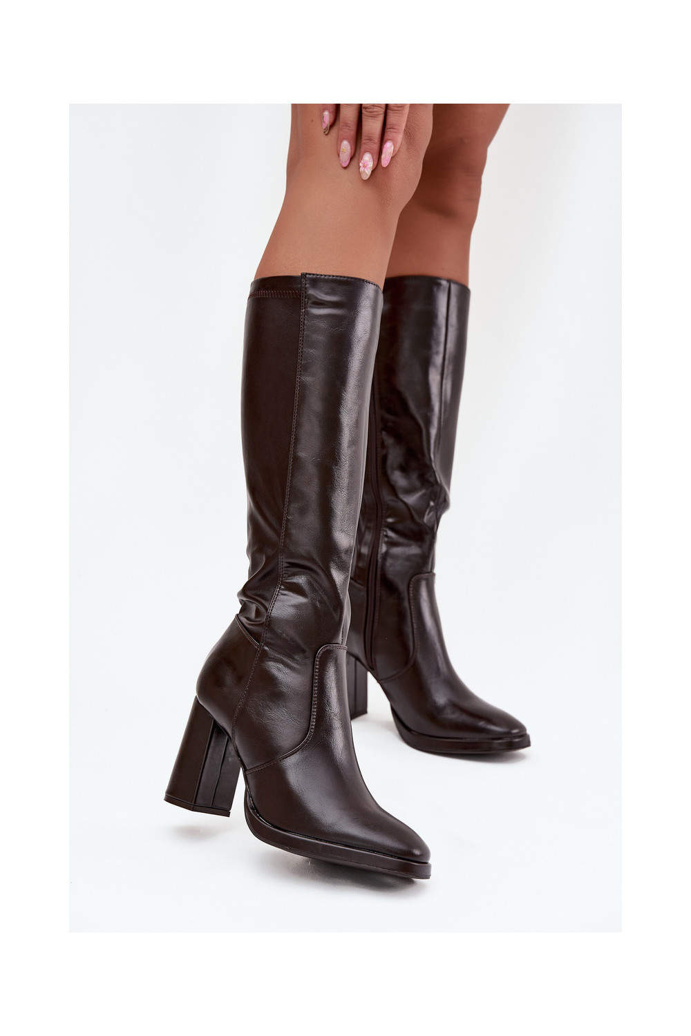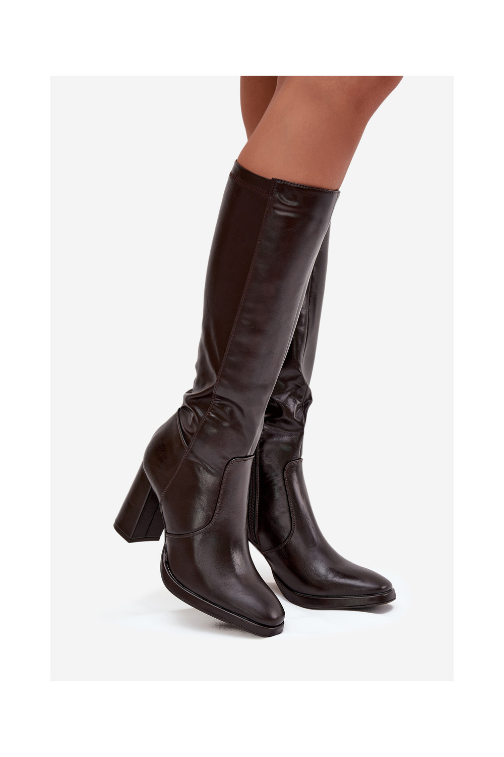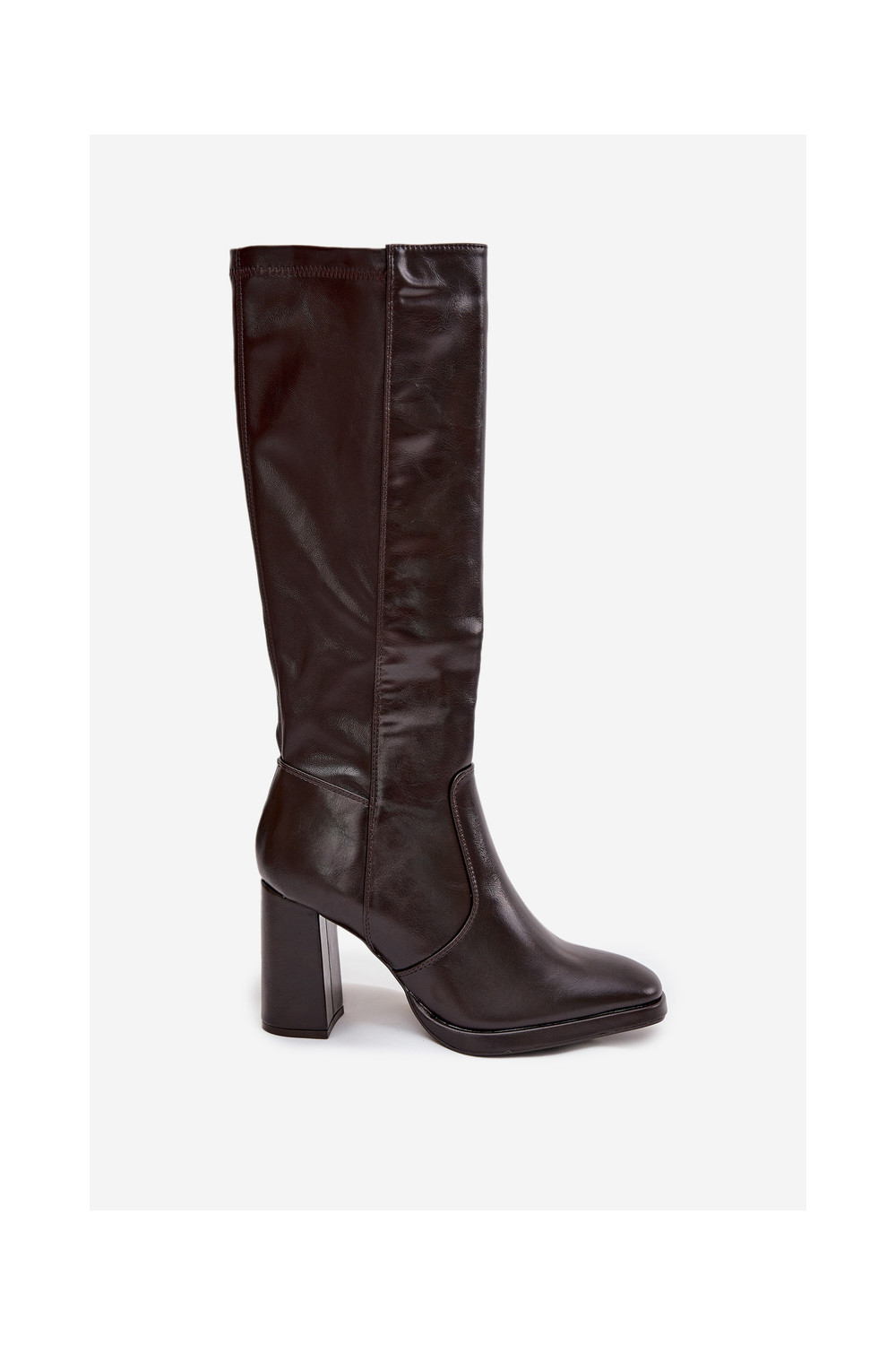 Bordo spalvos moteriški šilti ilgaauliai batai su kulniukais iš eko odos Lyvella