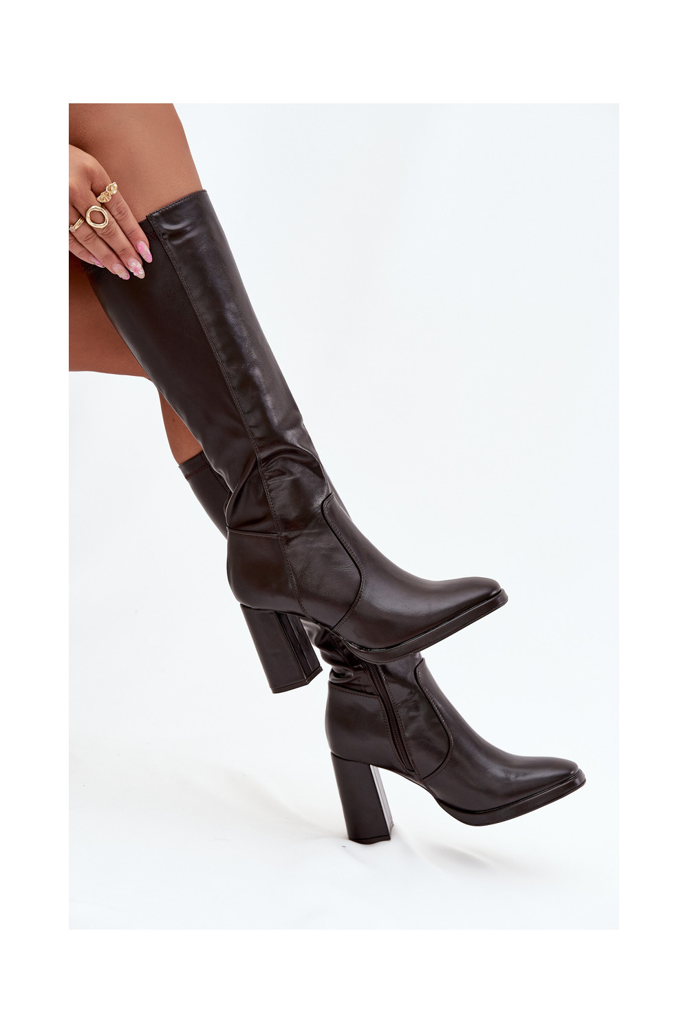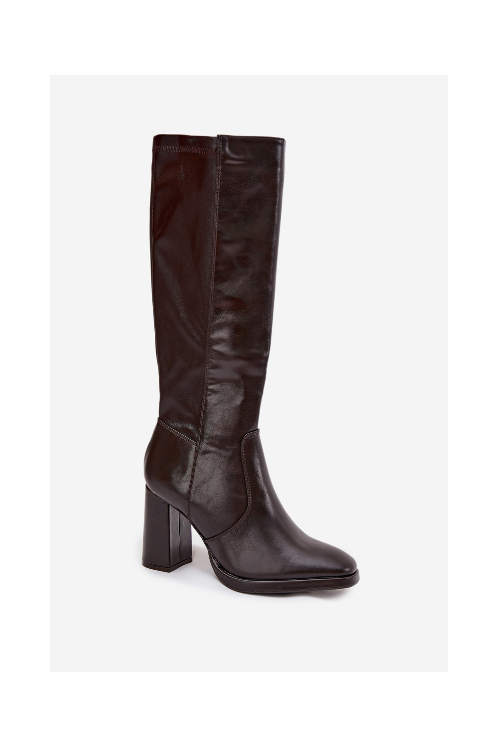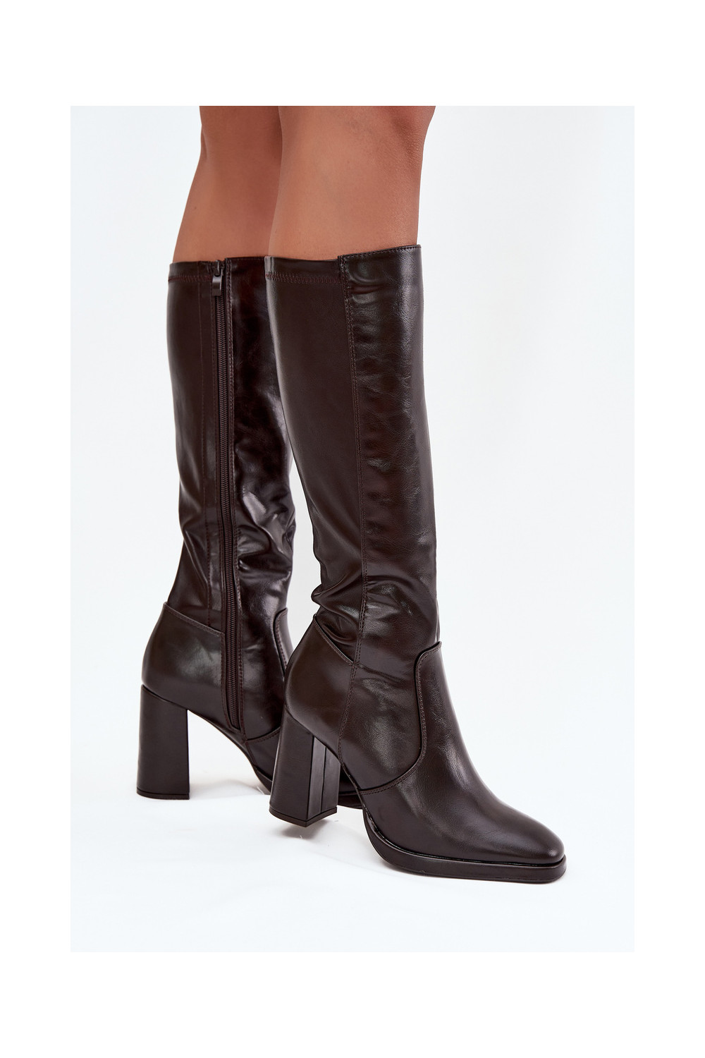 Bordo spalvos moteriški šilti ilgaauliai batai su kulniukais iš eko odos Lyvella