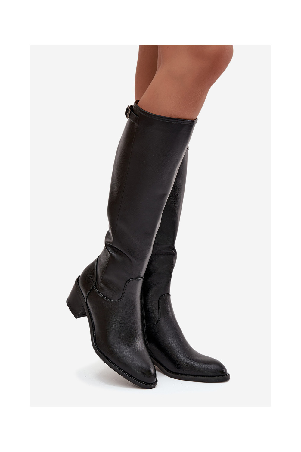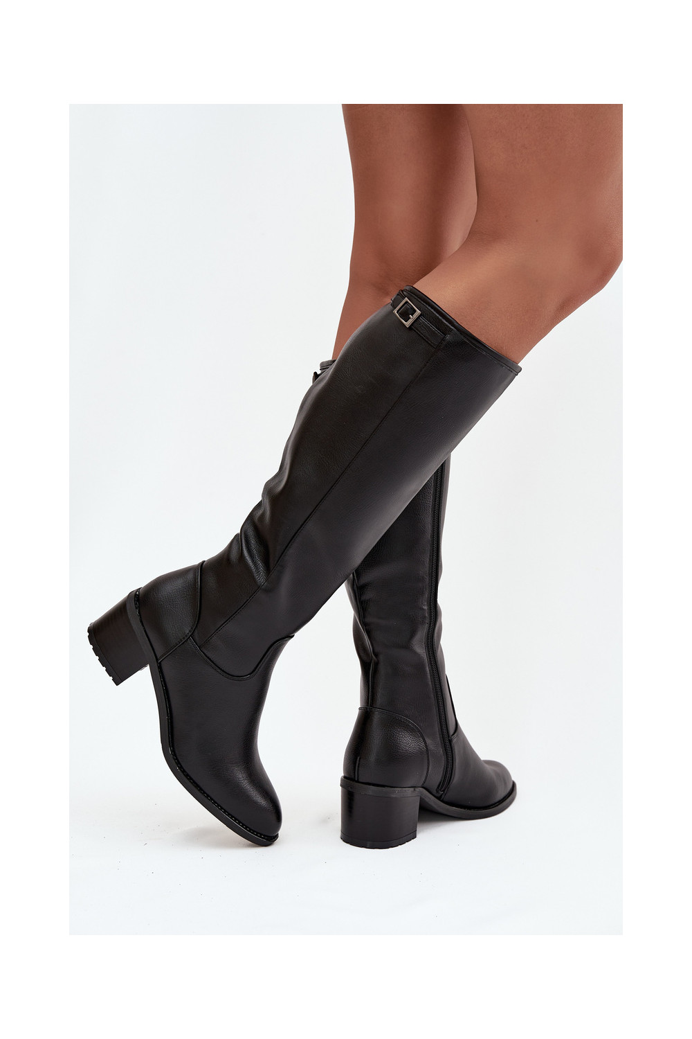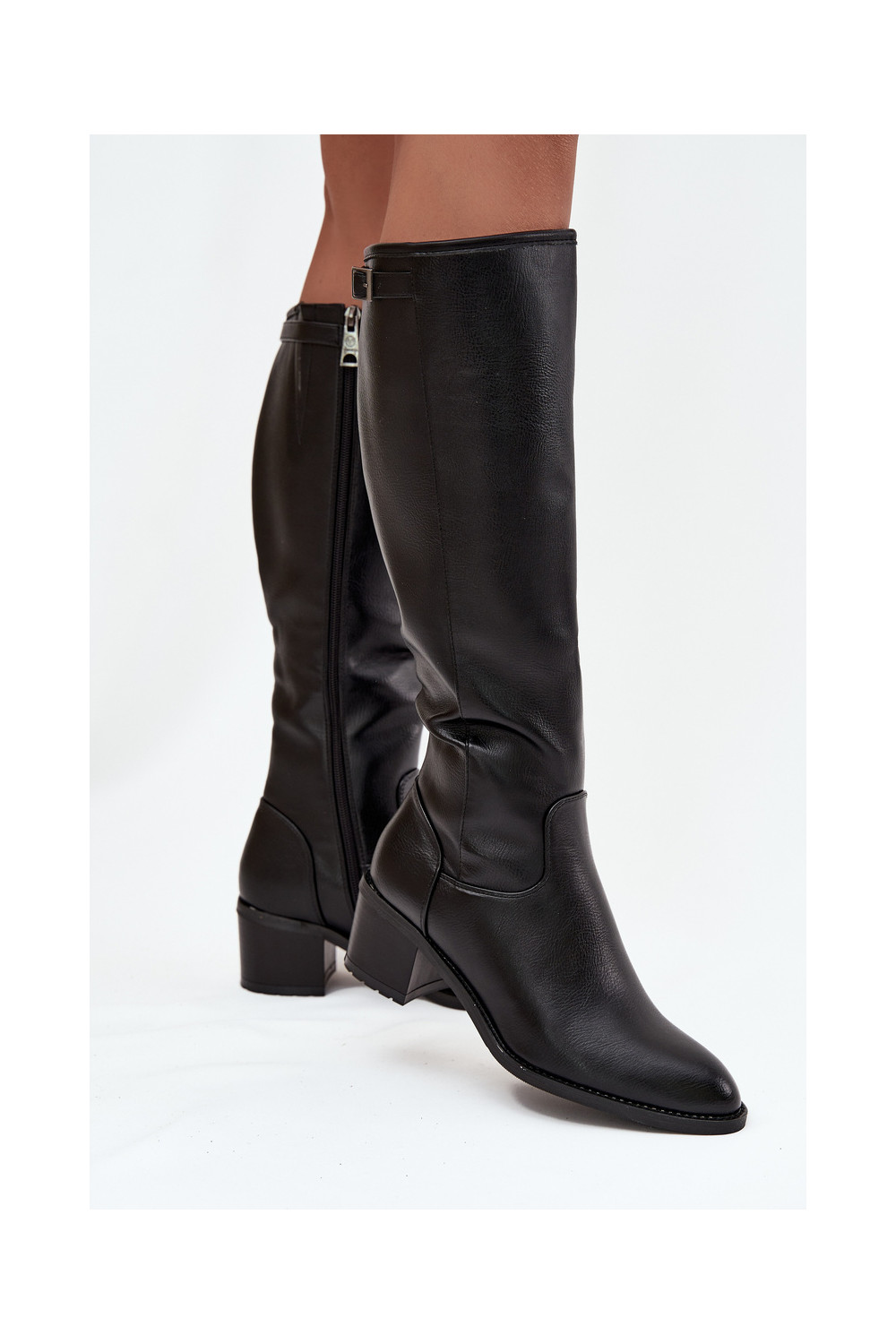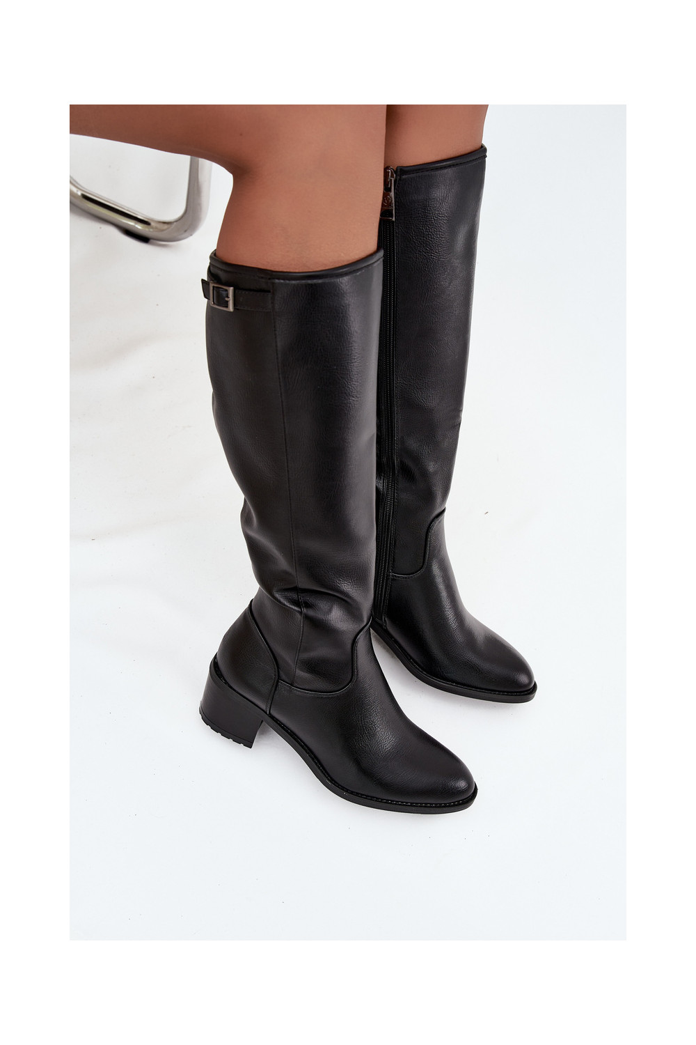 Šilti moteriški ilgaauliai batai su kulniukais ir sagtimis Vinceza 58589 juodos spalvos