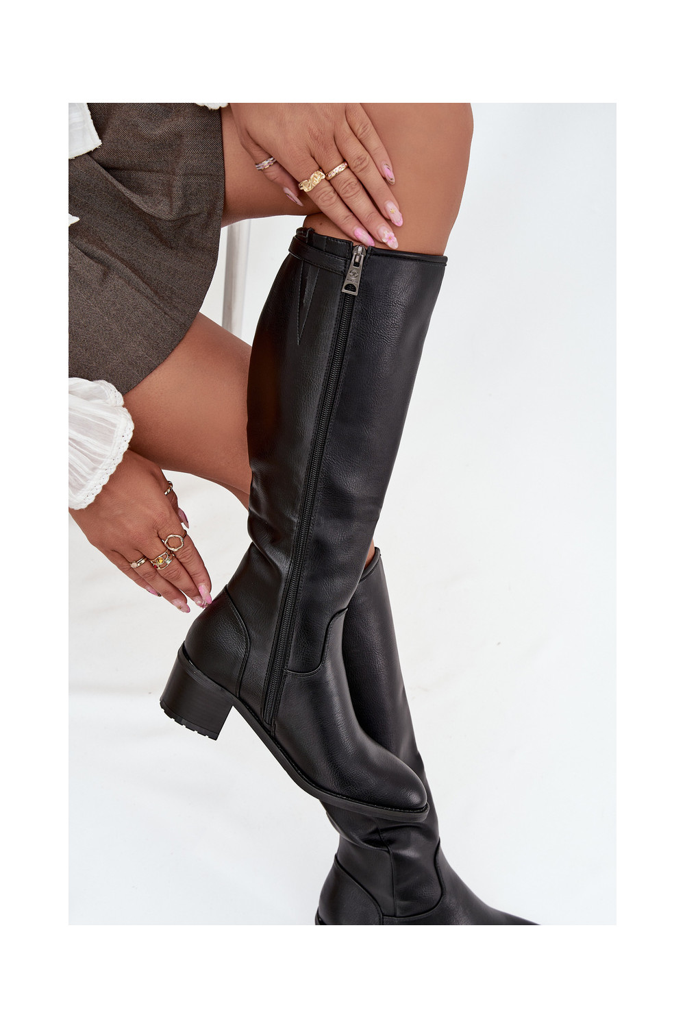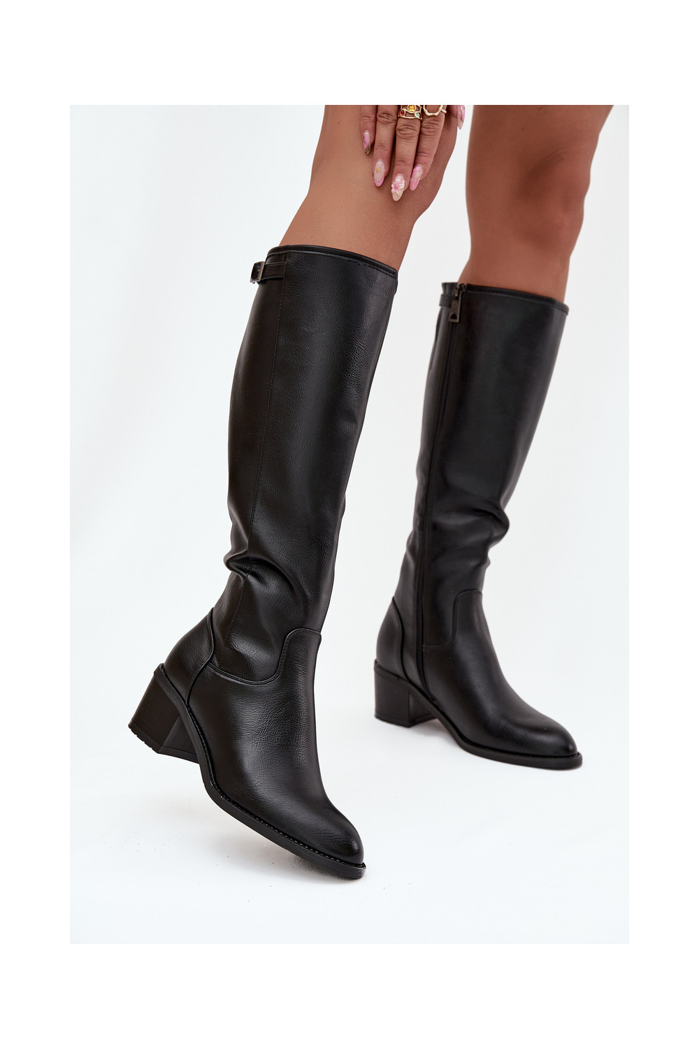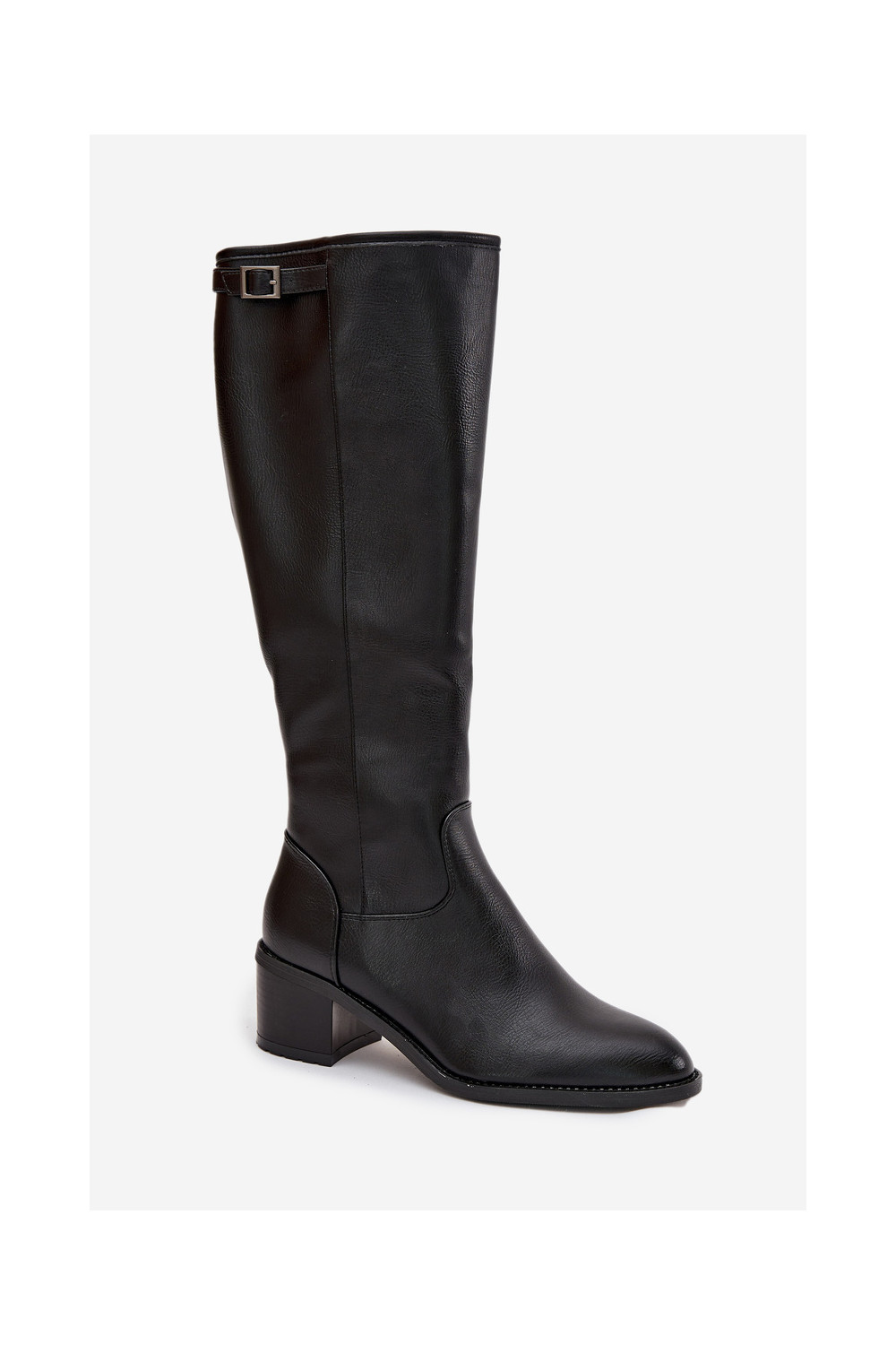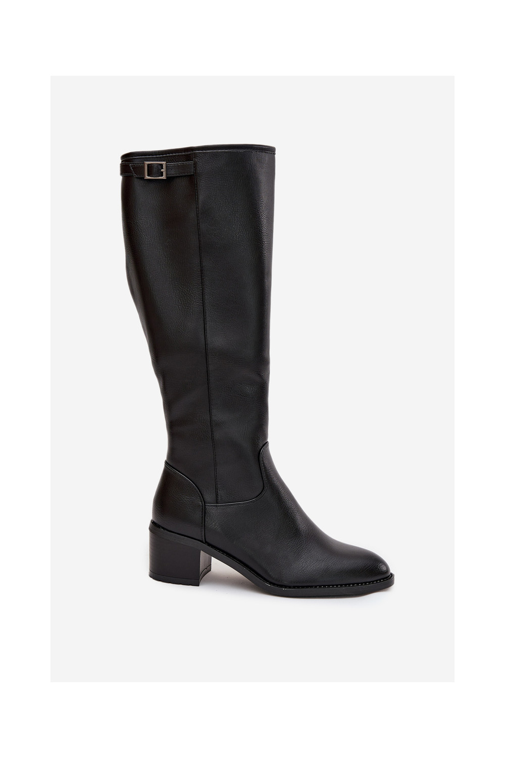 Šilti moteriški ilgaauliai batai su kulniukais ir sagtimis Vinceza 58589 juodos spalvos