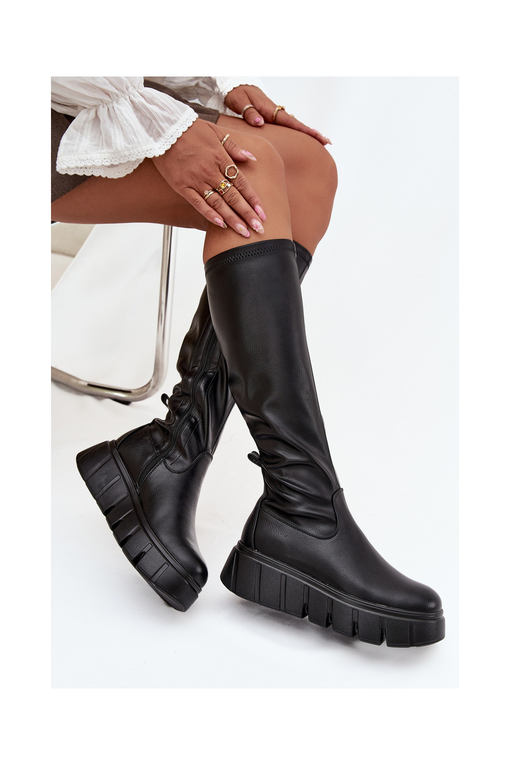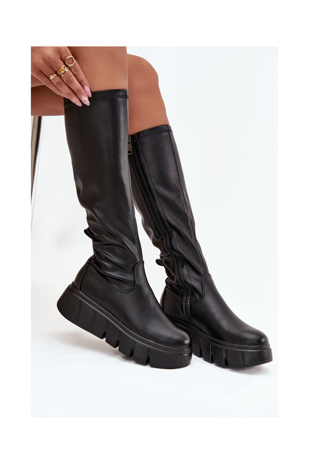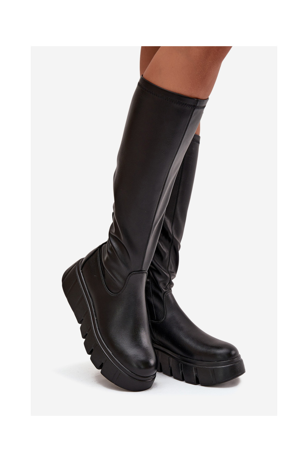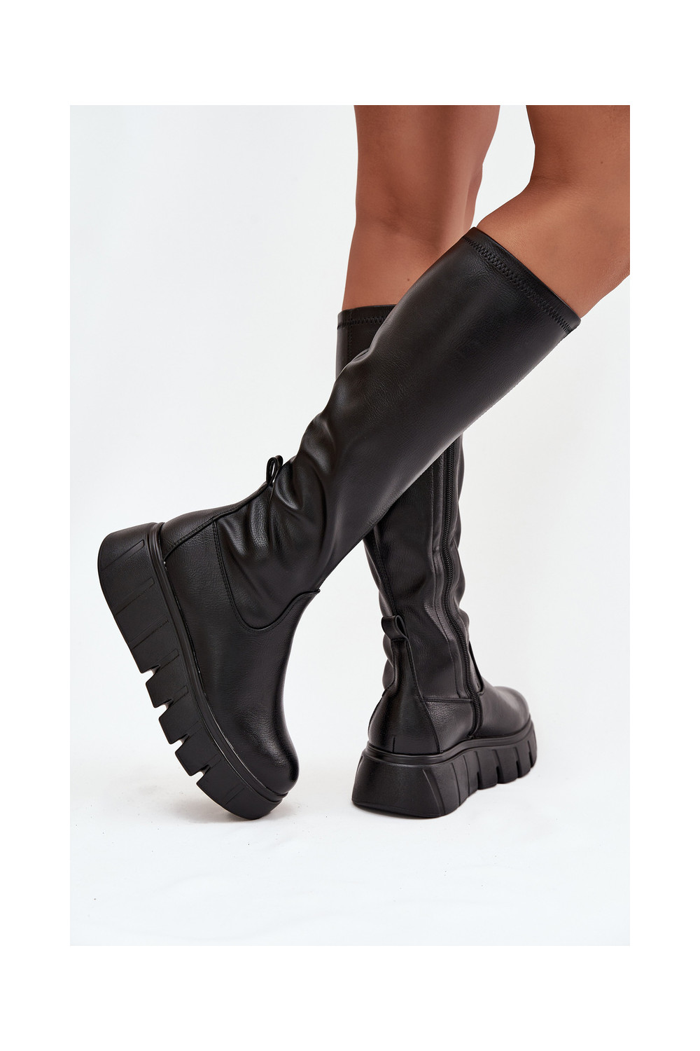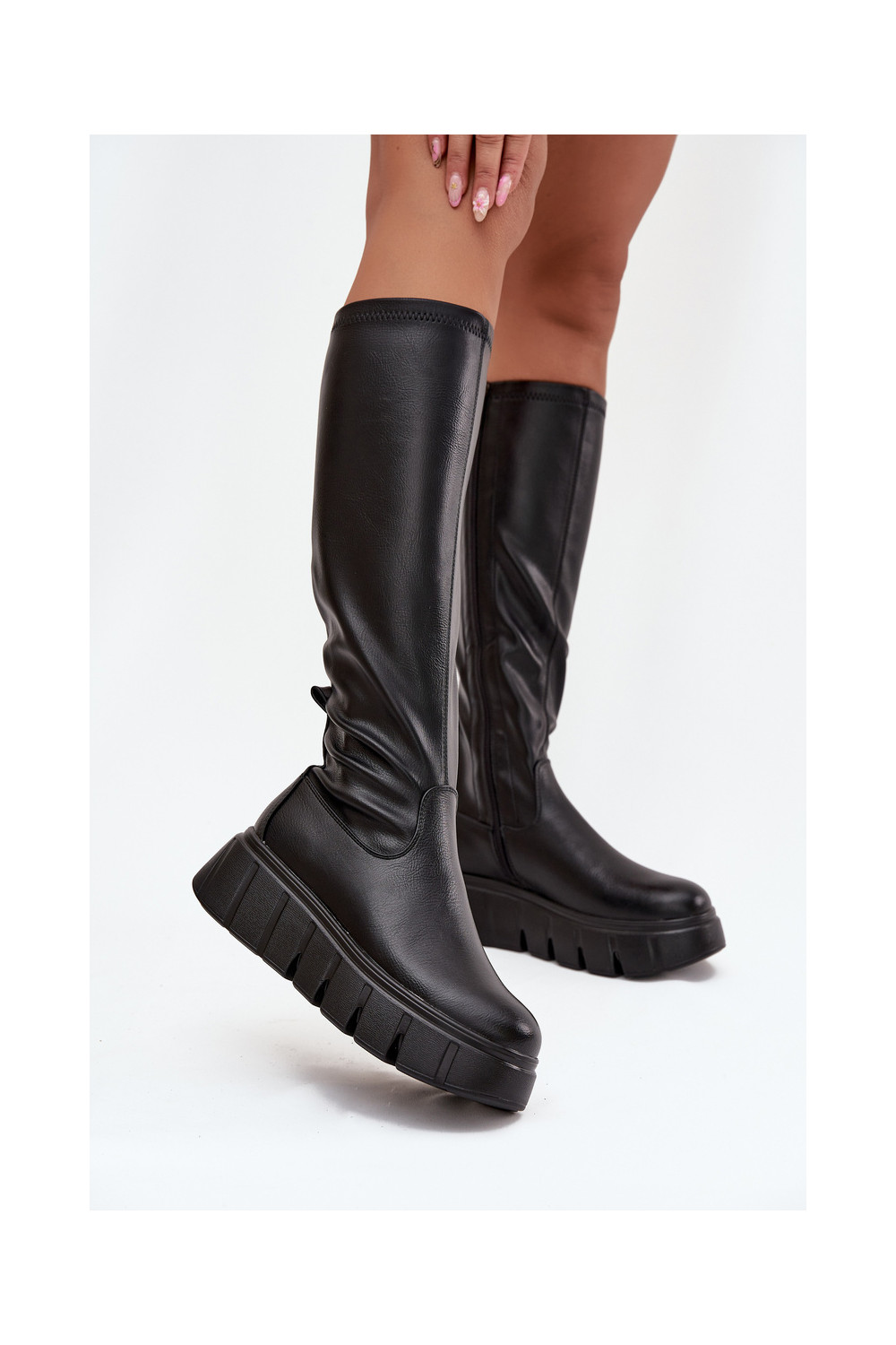 Moteriški ilgaauliai batai su platforma Vinceza 58553 juodos spalvos