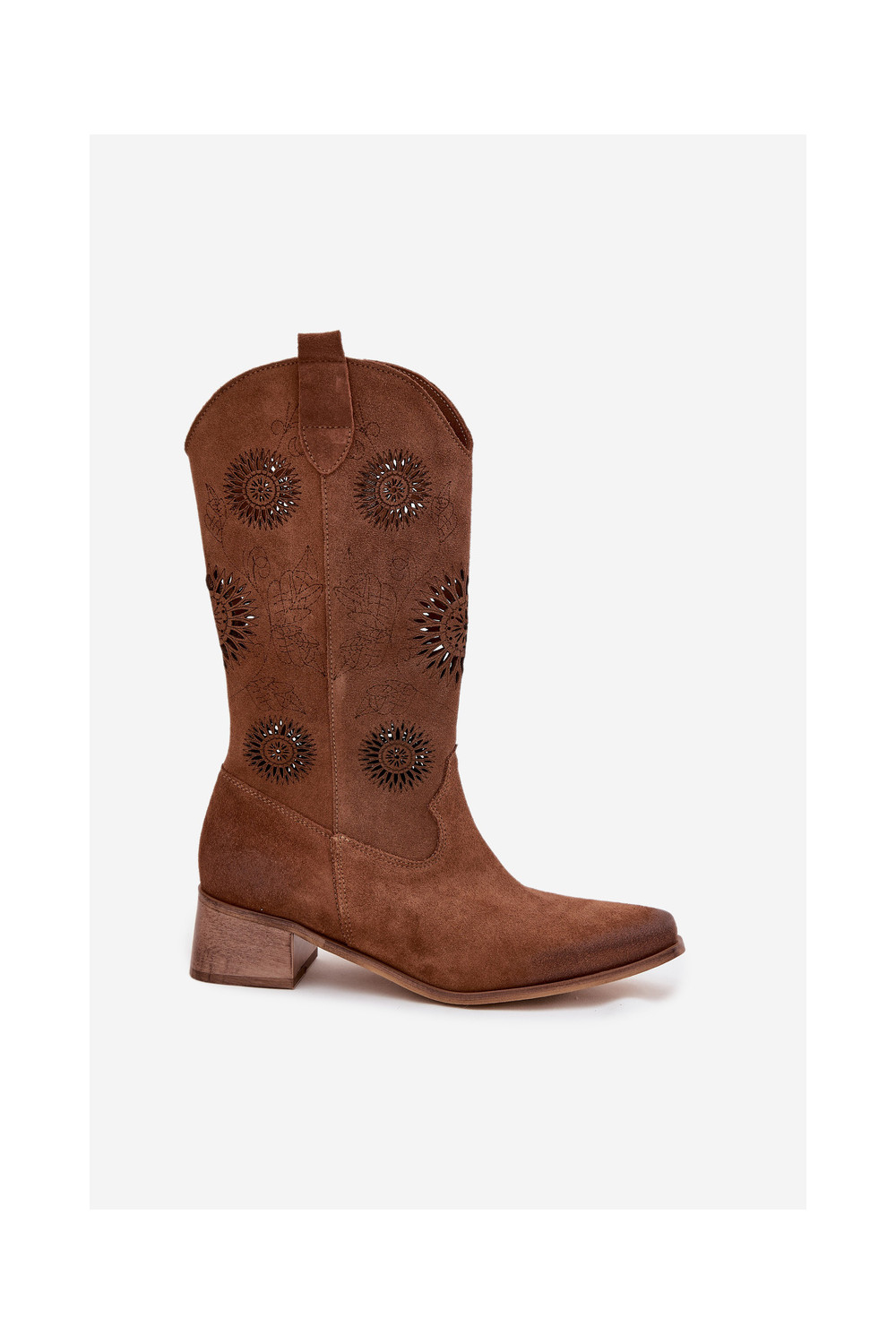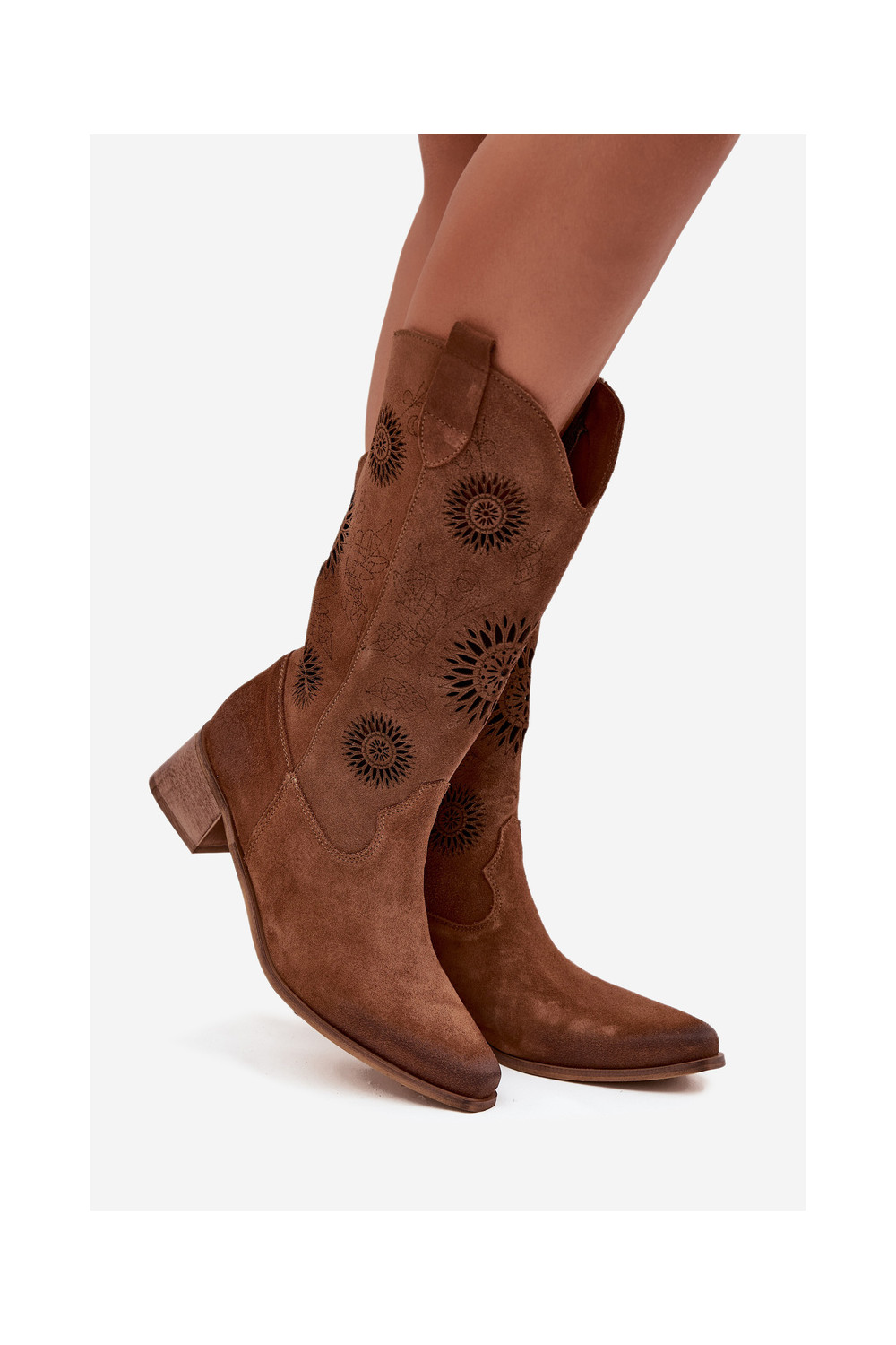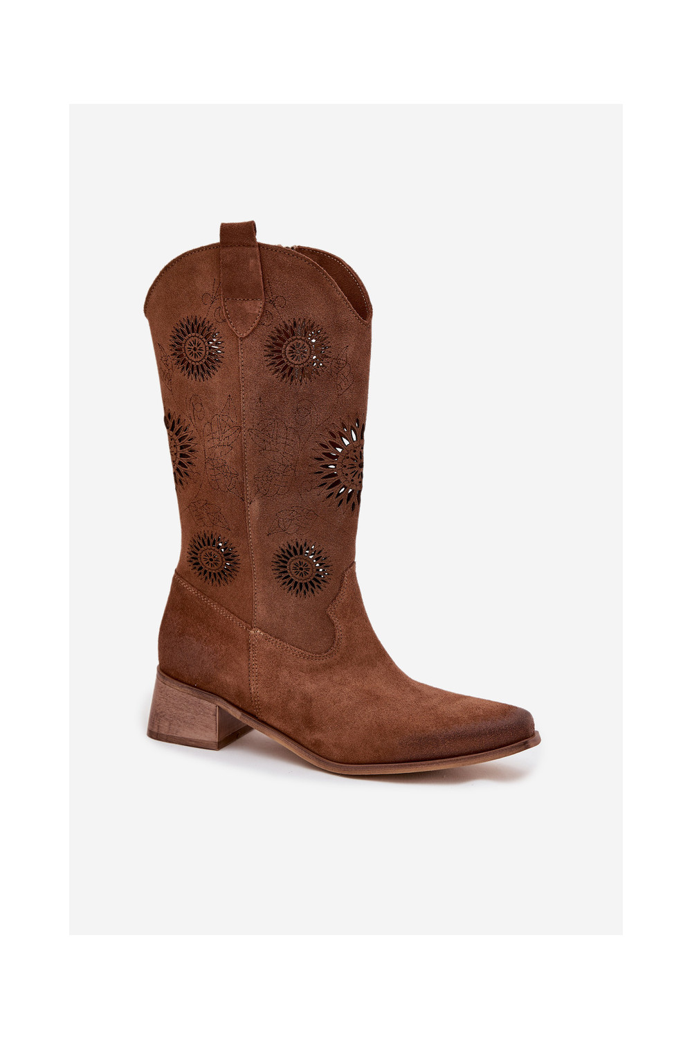 Moteriški ilgaauliai zomšiniai batai su ažūro elementais "Zazoo" 3793 rudos spalvos
