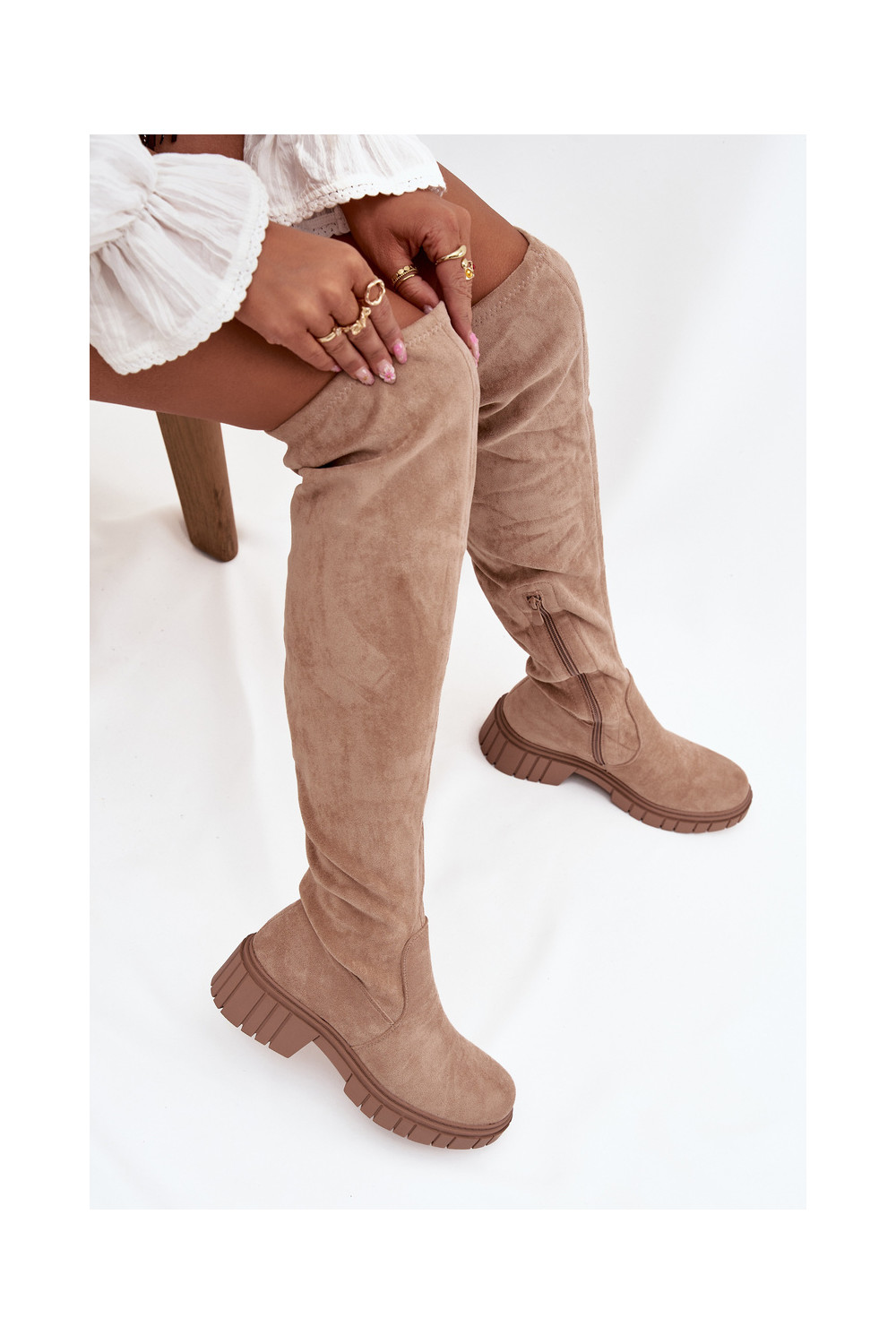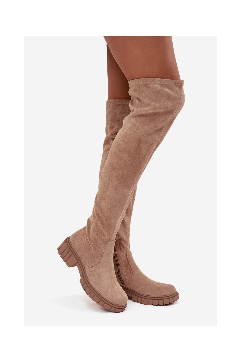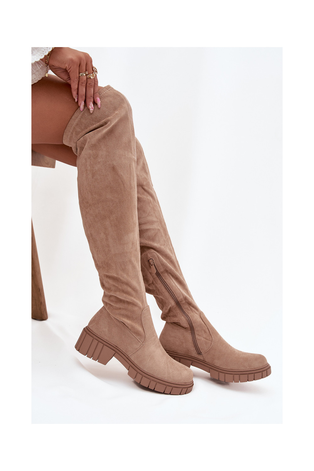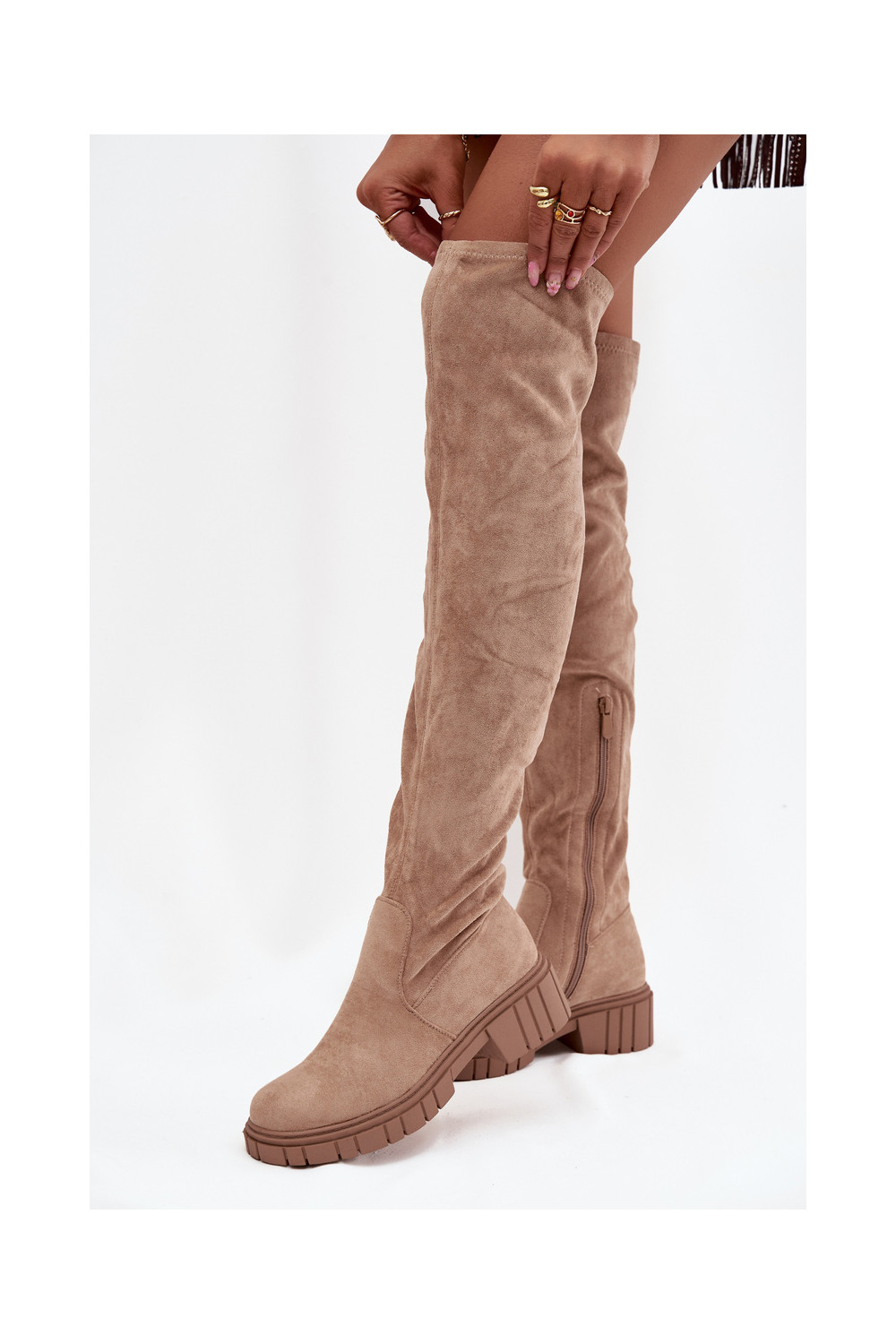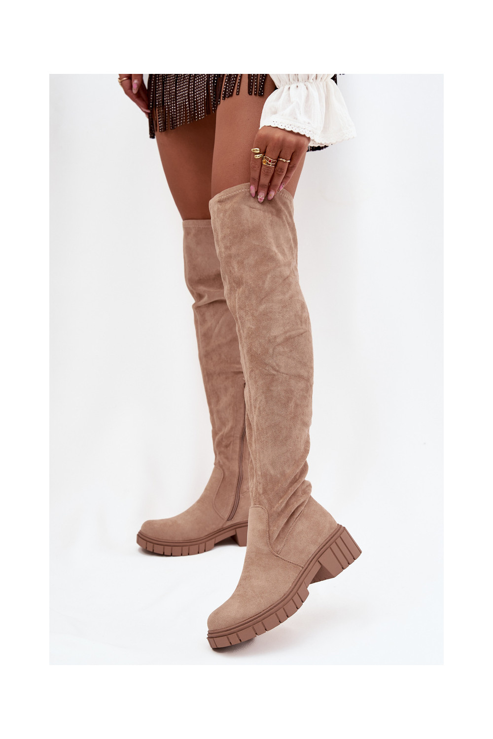Moteriški ilgaauliai batai virš kelių S.Barski HY42-122 smėlio spalvos