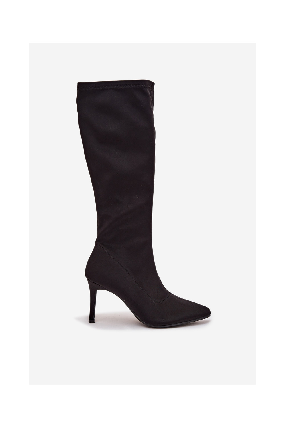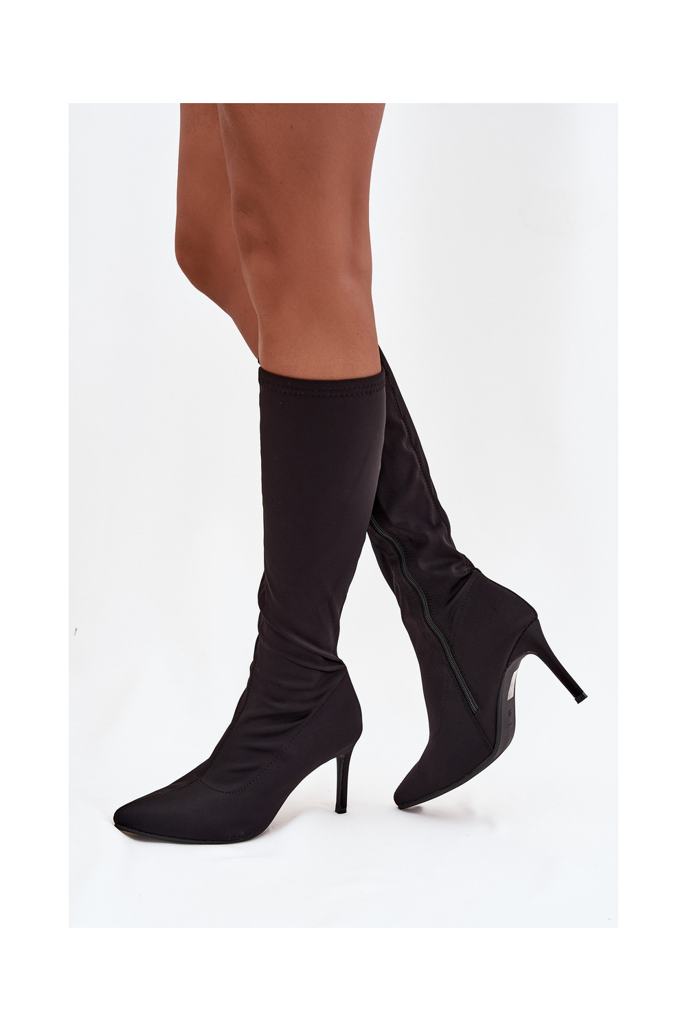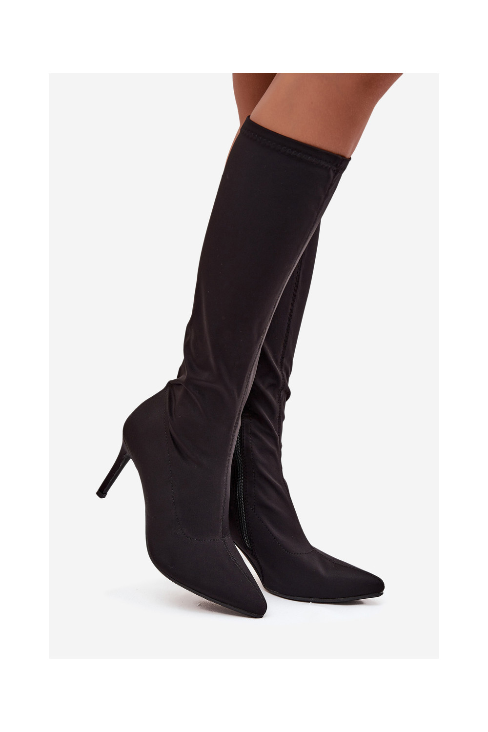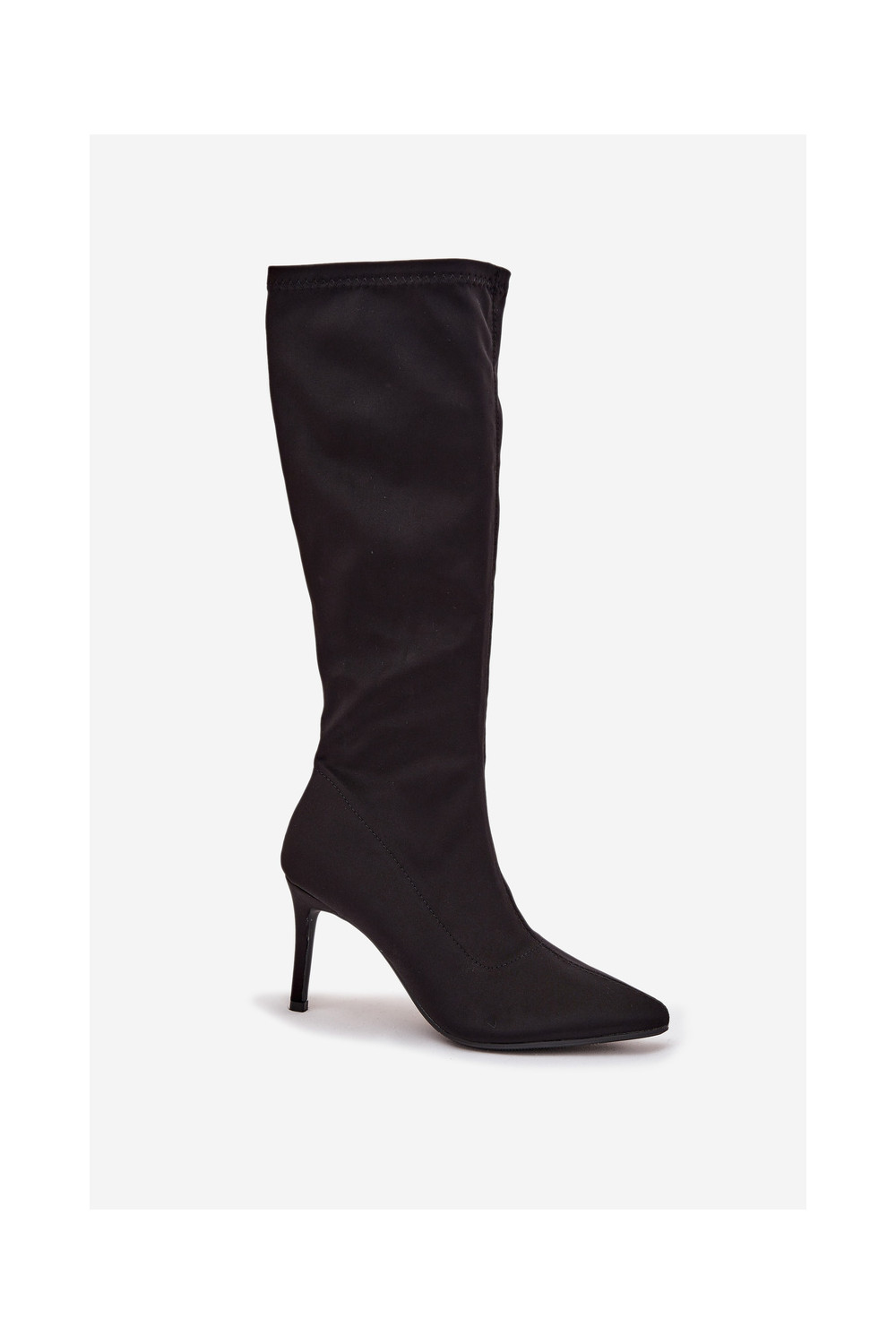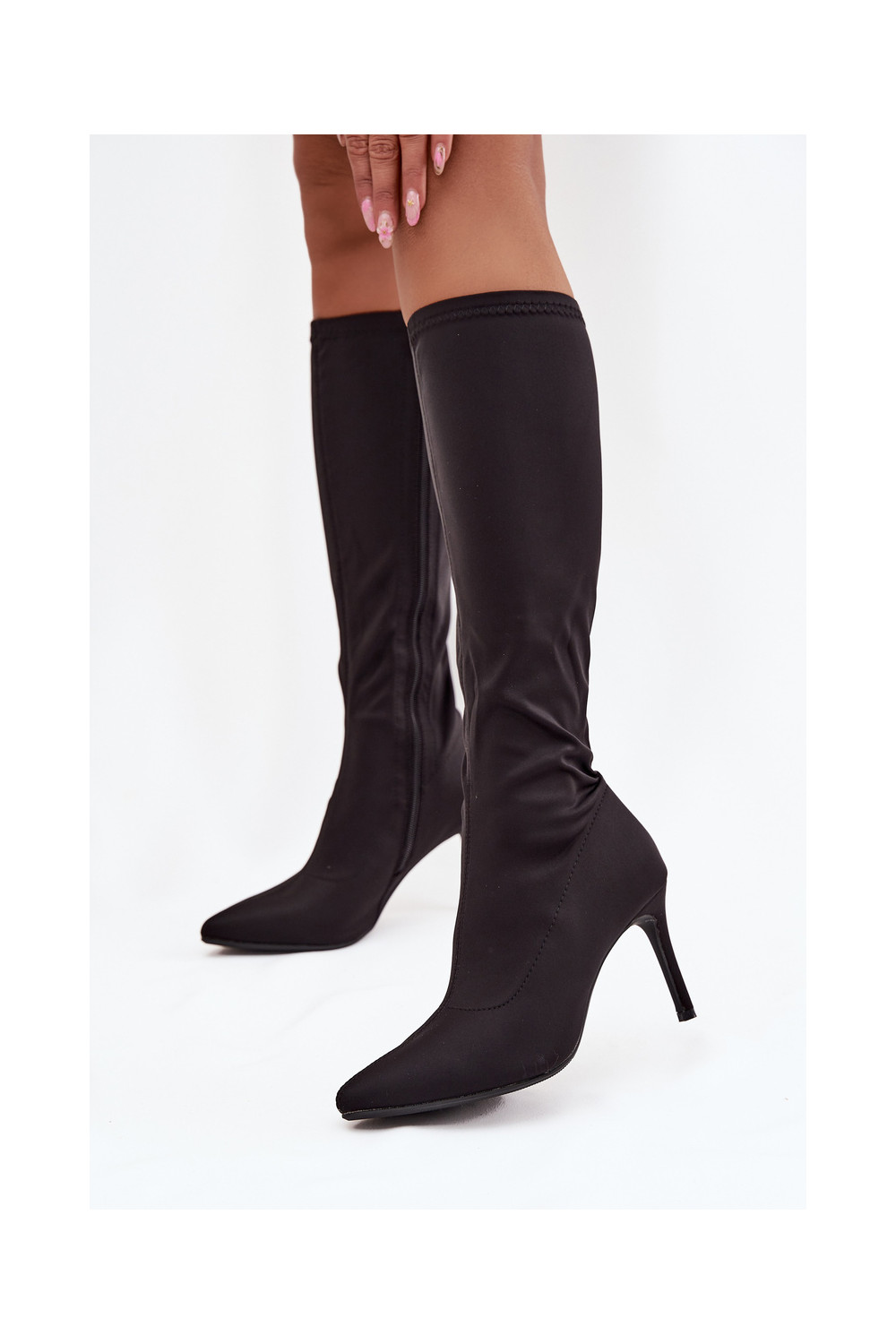 Moteriški ilgaauliai batai su plonais kulniukais S.Barski HY52-513 juodos spalvos