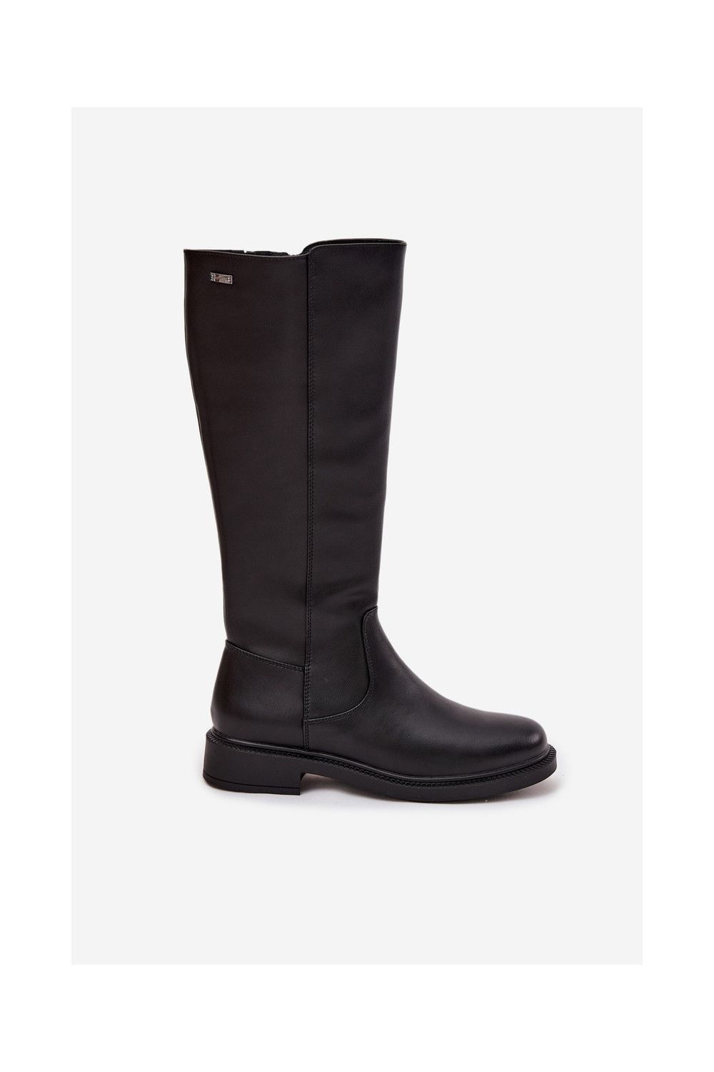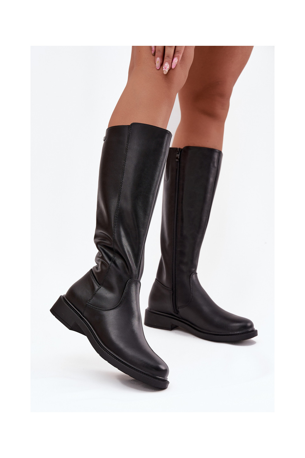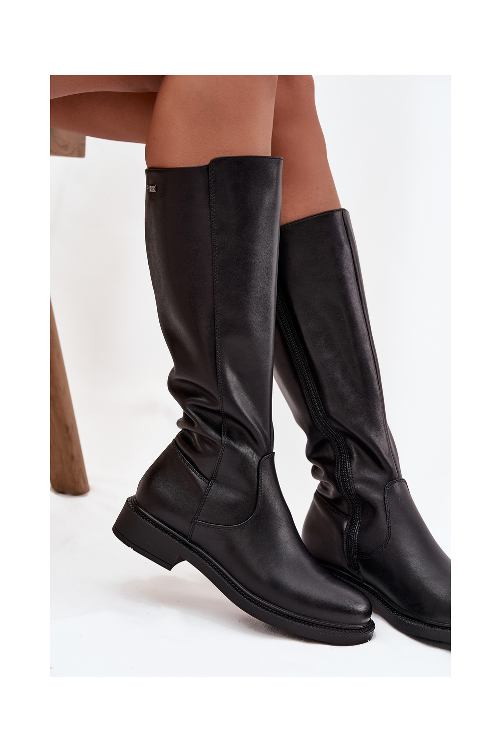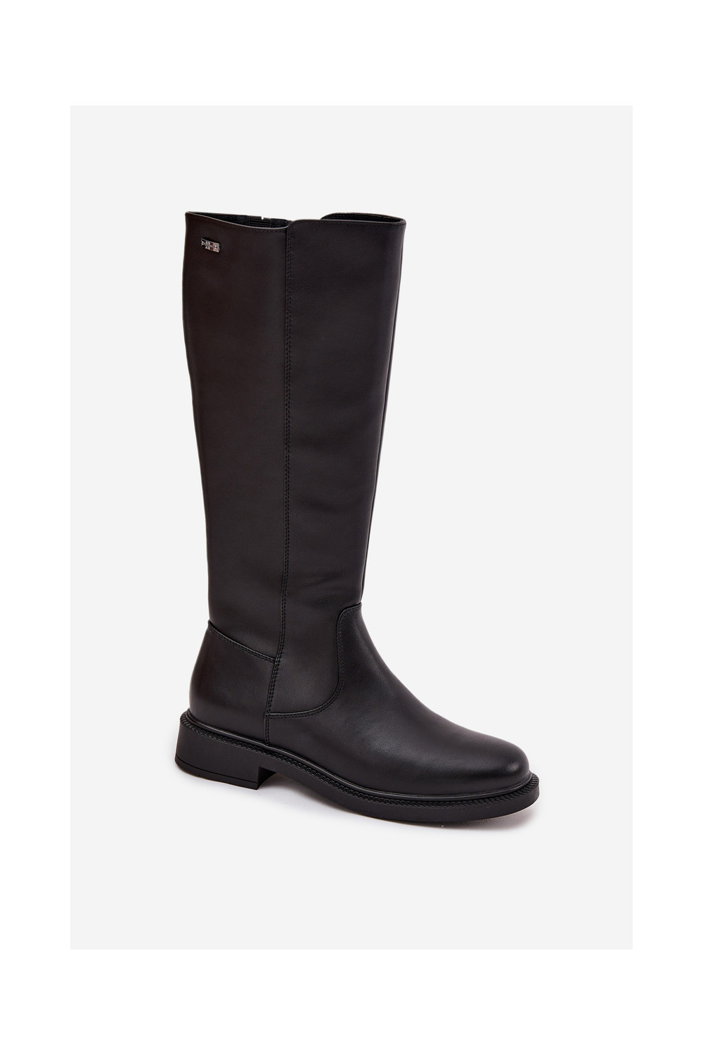 Odiniai šilti ilgaauliai batai su plačiais kulniukais Sergio Leone KZ25600-S juodos spalvos