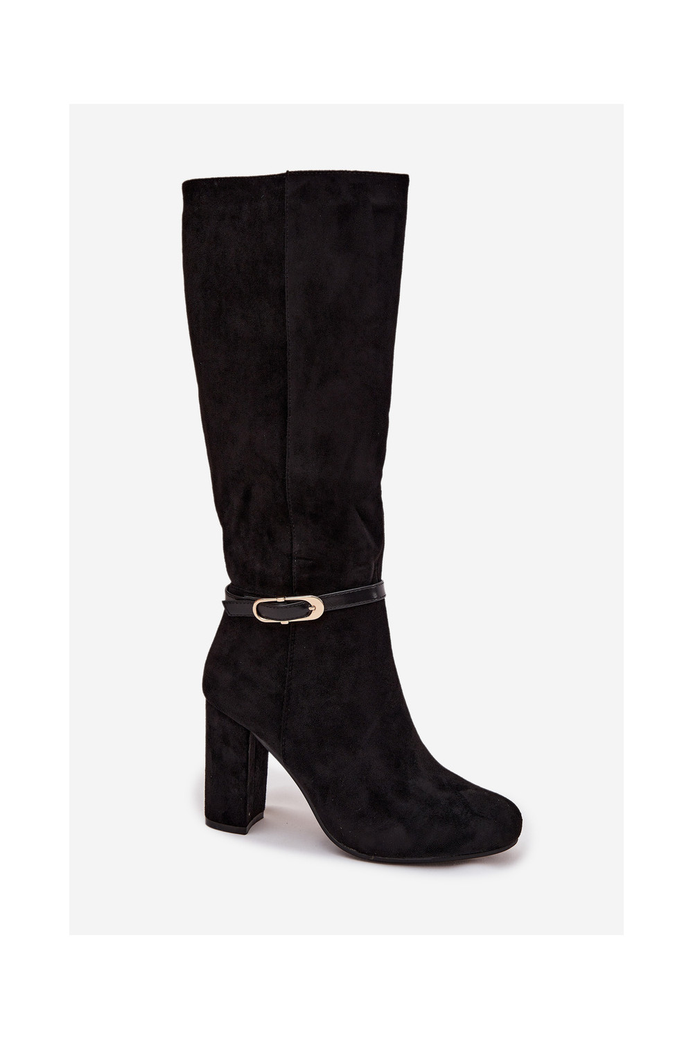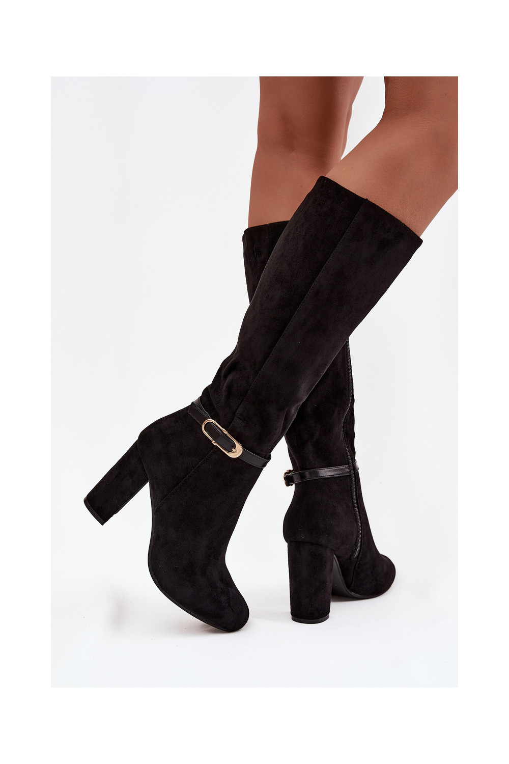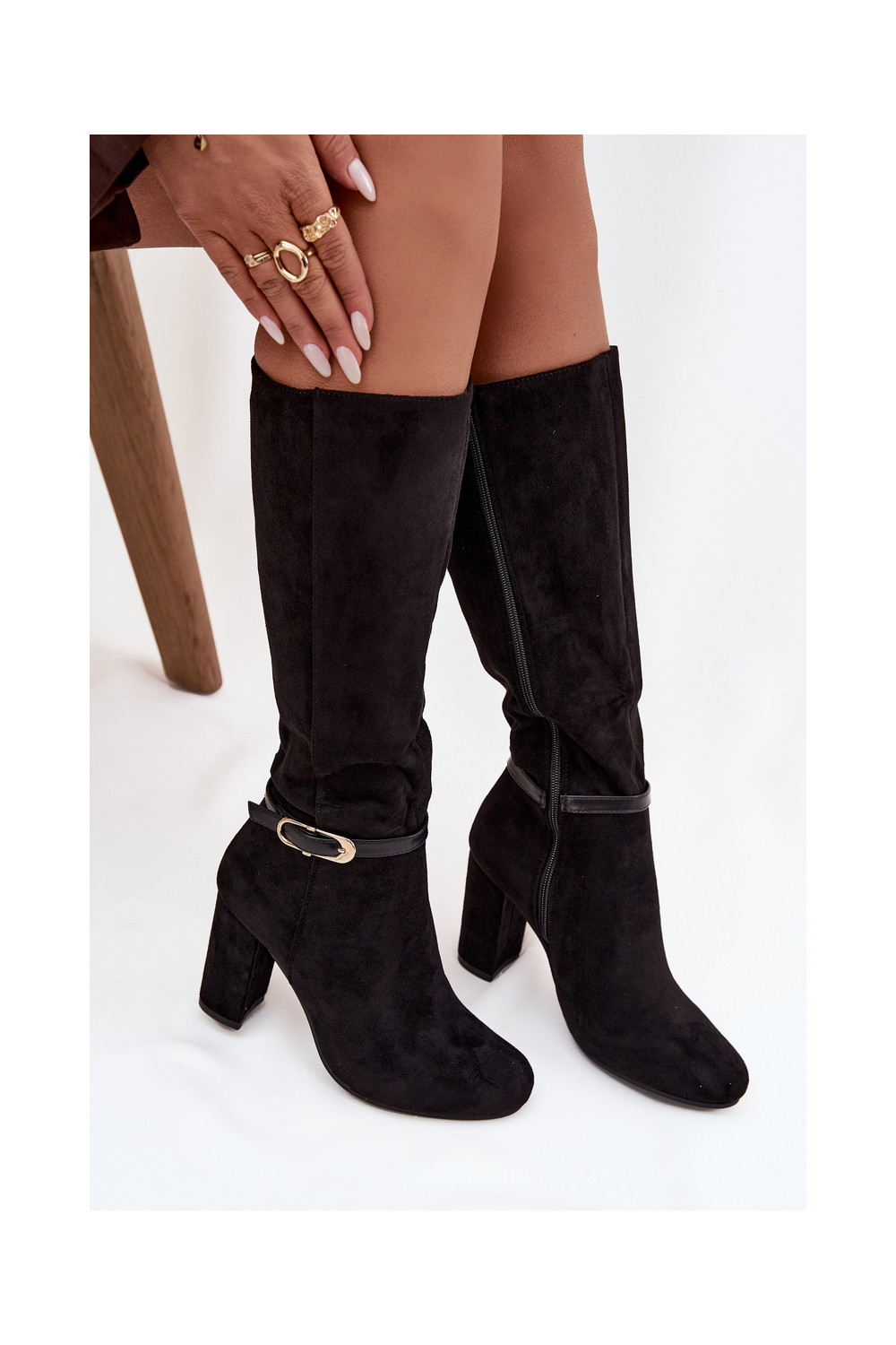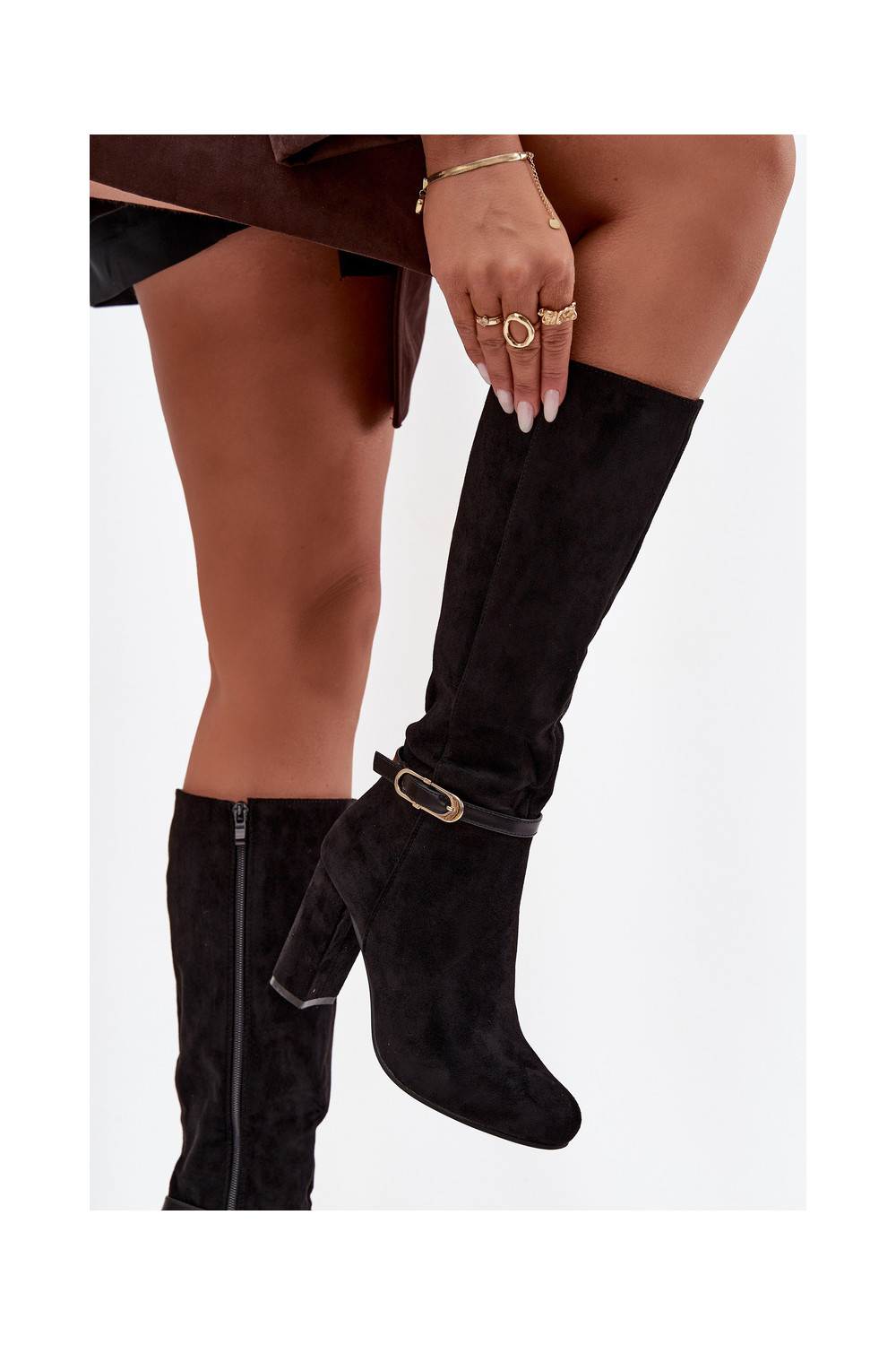 moteriški ilgaauliai batai su kulniukais su aukso spalvos sagtimis pašiltinti Juodos spalvos Seraphine