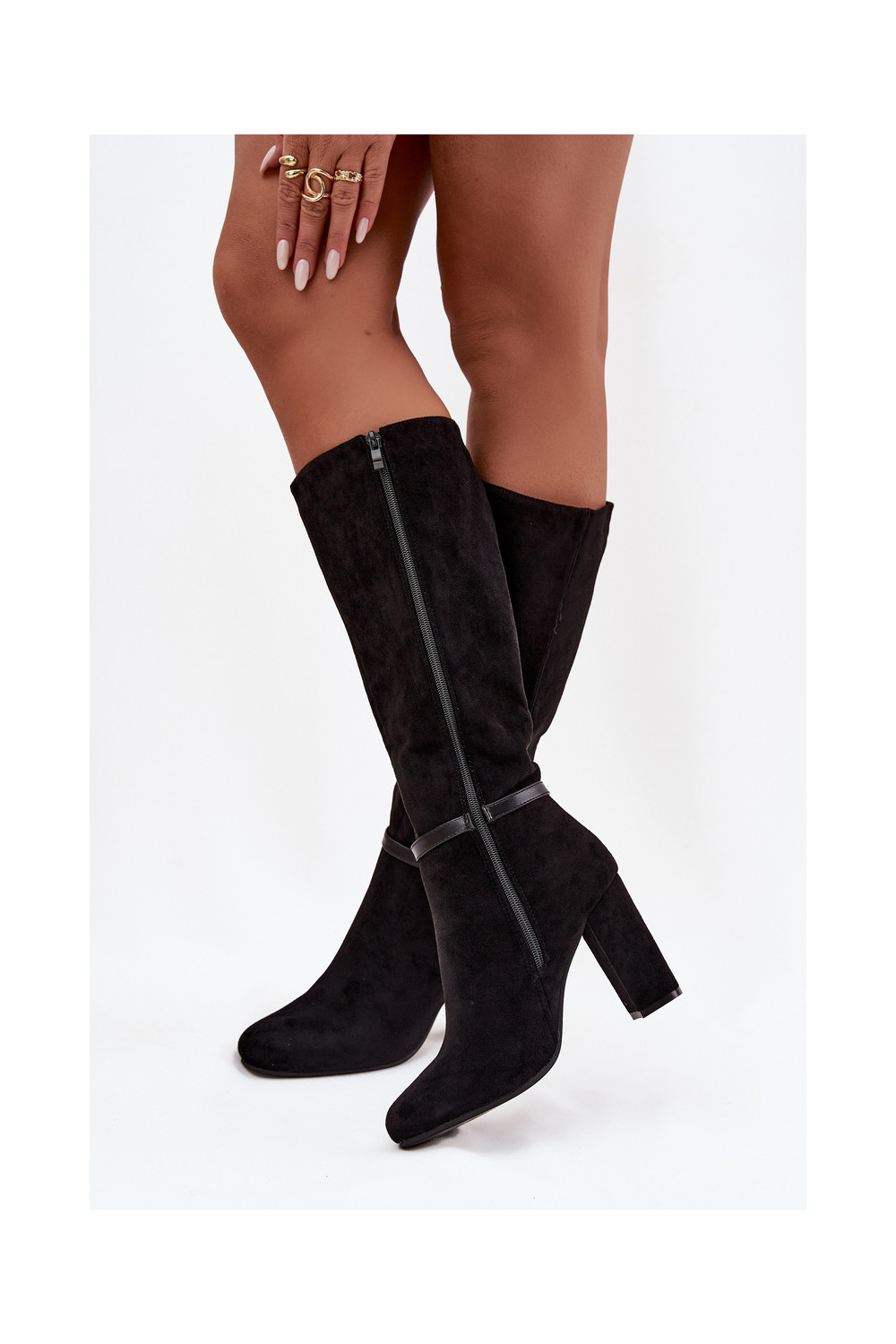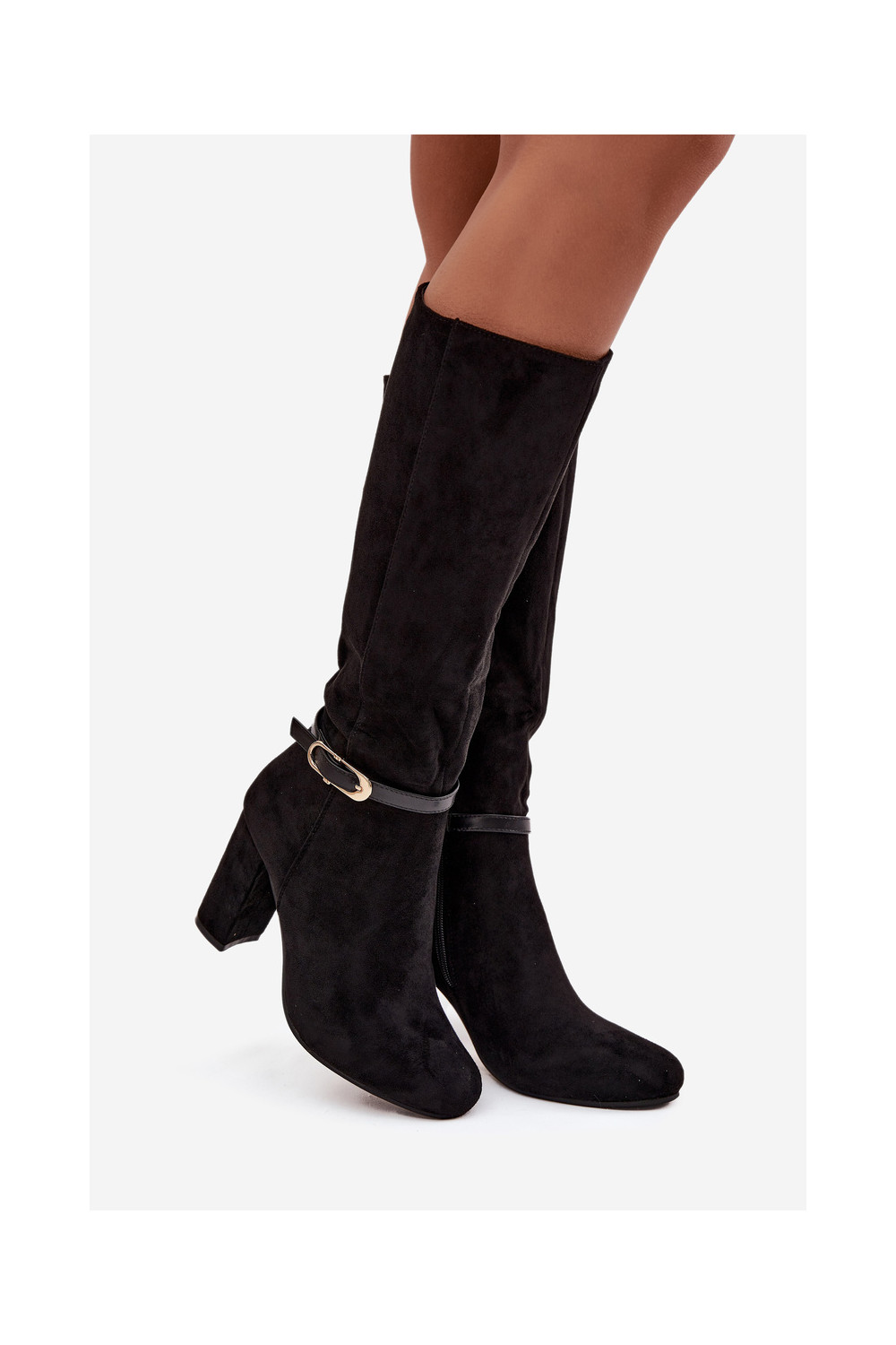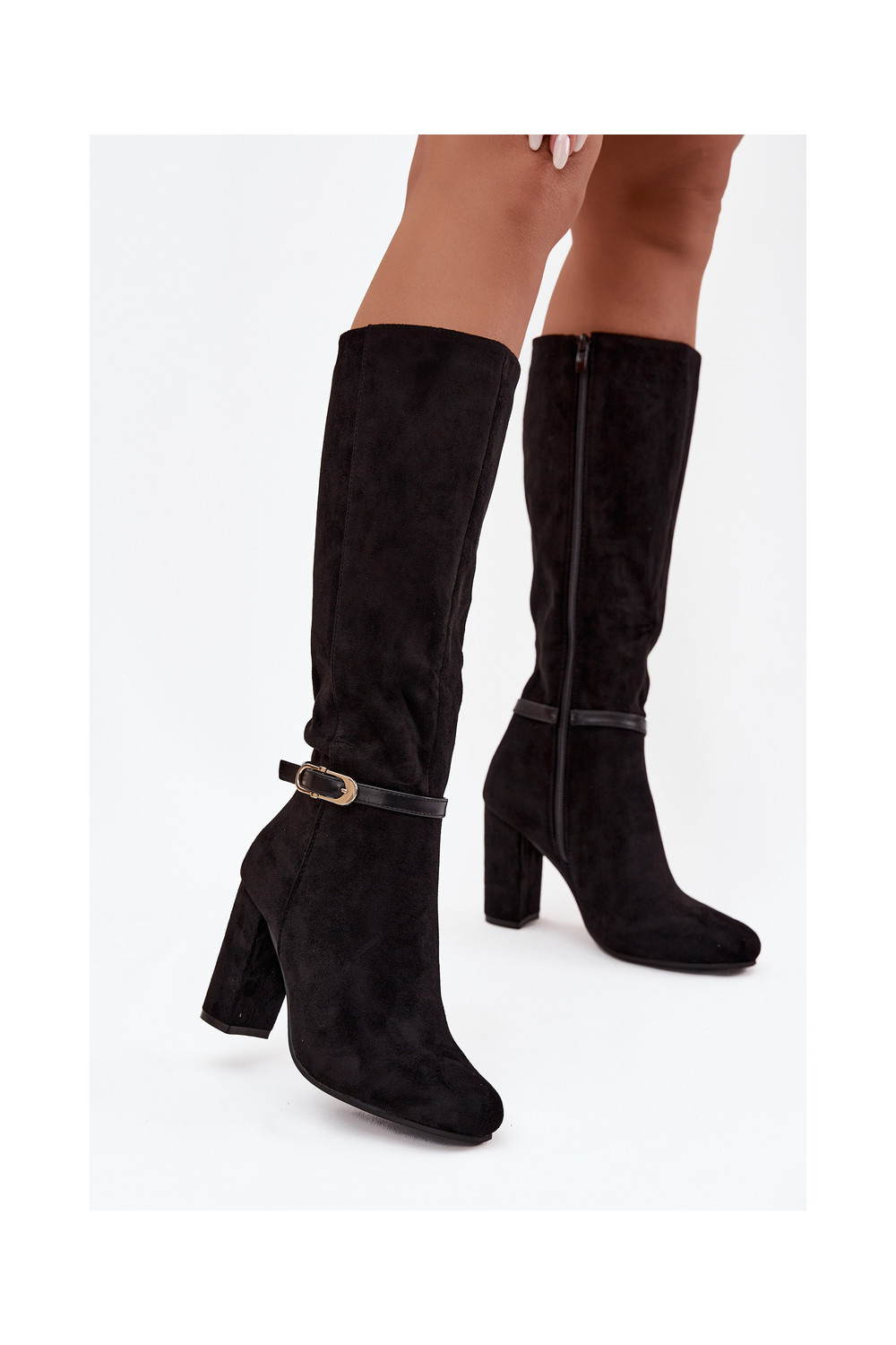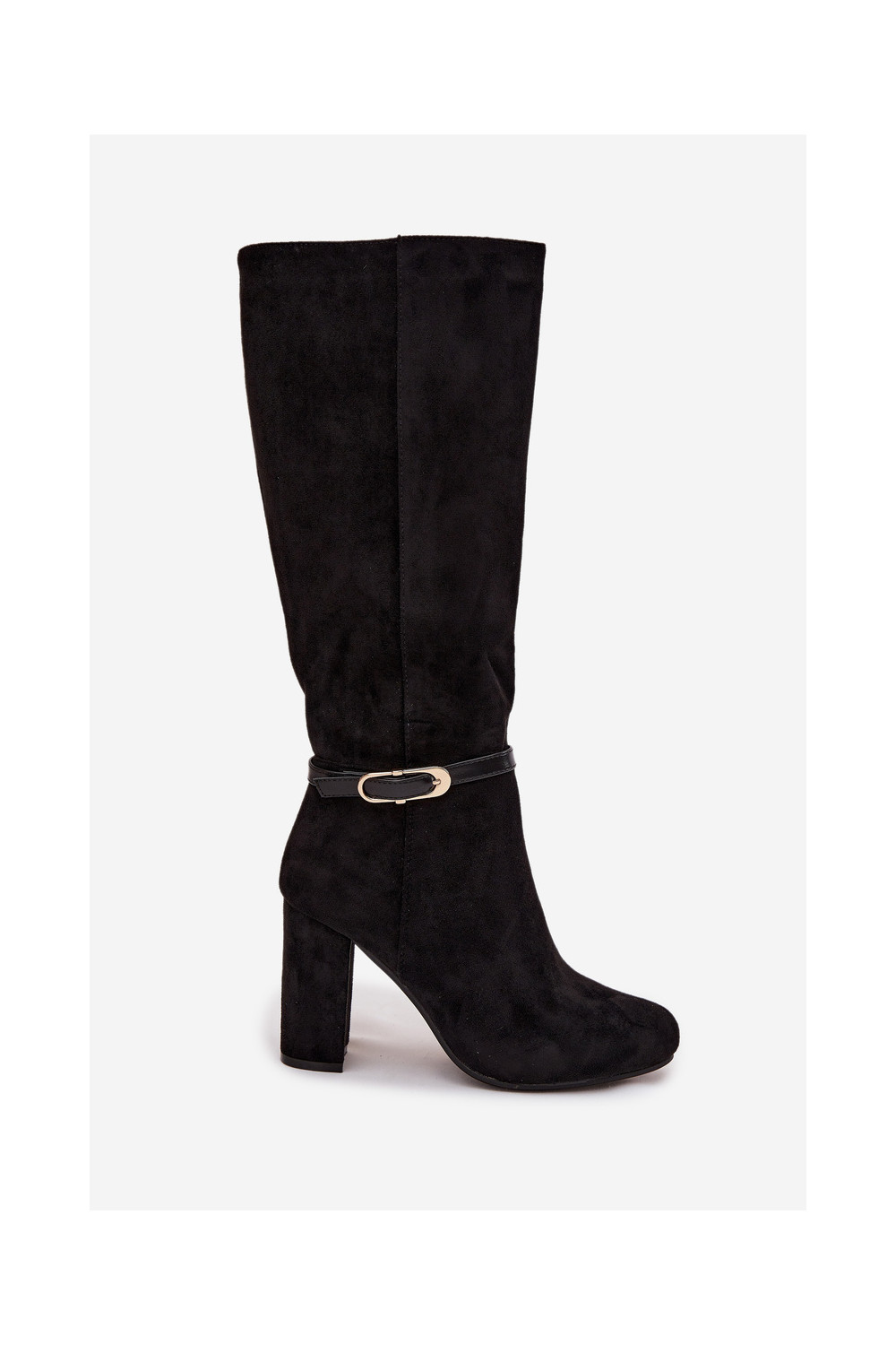 moteriški ilgaauliai batai su kulniukais su aukso spalvos sagtimis pašiltinti Juodos spalvos Seraphine