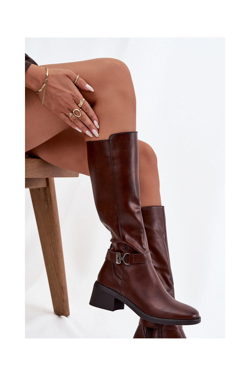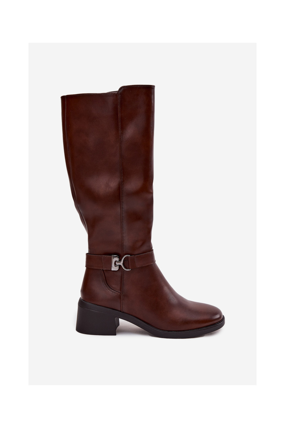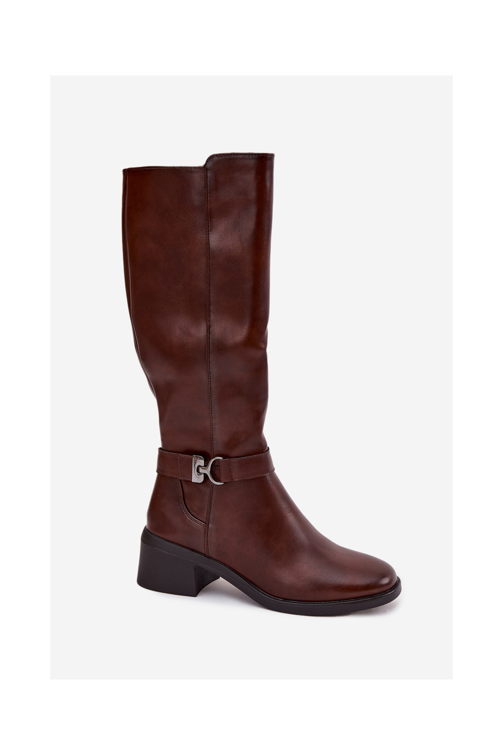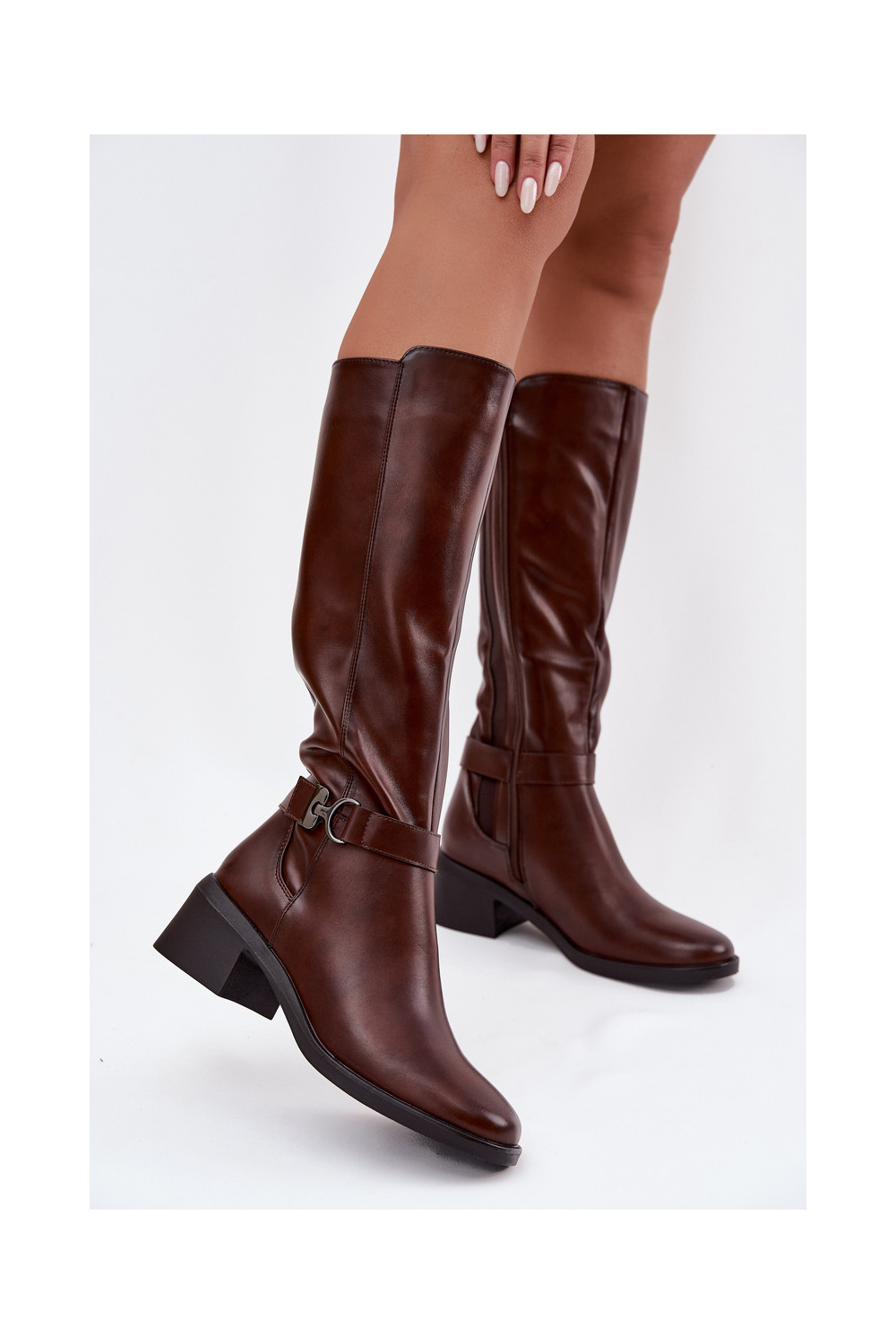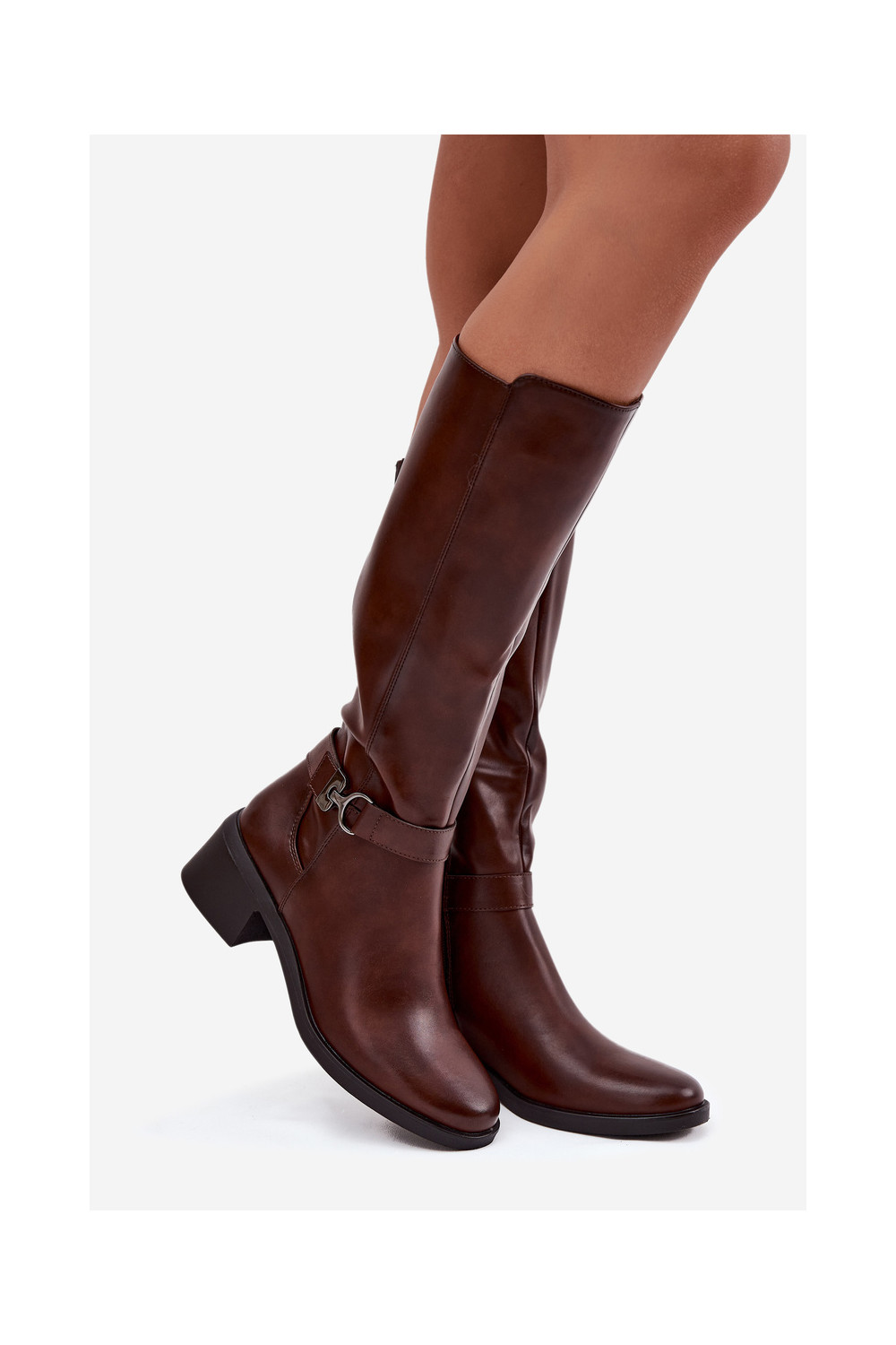 pašiltinti moteriški ilgaauliai batai  su dirželiais Sergio Leone KZ25826 rudos spalvos