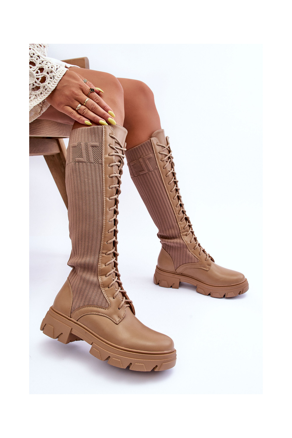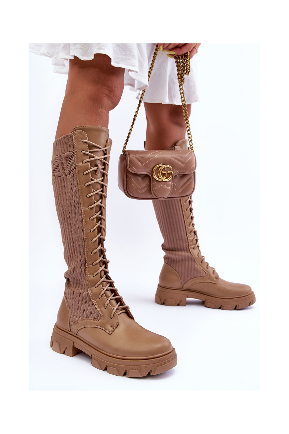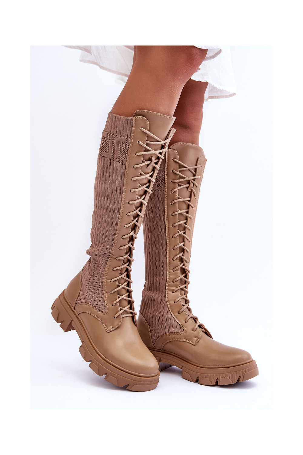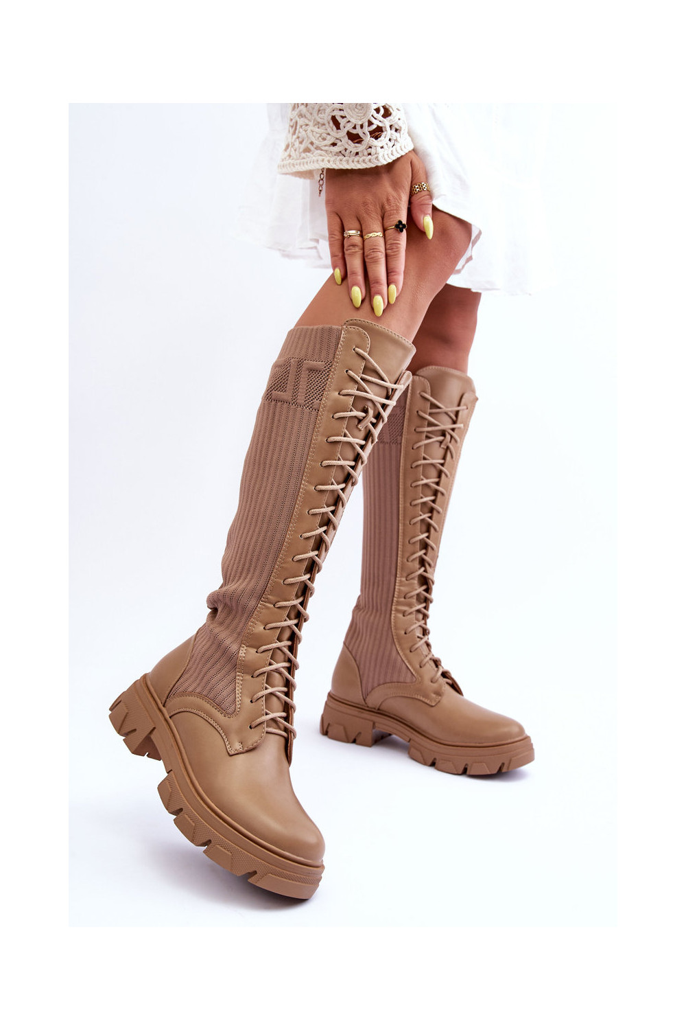 ilgaauliai batai su plačiais kulniukais su kojinės tipo auliuku smėlio spalvos Itona