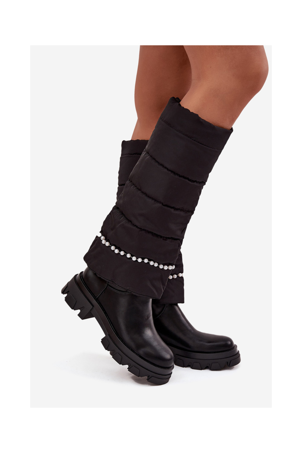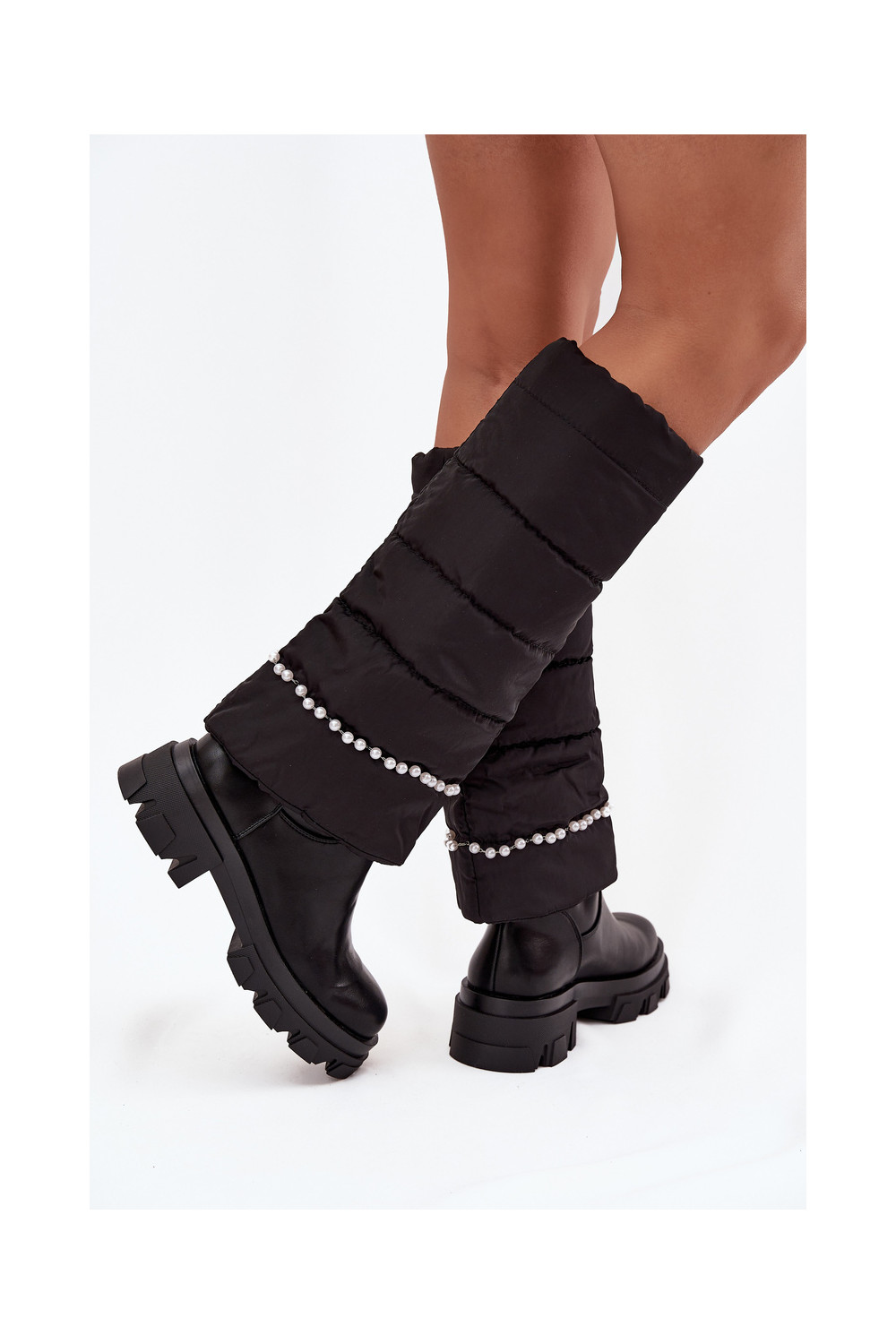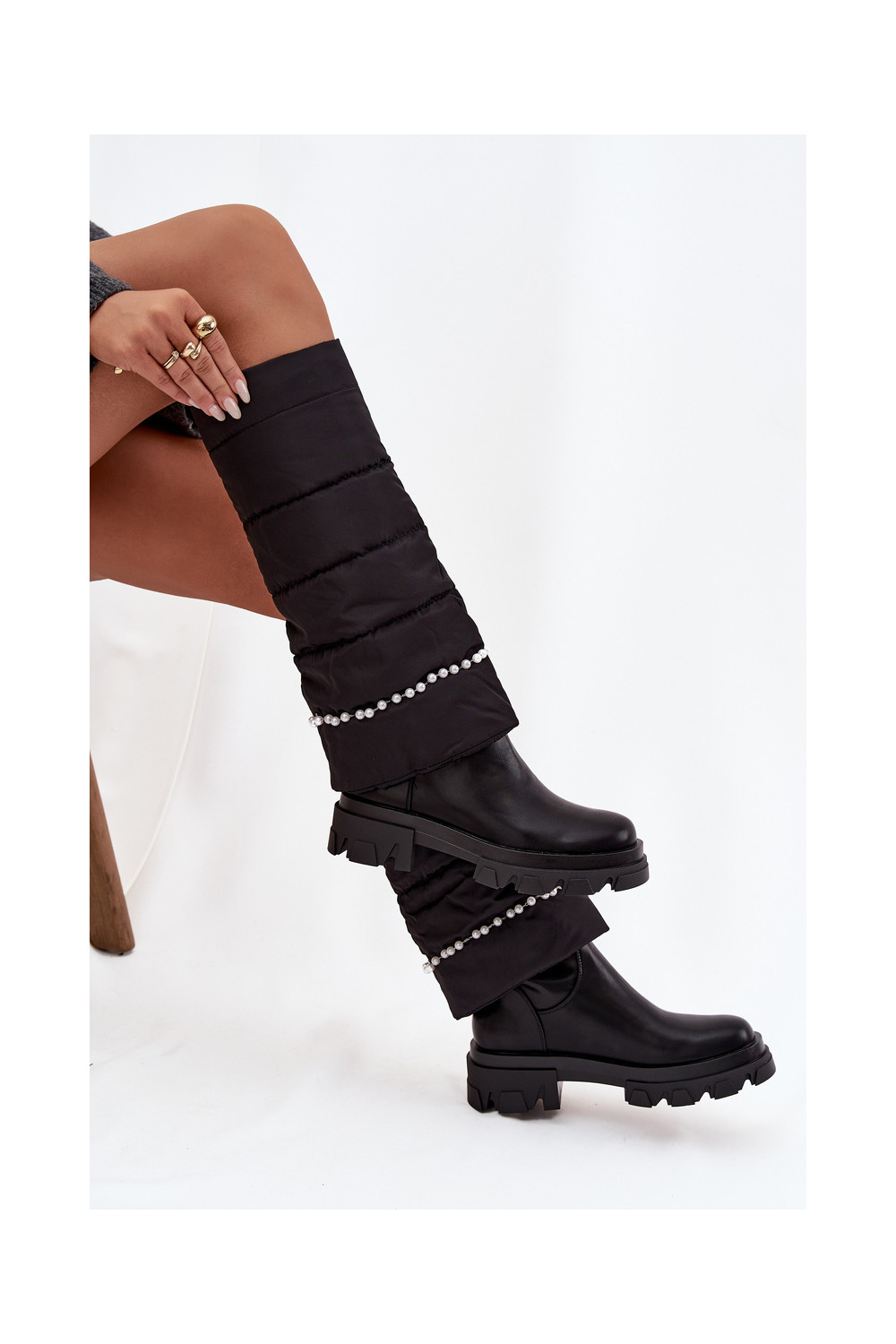 Šilti ilgaauliai batai su karoliukais juodos spalvos Irvette