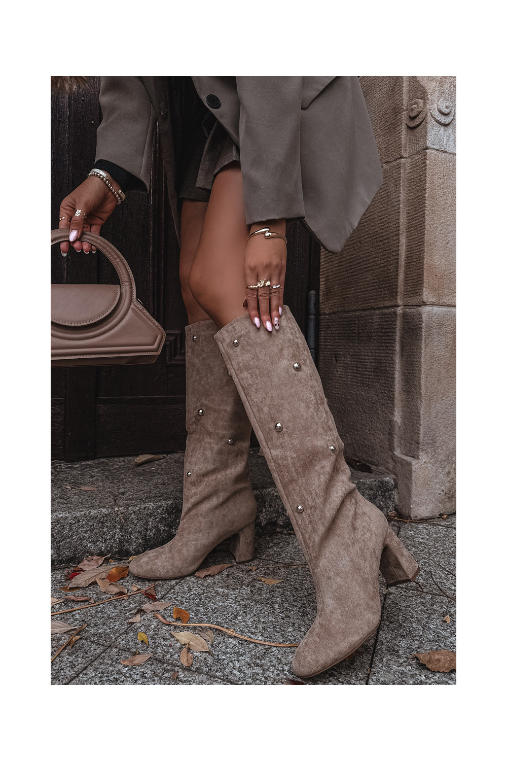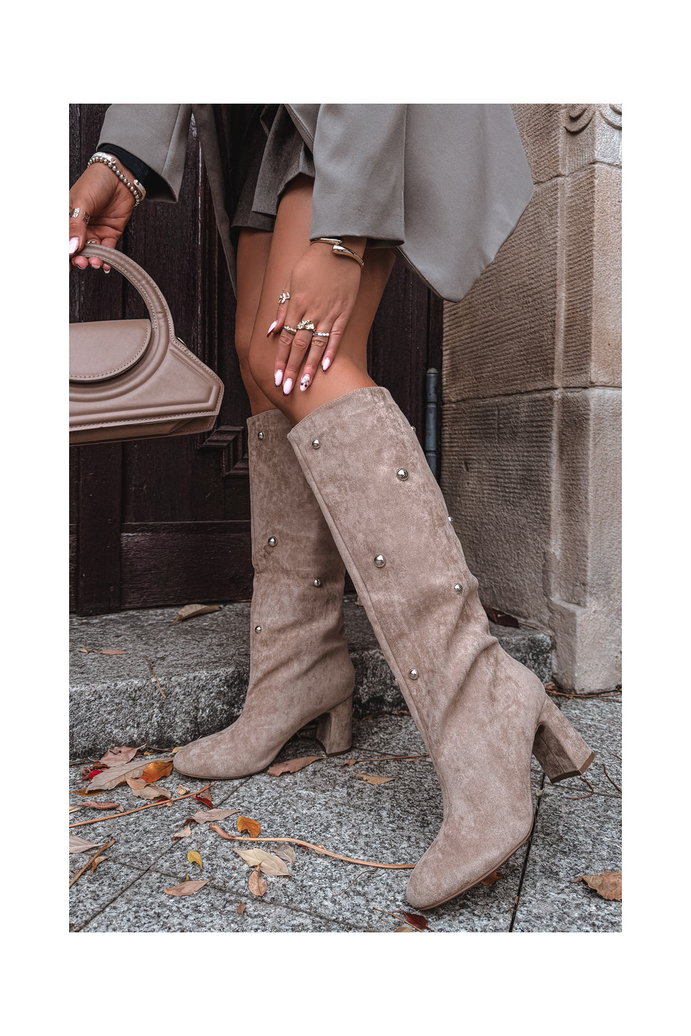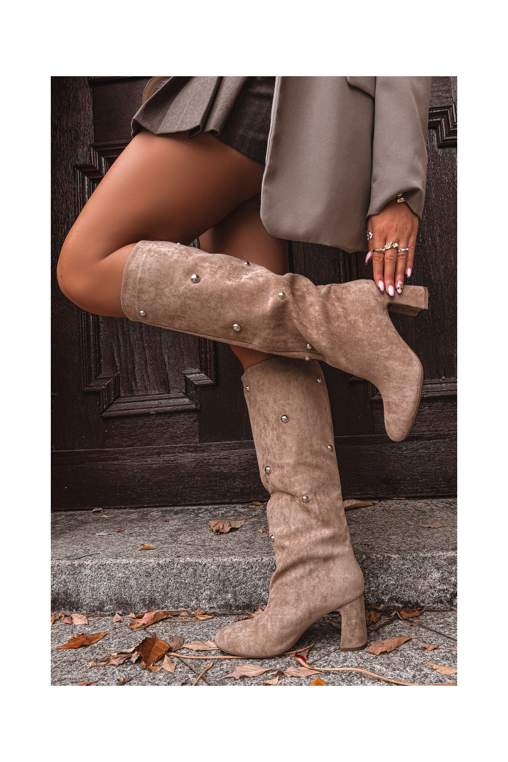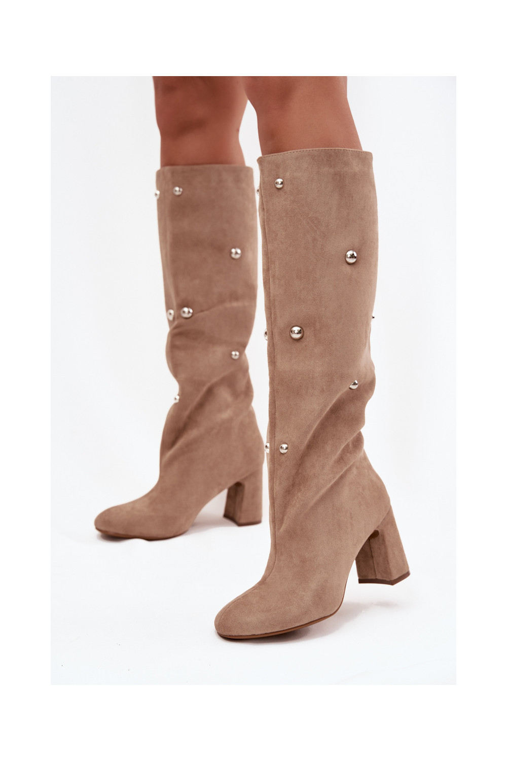 Šilti ilgaauliai batai su kulniukais Su puošniaisi Detalami smėlio spalvos Lucinda