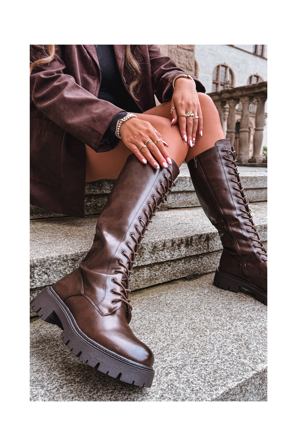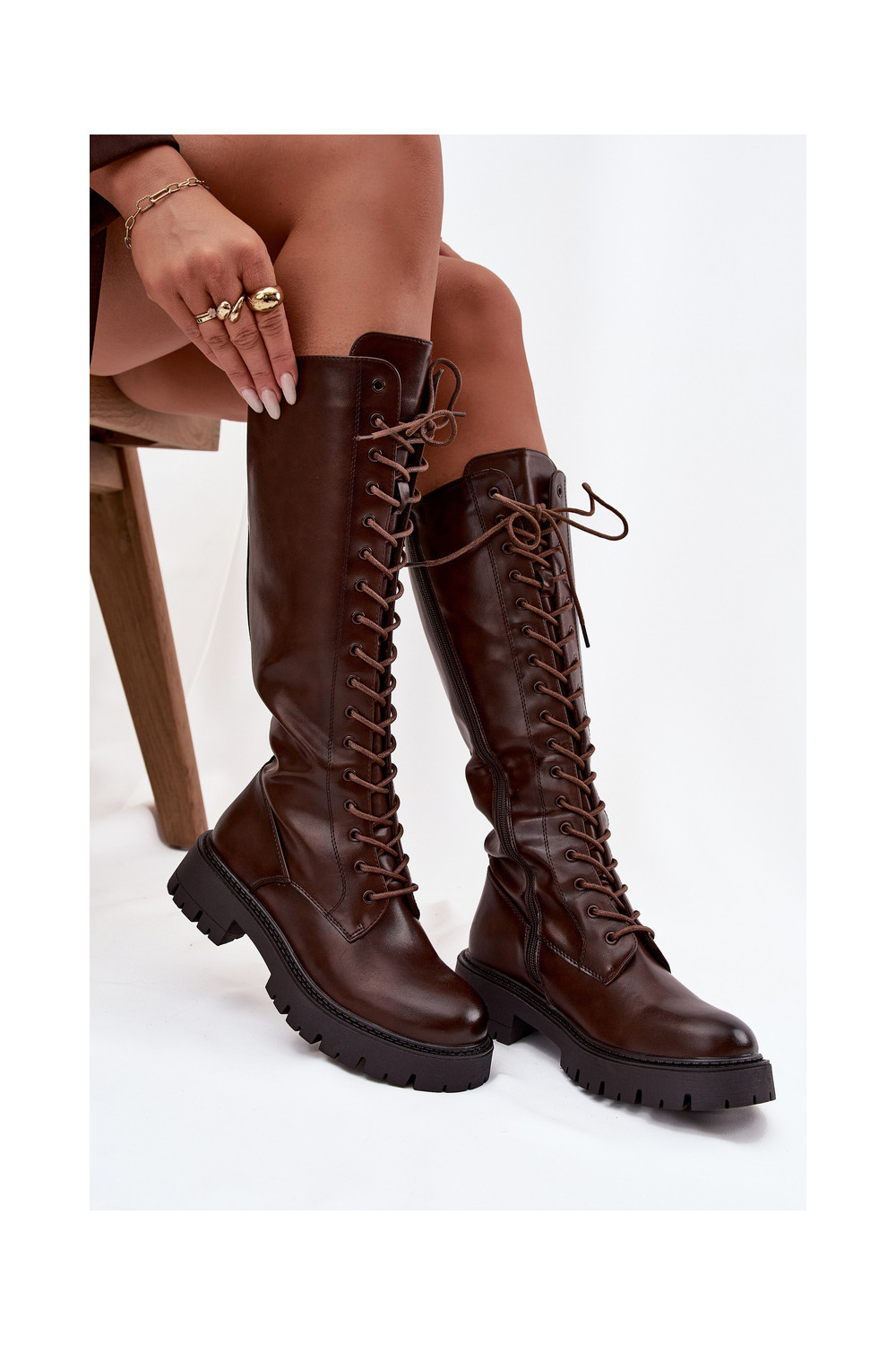 pašiltinti su raišteliais moteriški ilgaauliai batai CzekoladoĮe Meliora