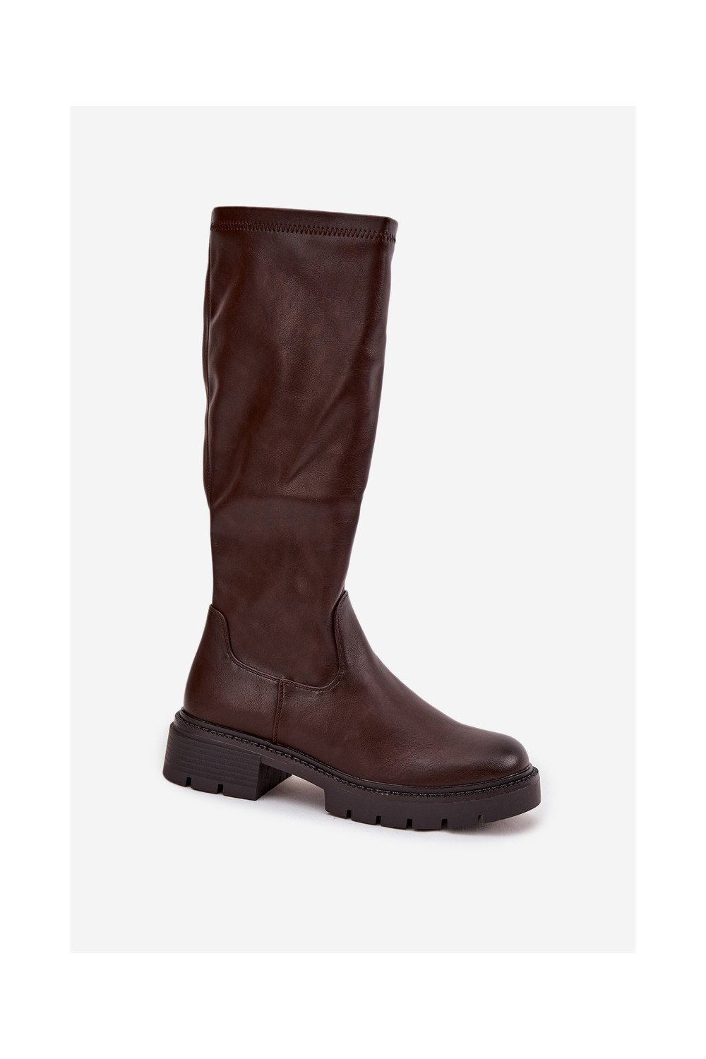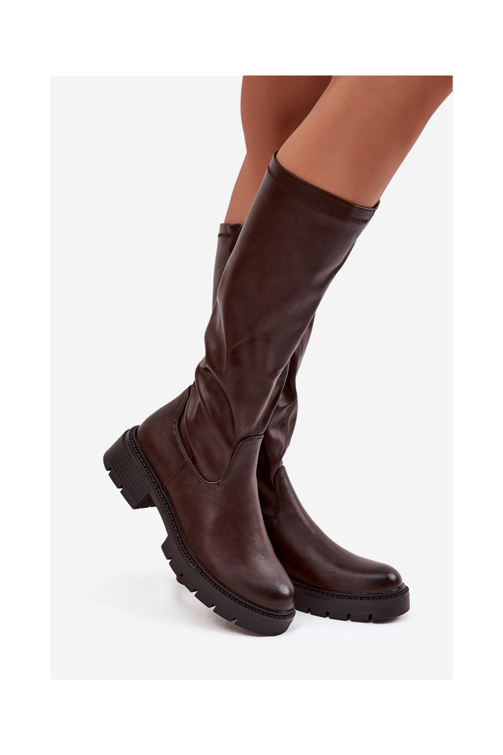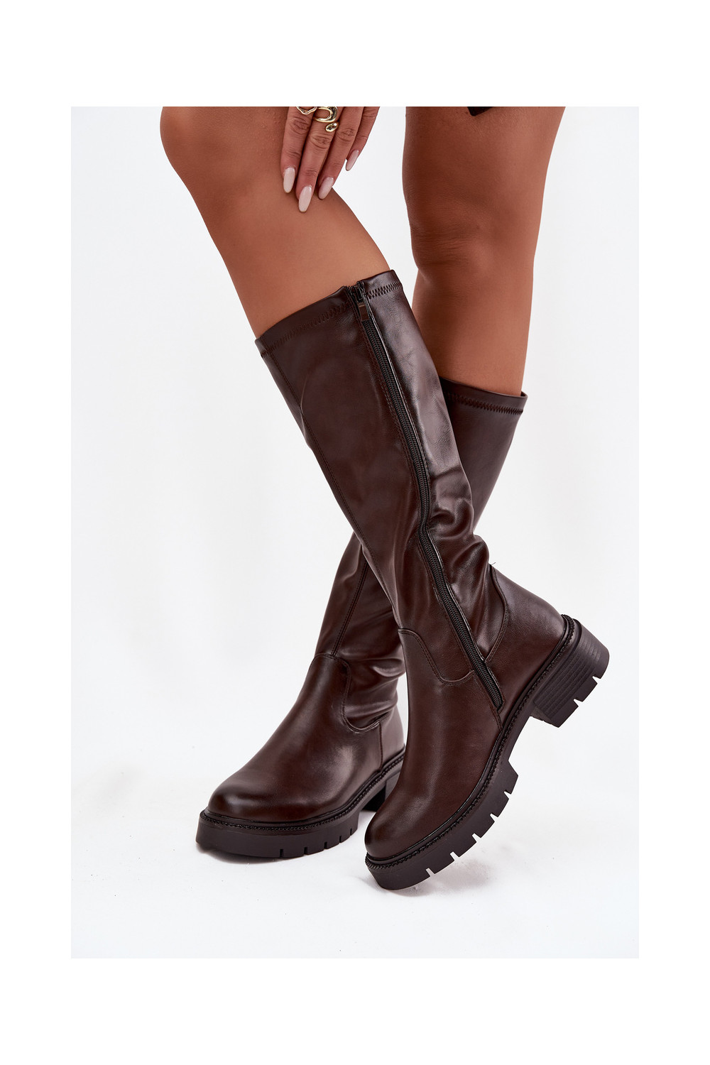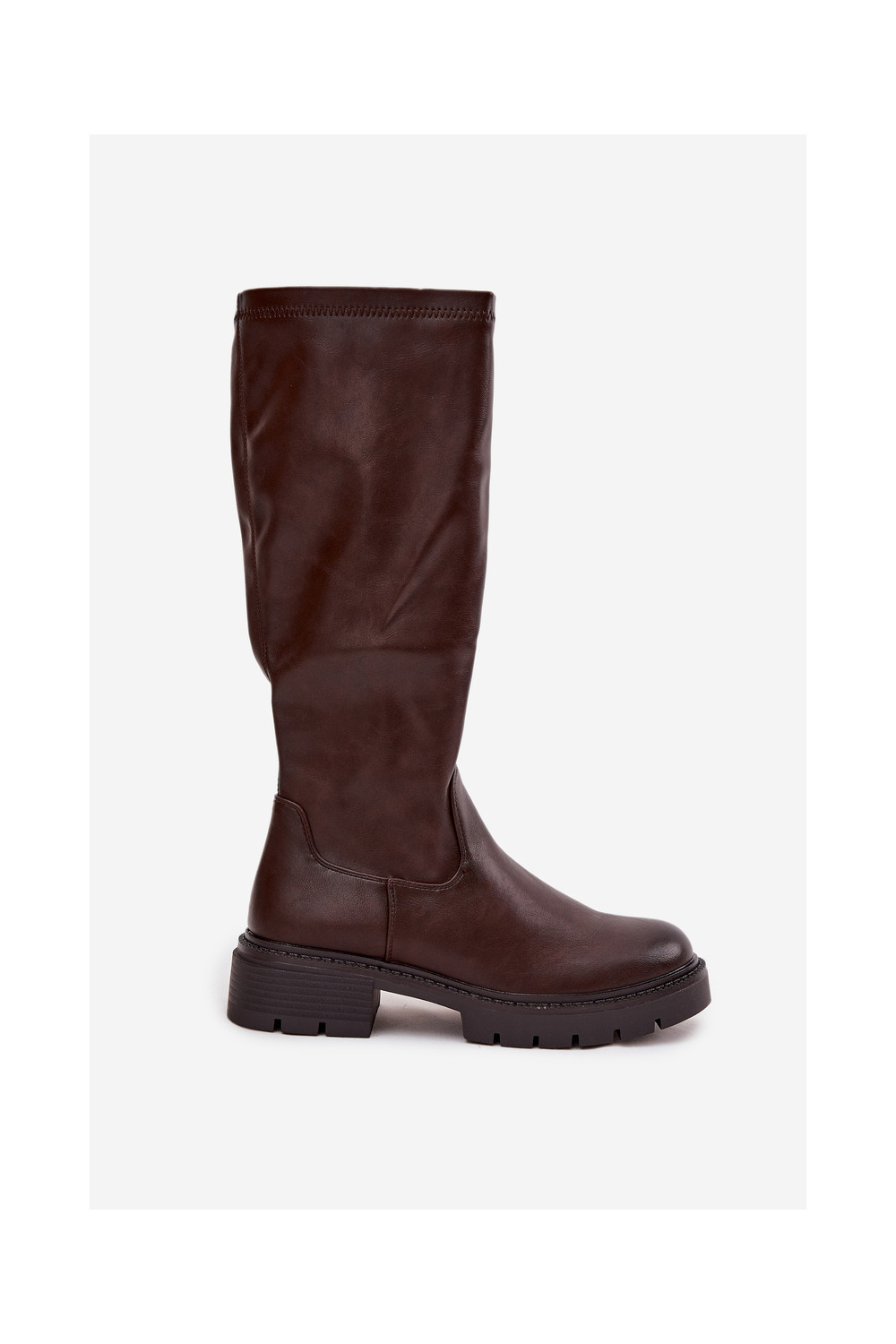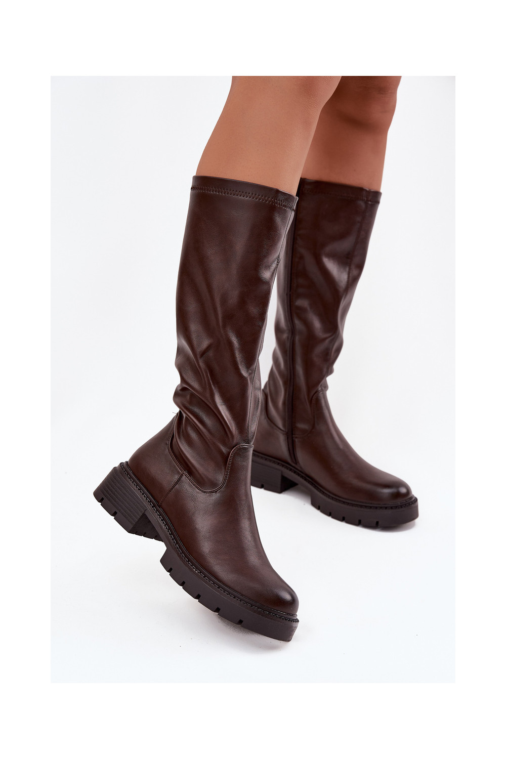 moteriški ilgaauliai batai iš eko odos CzekoladoĮe Oceana
