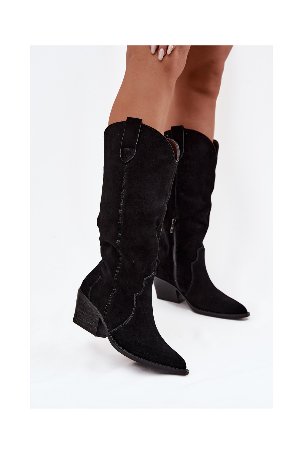 Oda iš zomšos ilgaauliai batai kaubojiško stiliaus Moteriškas pašiltinti juodos spalvos Urselle