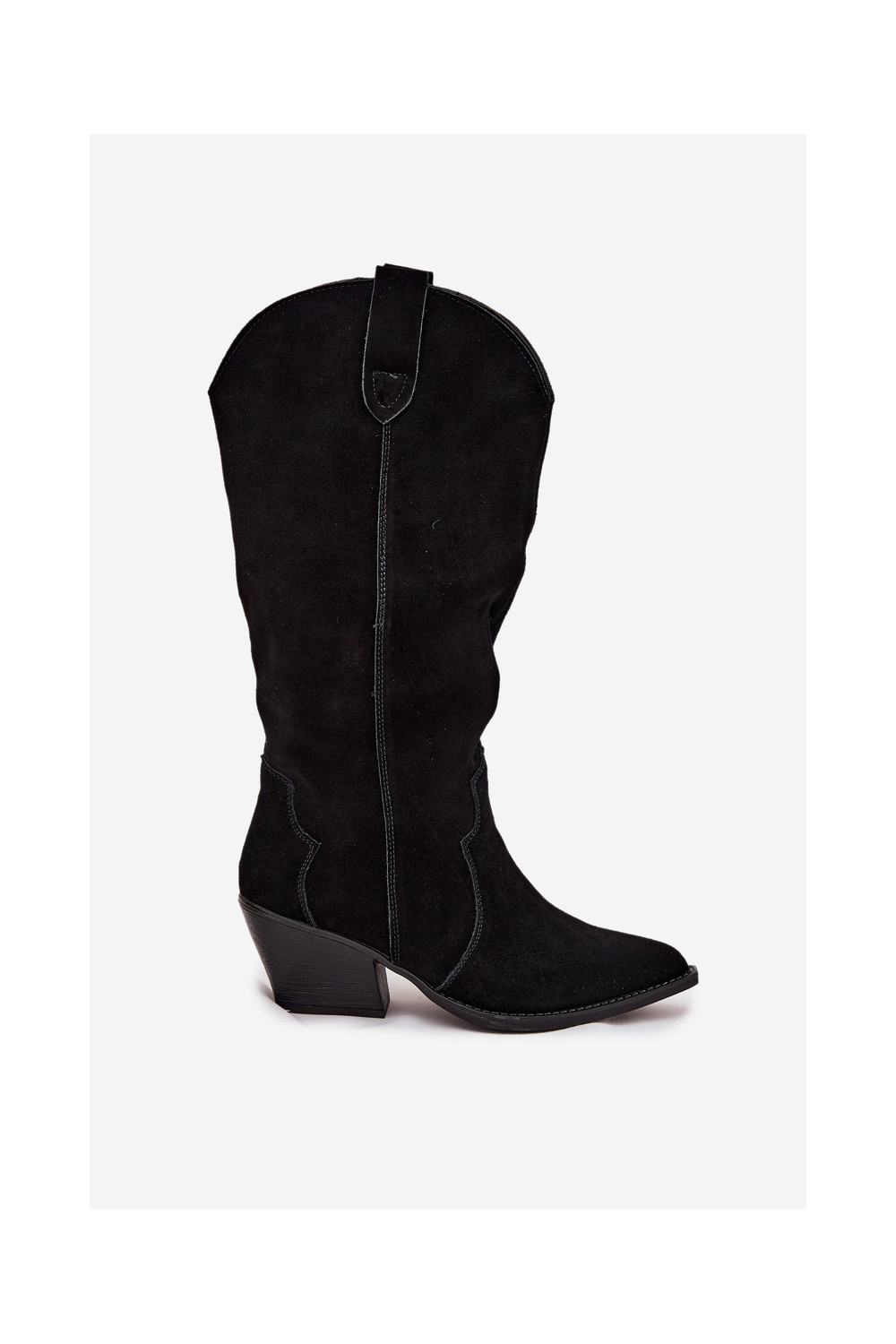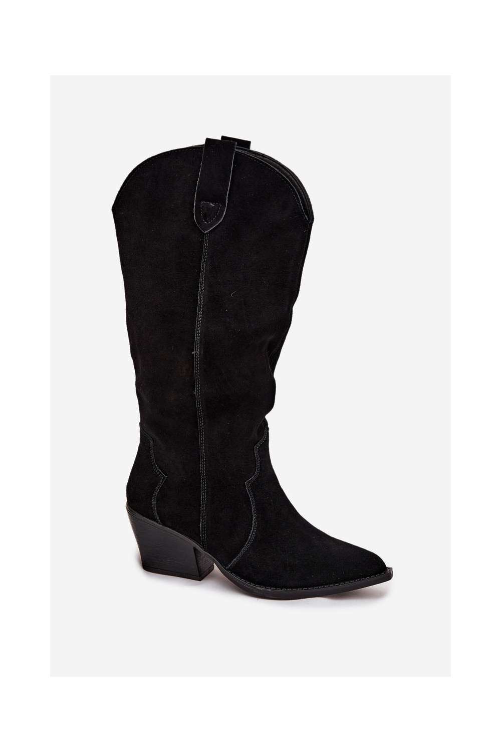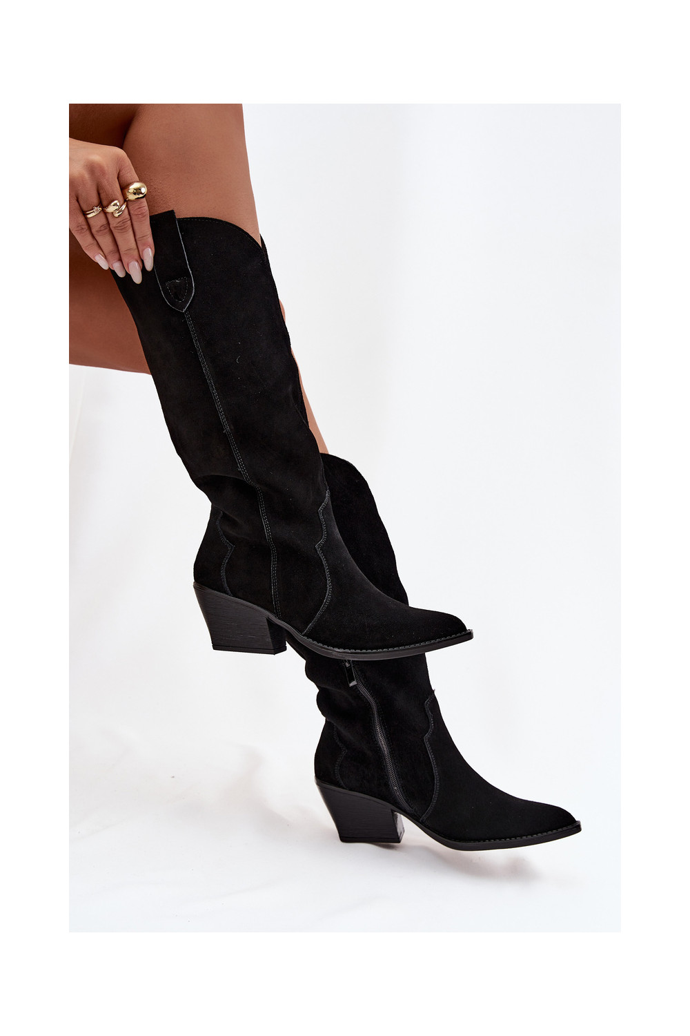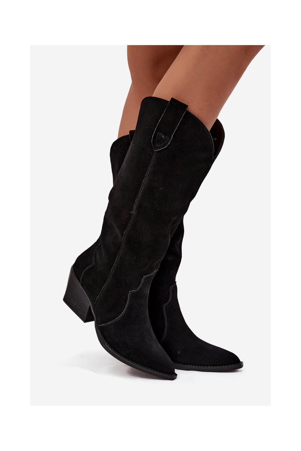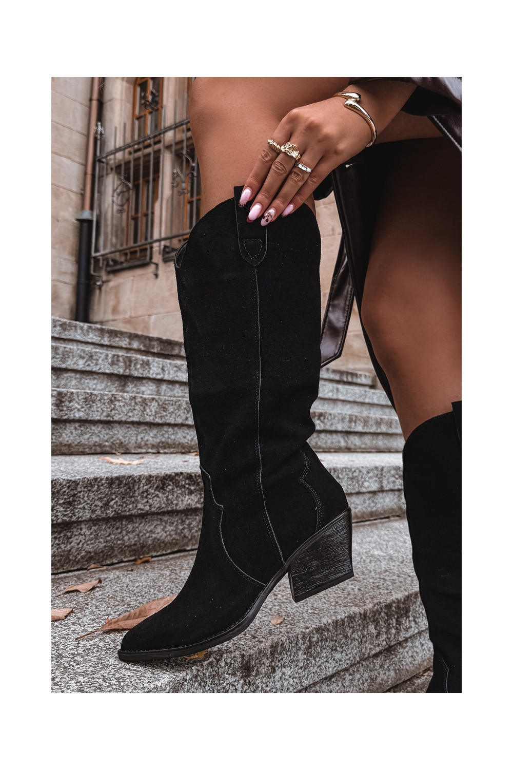 Oda iš zomšos ilgaauliai batai kaubojiško stiliaus Moteriškas pašiltinti juodos spalvos Urselle