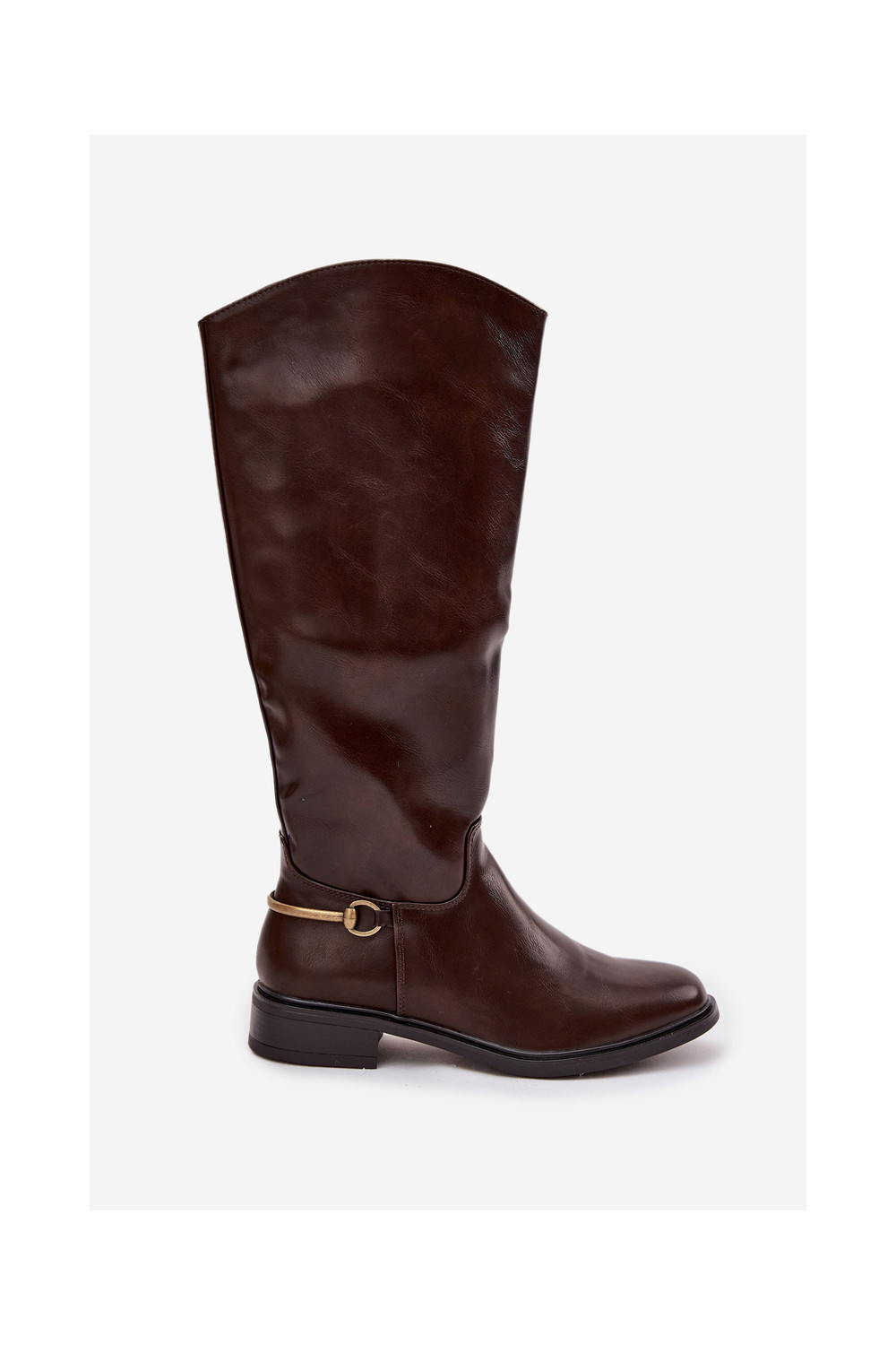 pašiltinti moteriški ilgaauliai batai su plačiais kulniukais Su puošniais Detalem CzekoladoĮe Renaya