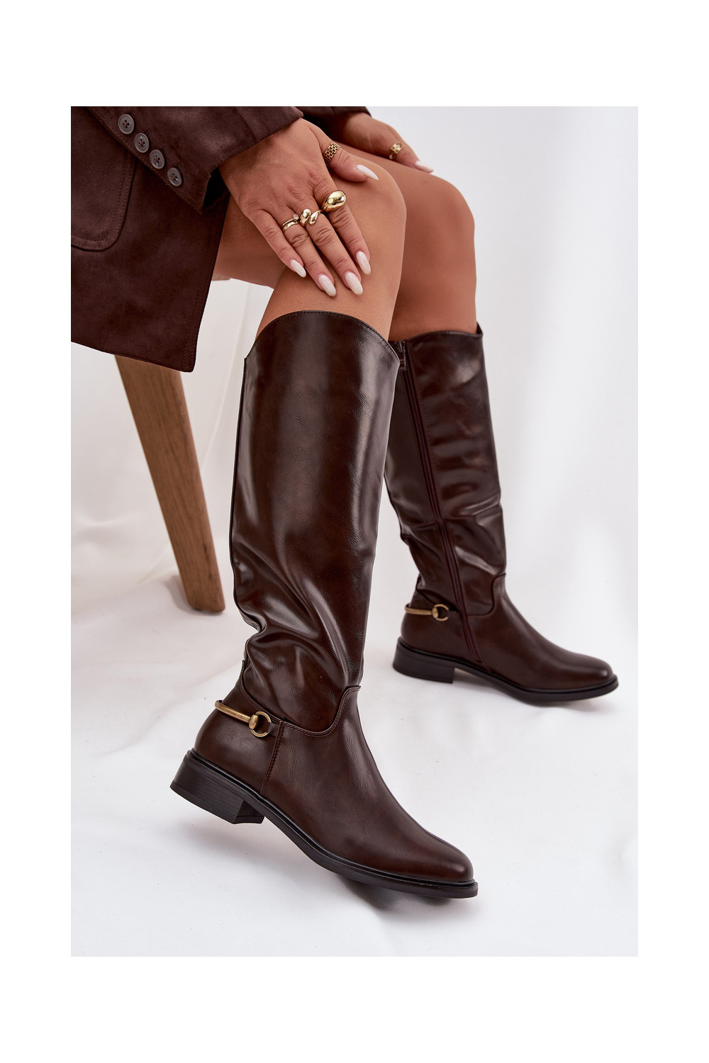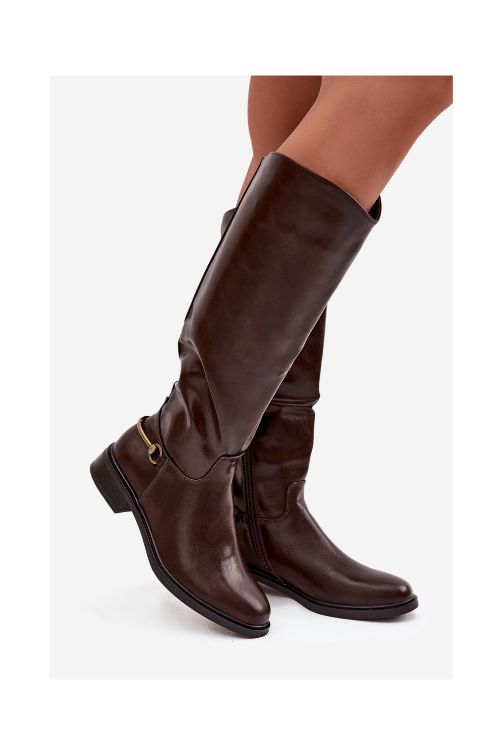 pašiltinti moteriški ilgaauliai batai su plačiais kulniukais Su puošniais Detalem CzekoladoĮe Renaya