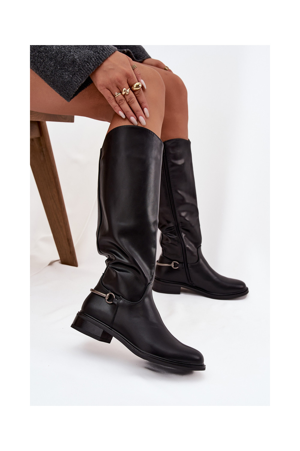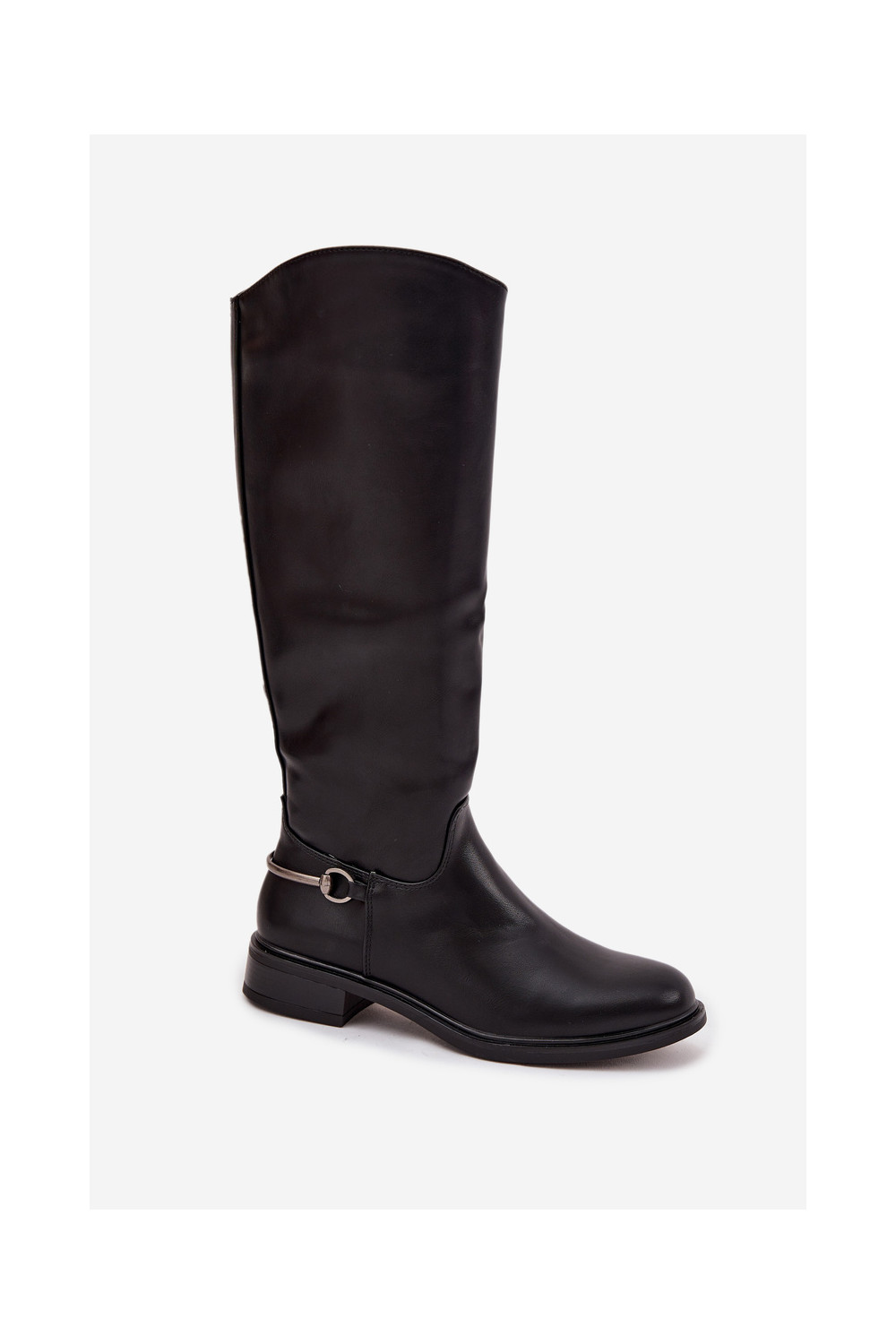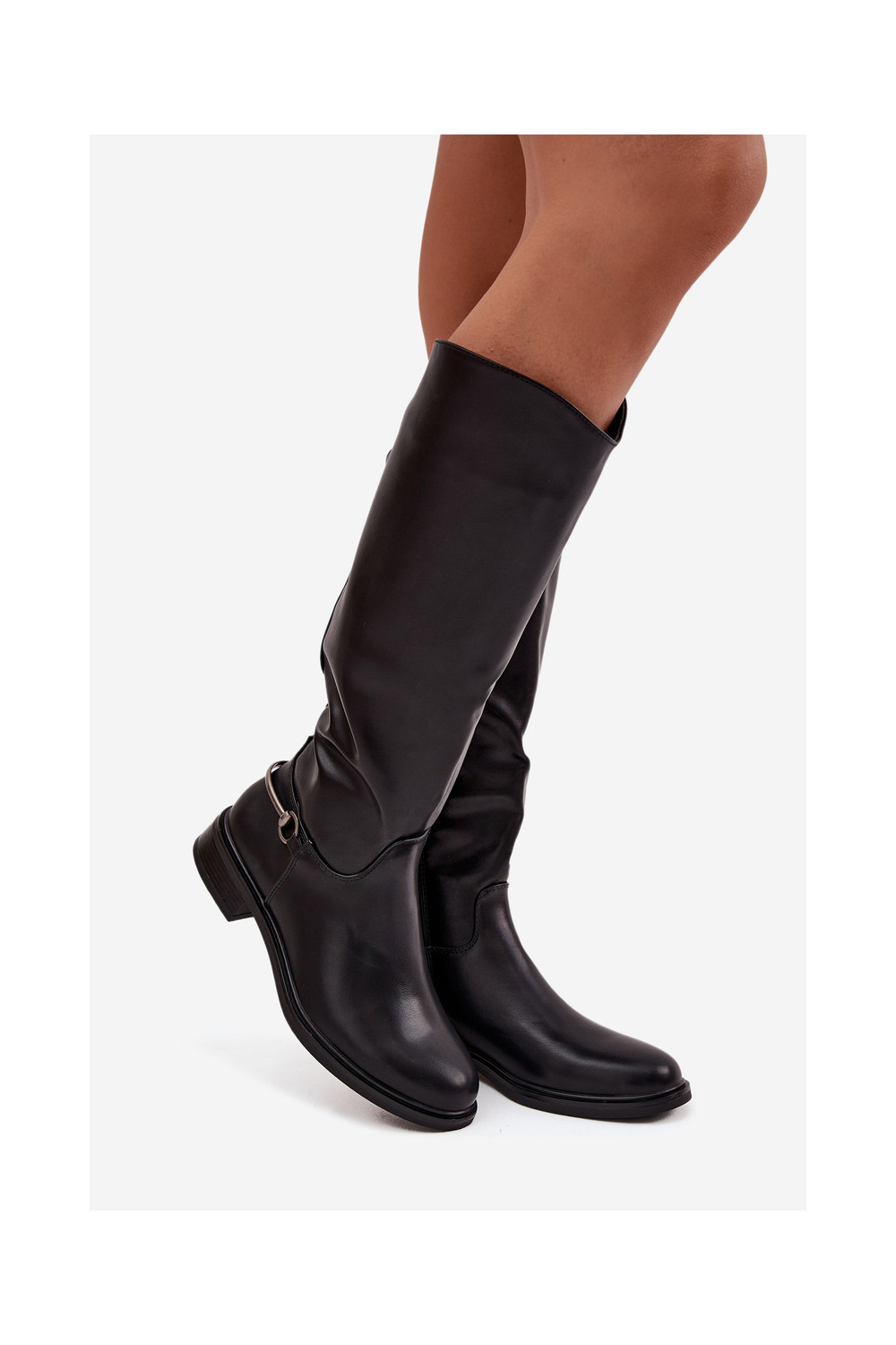 pašiltinti moteriški ilgaauliai batai su plačiais kulniukais Su puošniais Detalem juodos spalvos Renaya