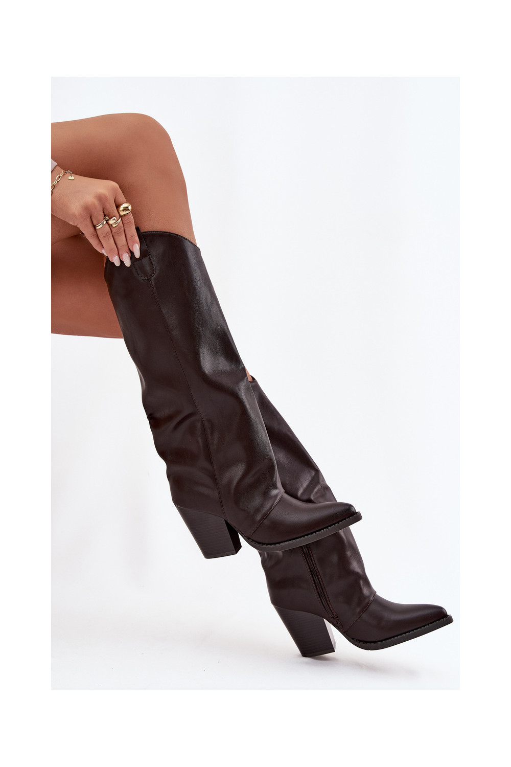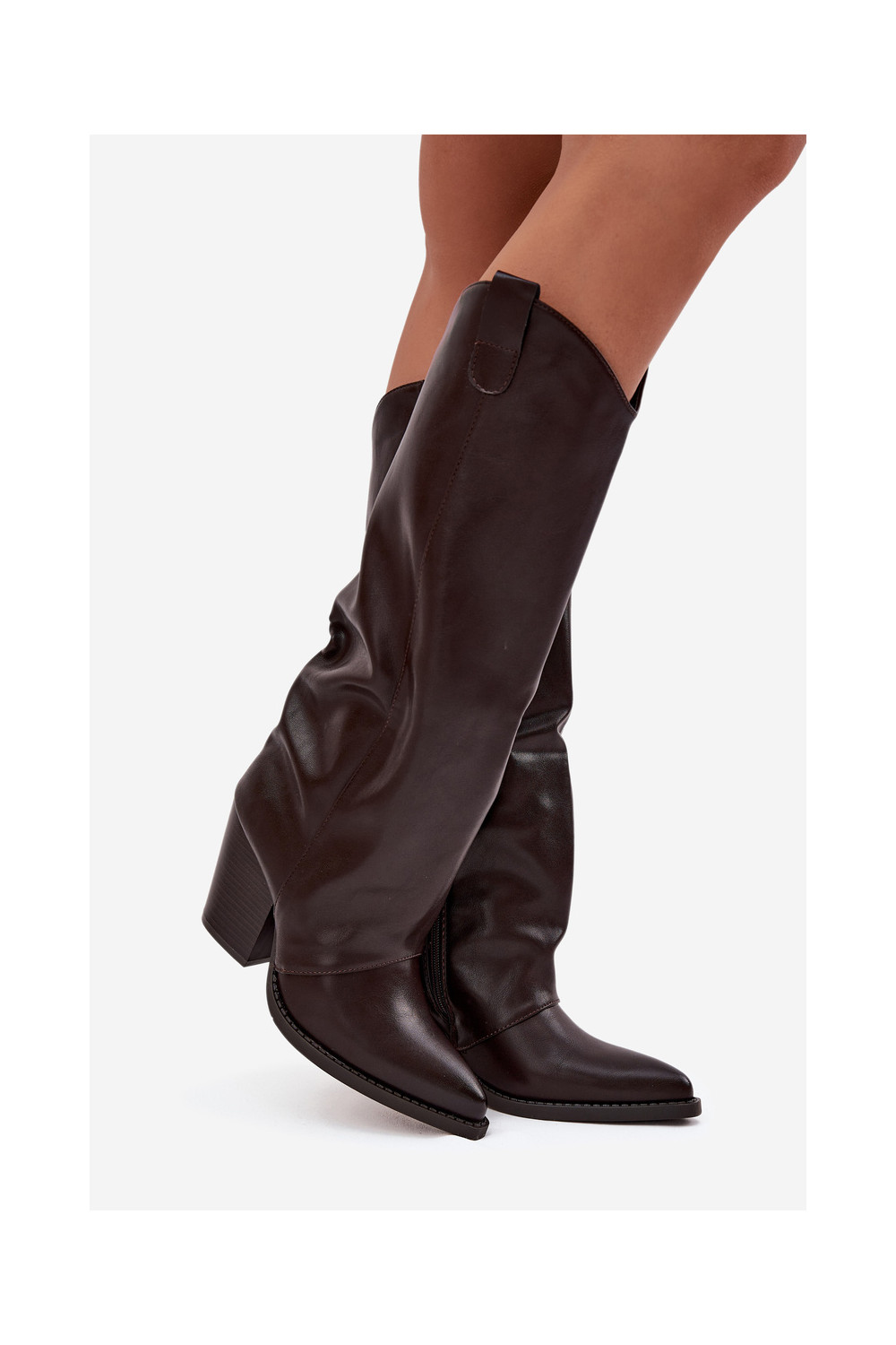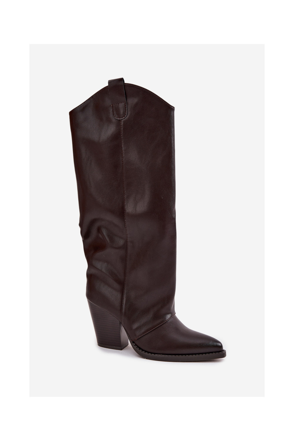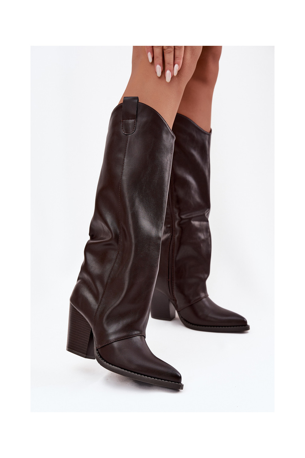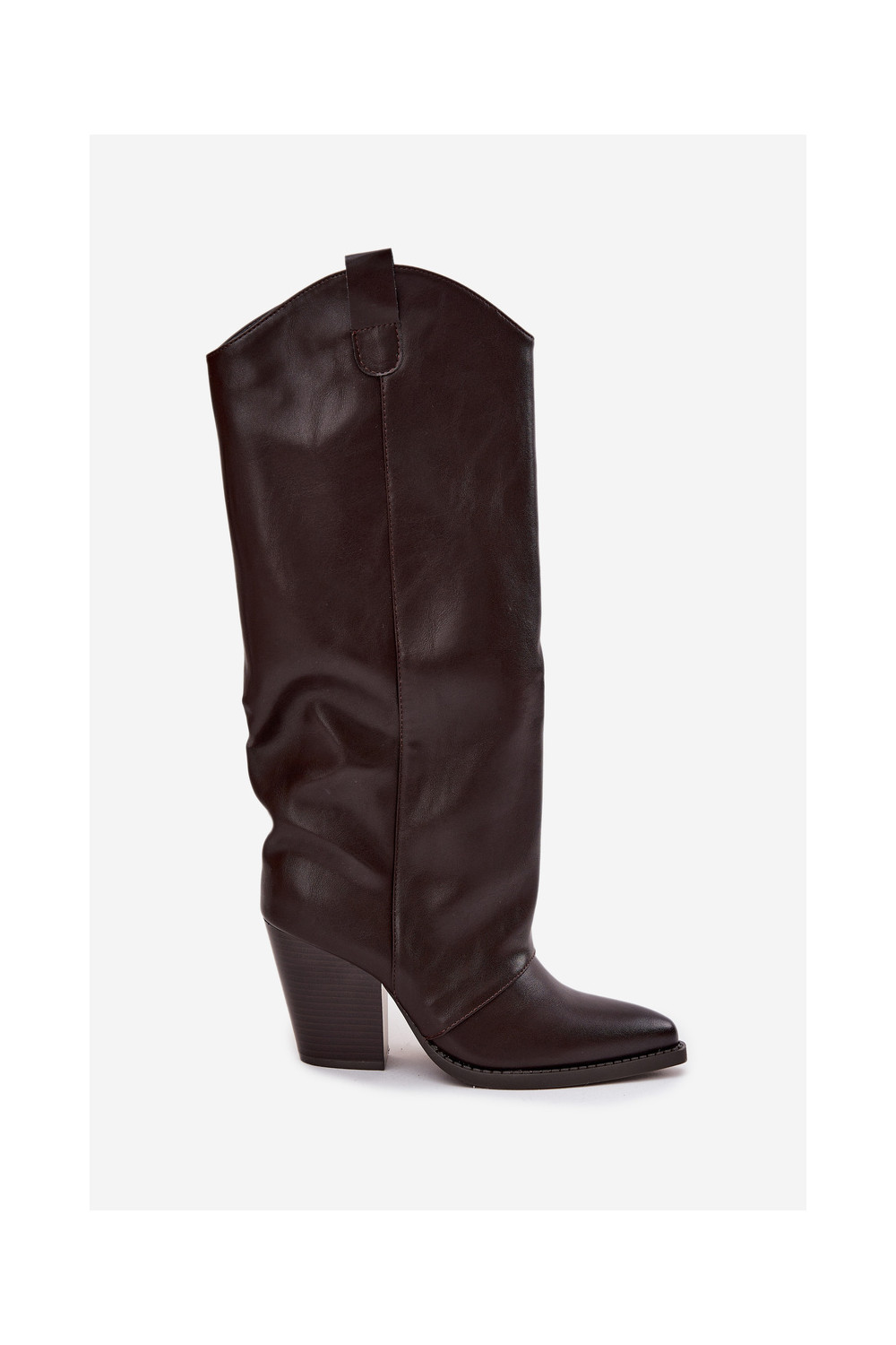 pašiltinti ilgaauliai batai kaubojiško stiliaus su kulniukais iš eko odos CzekoladoĮe Tai turivine