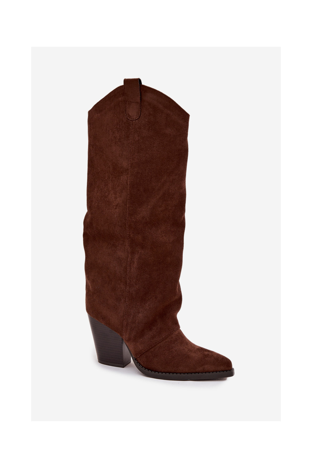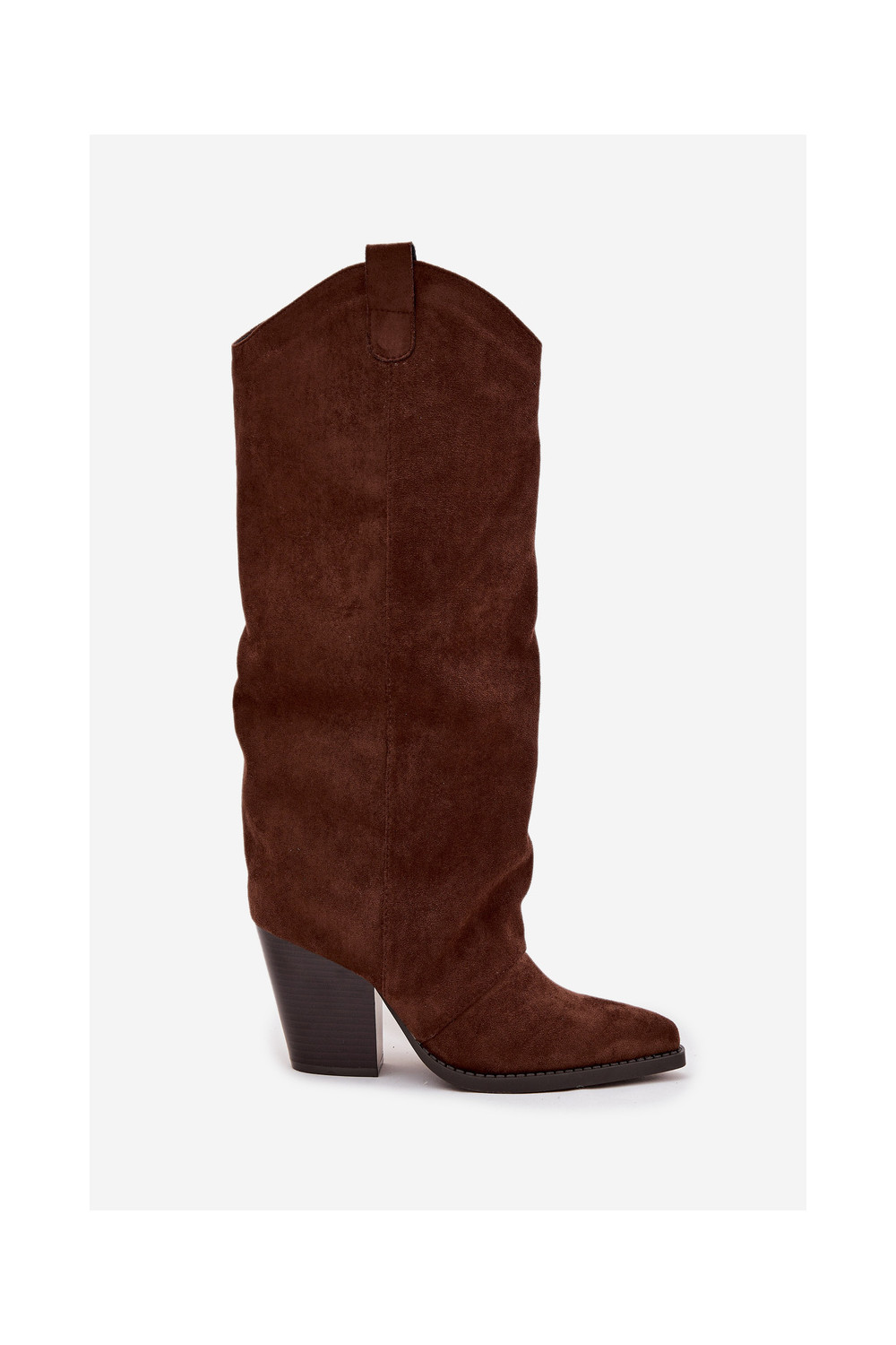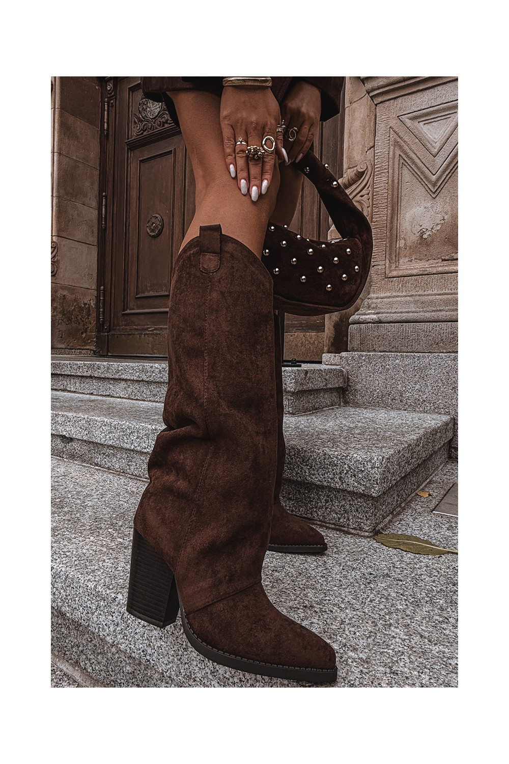 pašiltinti ilgaauliai batai kaubojiško stiliaus su kulniukaissuiš eko zomšosu CzekoladoĮe Tai turivine